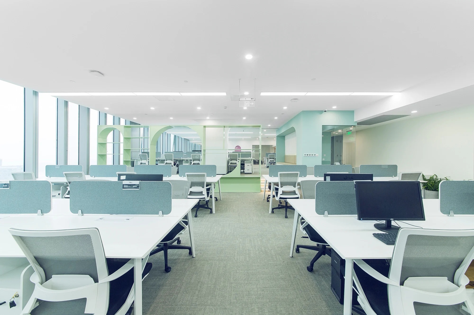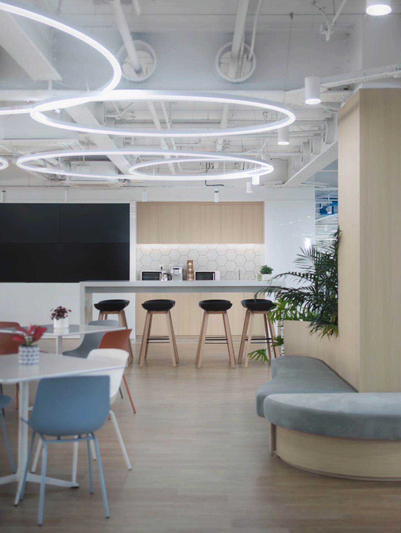 我们充分考虑员工的工作需求和舒适感受,将现代化的科技元素与温馨舒适的环境完美融合。在海天瑞声新办公空间中,蓝色被赋予了特殊的意义和设计灵感,成为了整个空间的主题色。这不仅仅是因为蓝色是海洋的颜色,也代表着沉静、智慧与洞察力。蓝色贯穿着整个办公区域,为员工创造了一个富有创造力和专注力的工作环境。