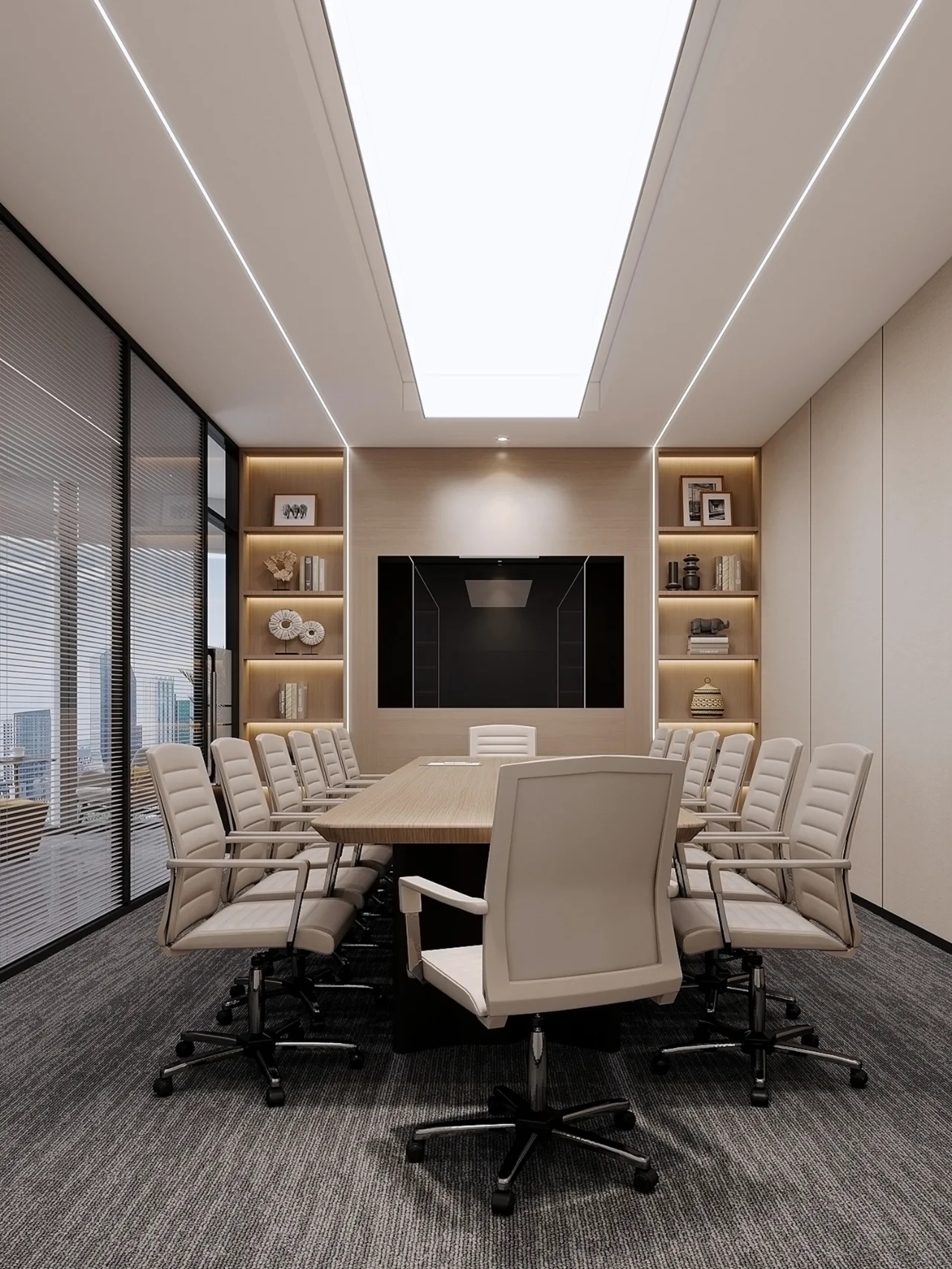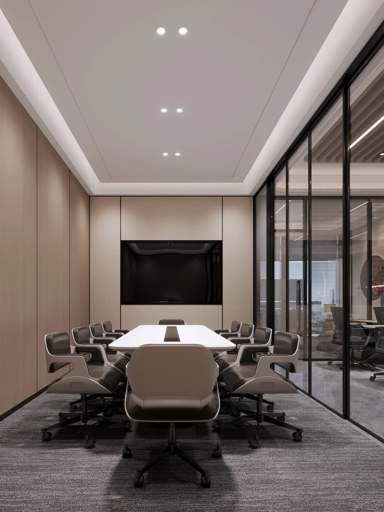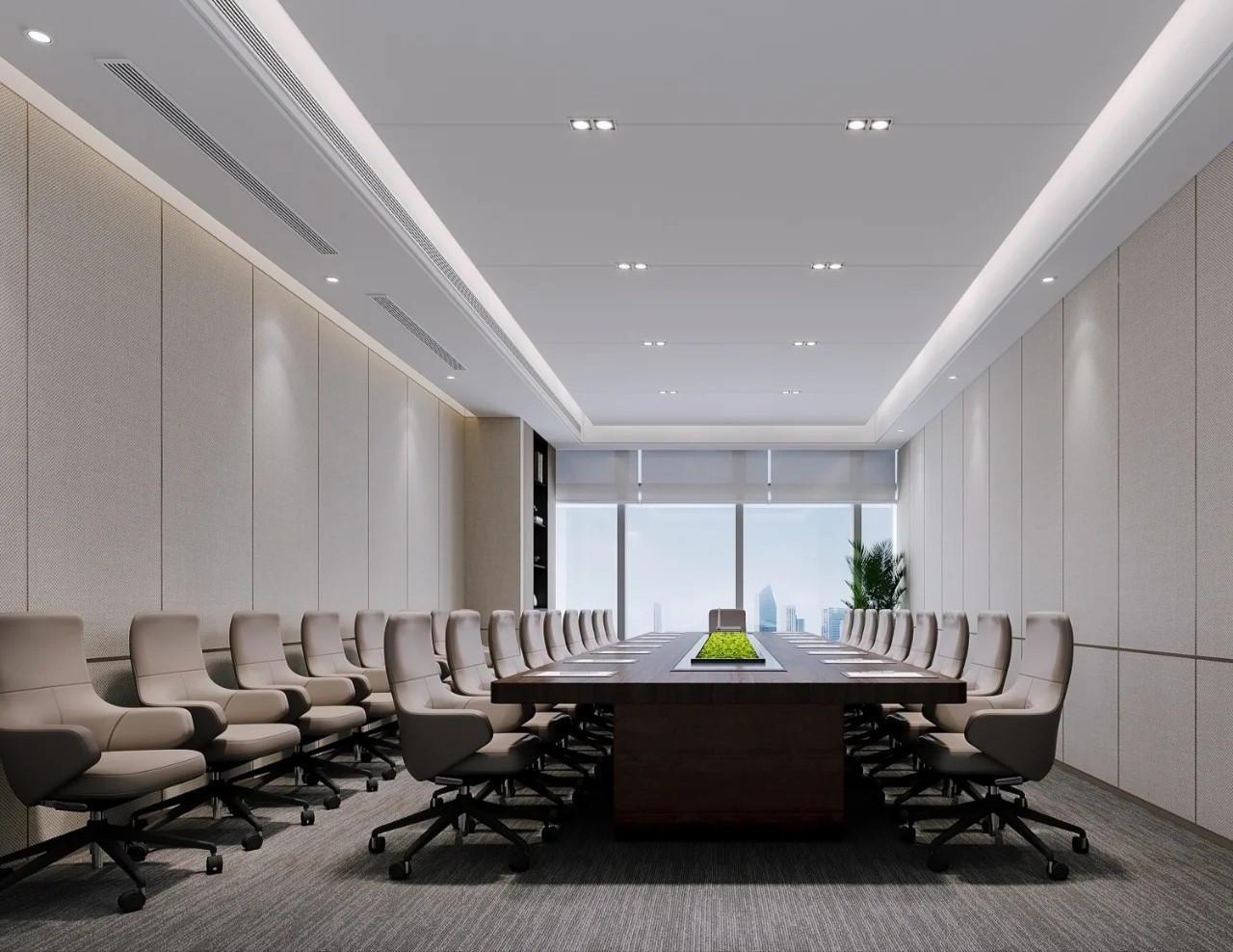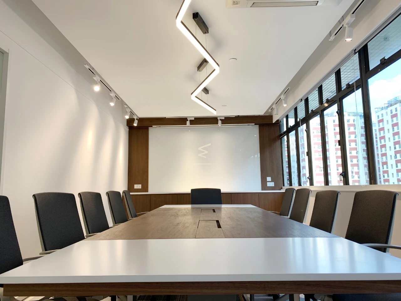 会议桌台面选择了拼色拼接处理,两侧是白色,中间是木纹,充满设计感的造型及结构,为的就是把精益求精的一面呈现给使用者。