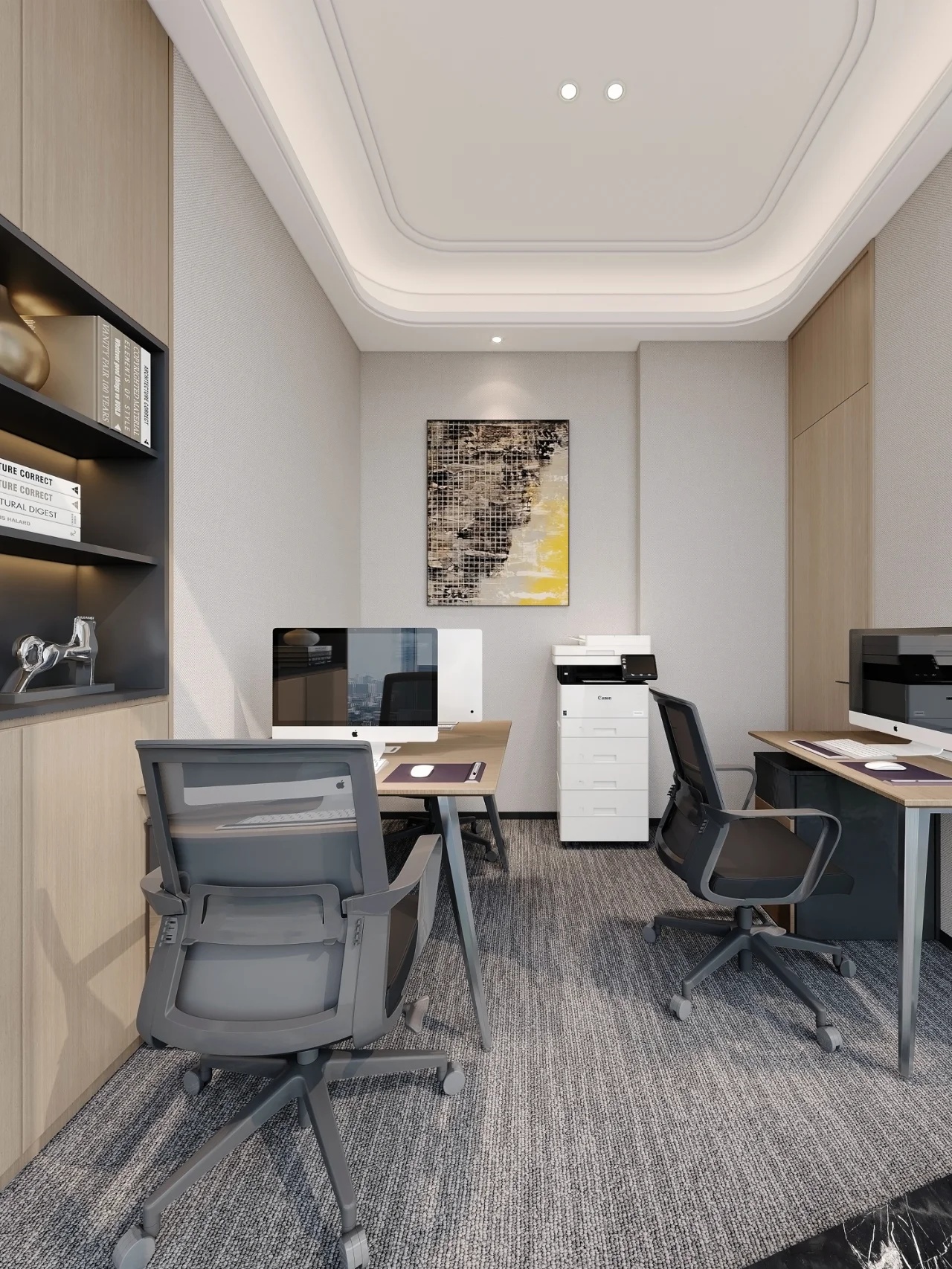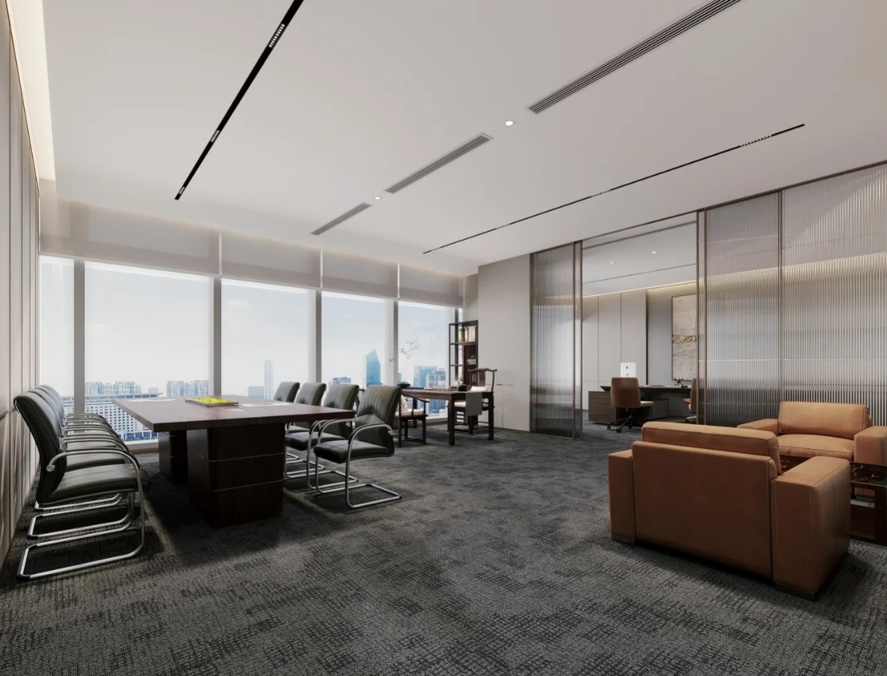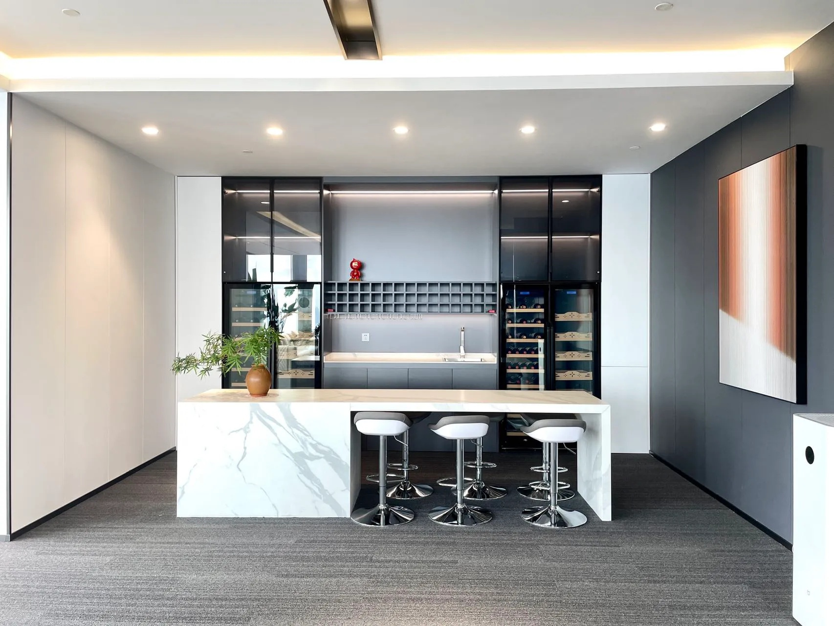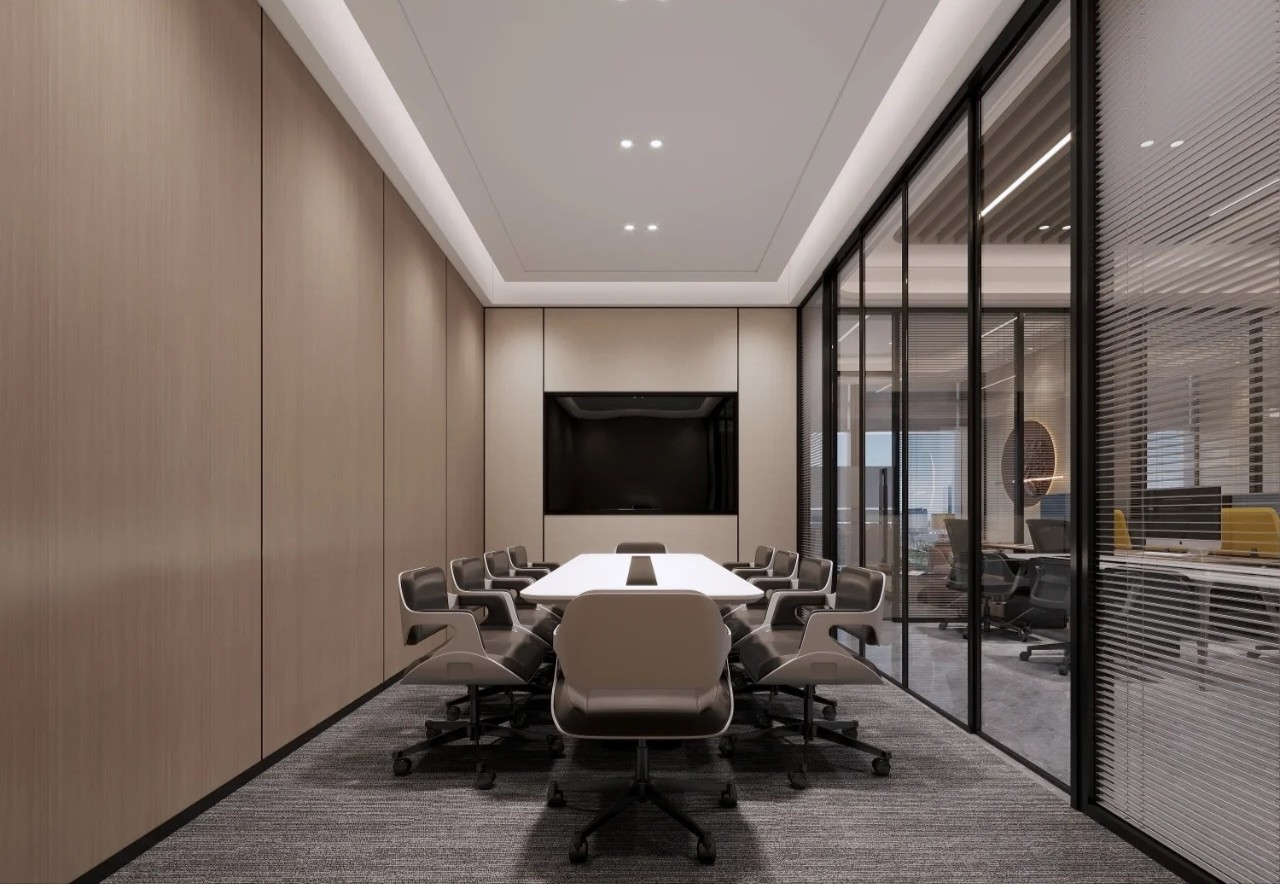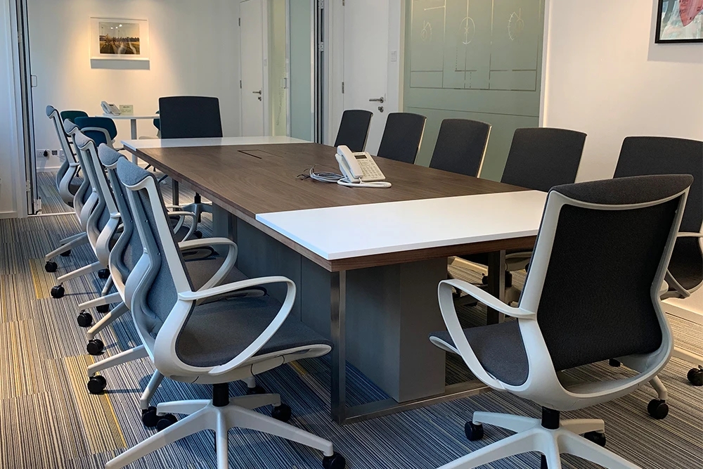 会议桌台面选择了拼色拼接处理,两侧是白色,中间是木纹,充满设计感的造型及结构,为的就是把精益求精的一面呈现给使用者。