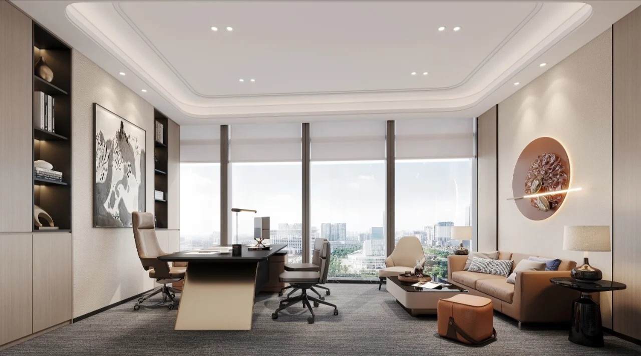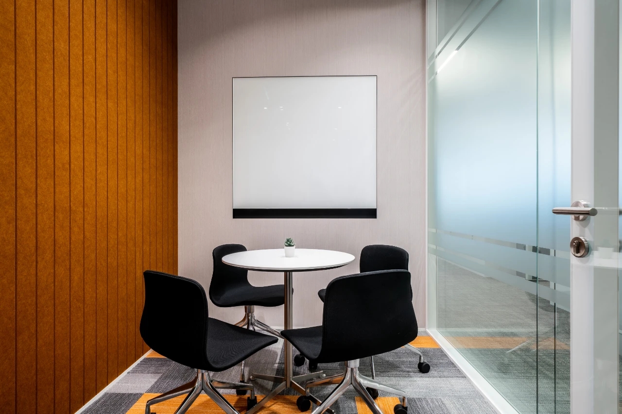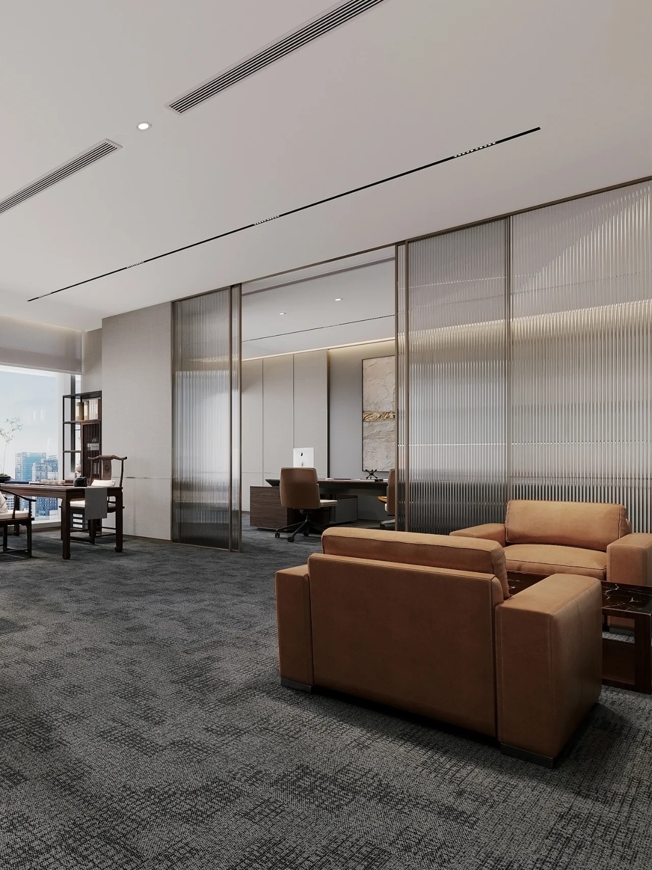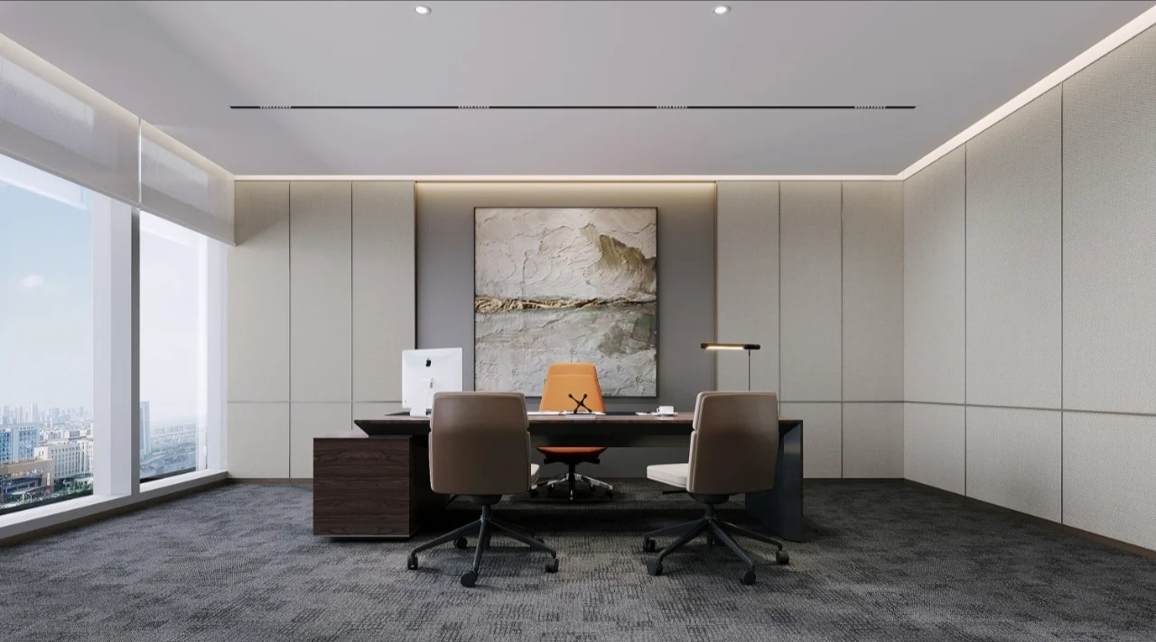 会议桌台面选择了拼色拼接处理,两侧是白色,中间是木纹,充满设计感的造型及结构,为的就是把精益求精的一面呈现给使用者。