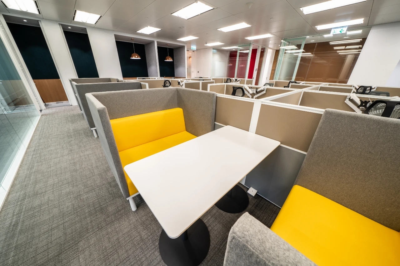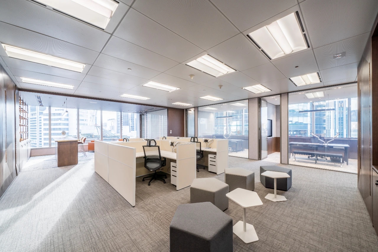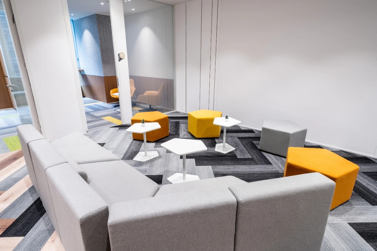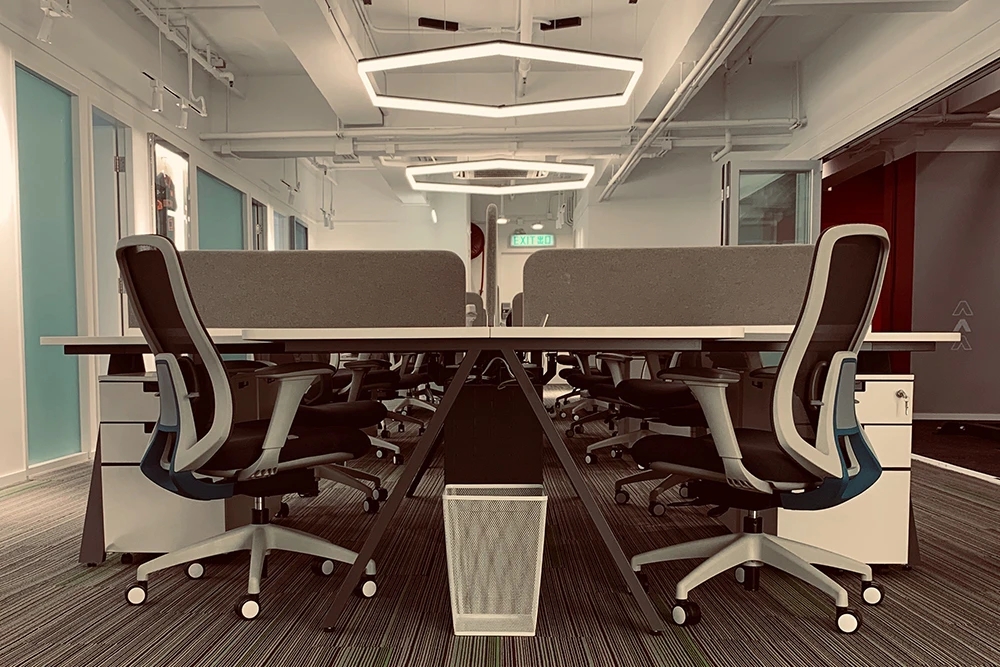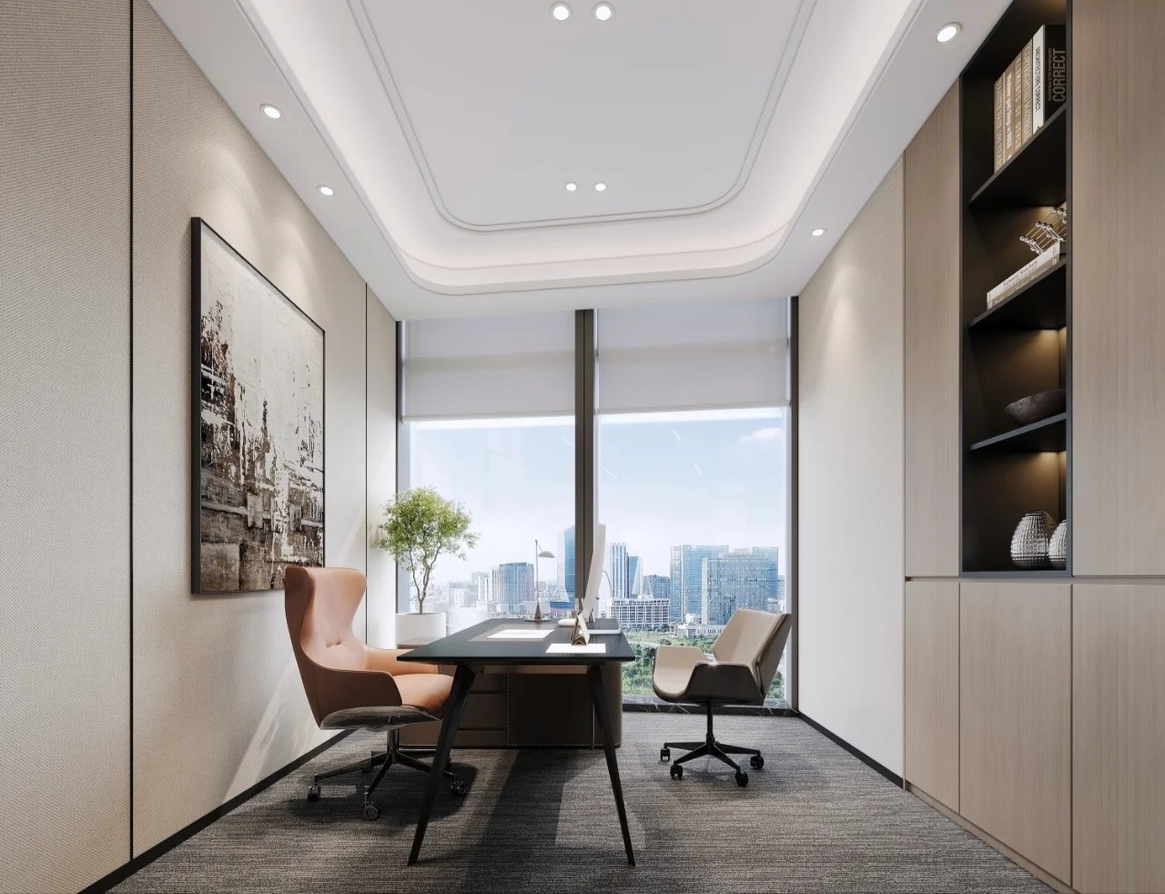 会议桌台面选择了拼色拼接处理,两侧是白色,中间是木纹,充满设计感的造型及结构,为的就是把精益求精的一面呈现给使用者。
