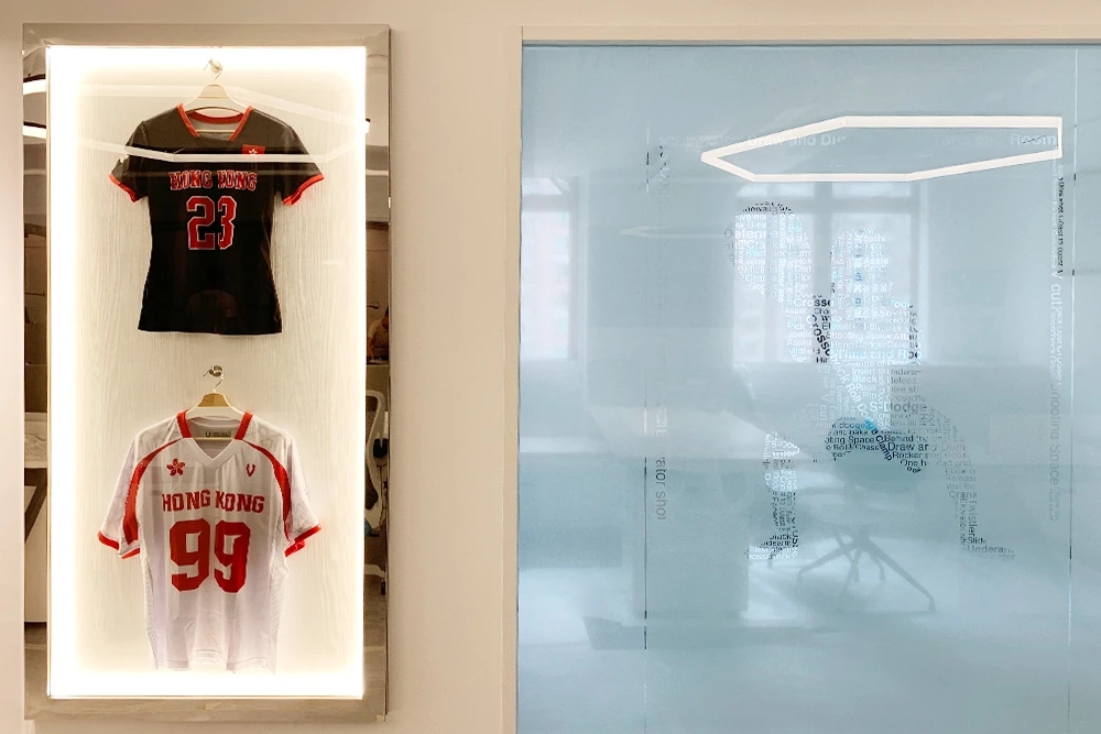 橱窗设计,把队服展示橱窗里,既代表了团队精神,又使墙面增加了设计感。