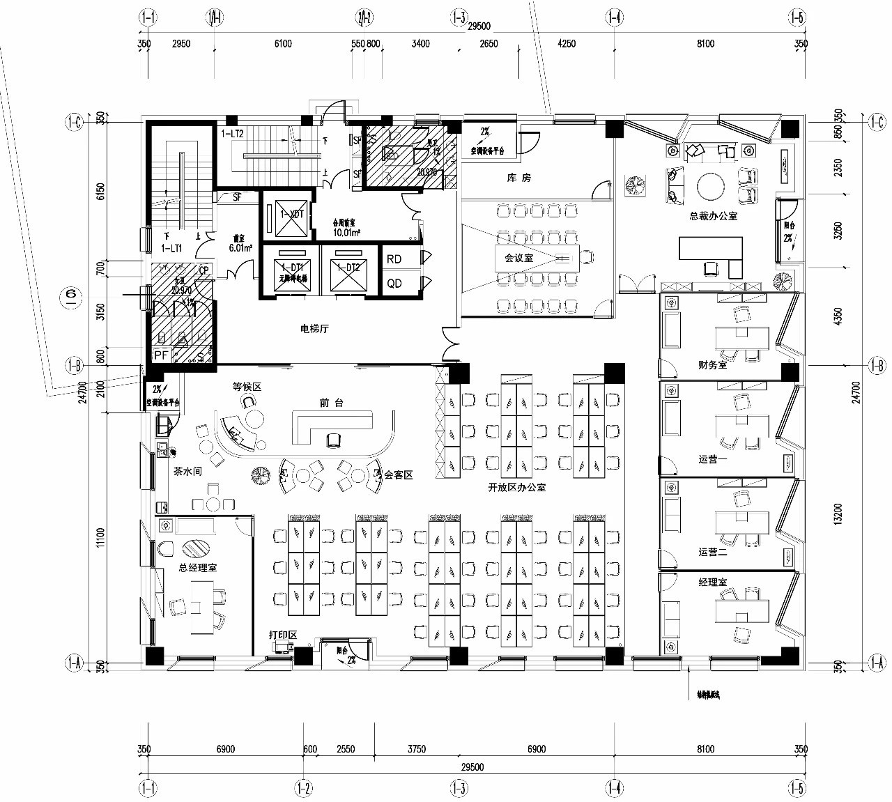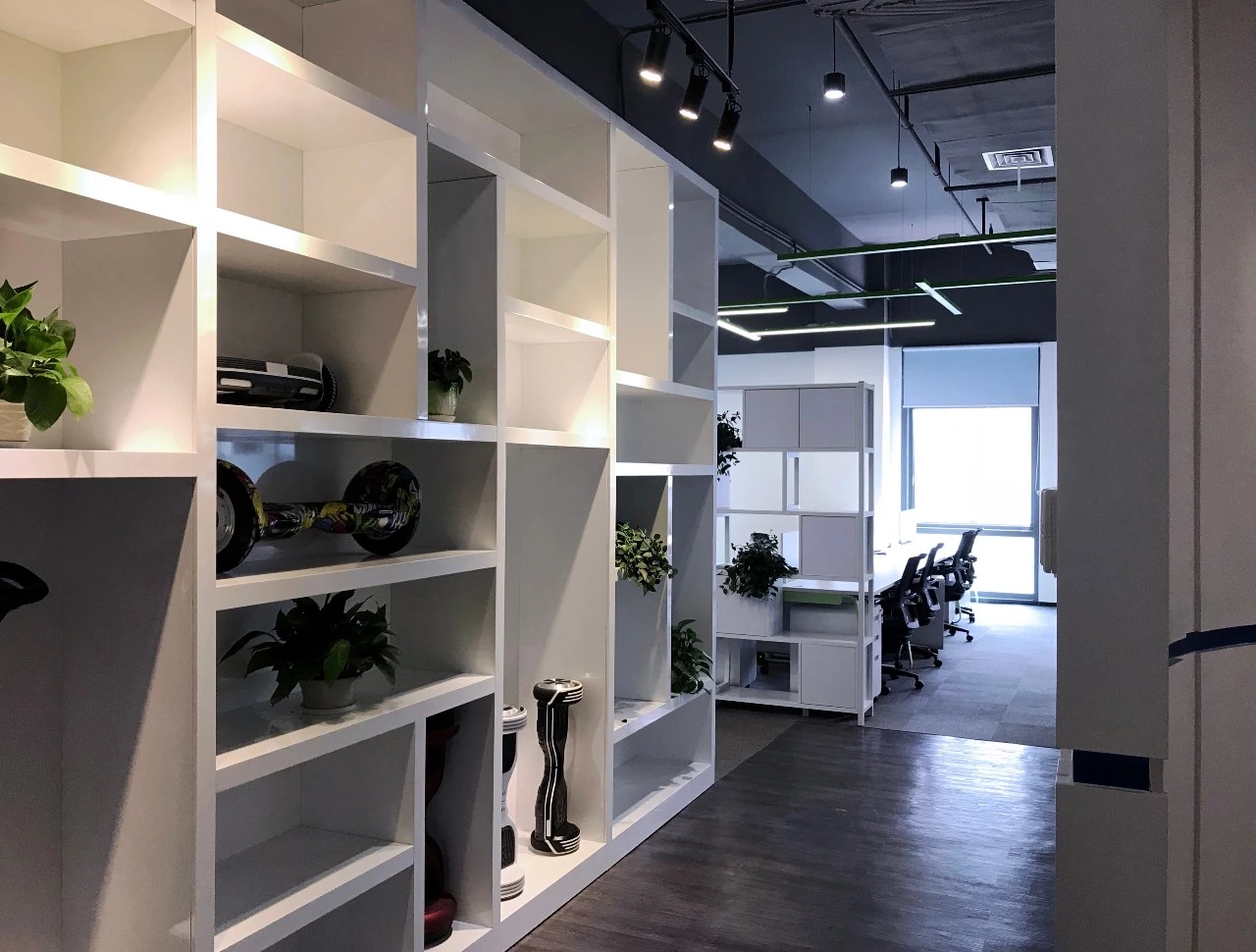 办公区打破封闭,运用开放性办公格局,开启高效与人性化办公新模式,提高办公效率。这个空间中没有太多杂乱的装饰,开阔的视野给人一种舒畅的感觉,给交流也提供了很大的便利。