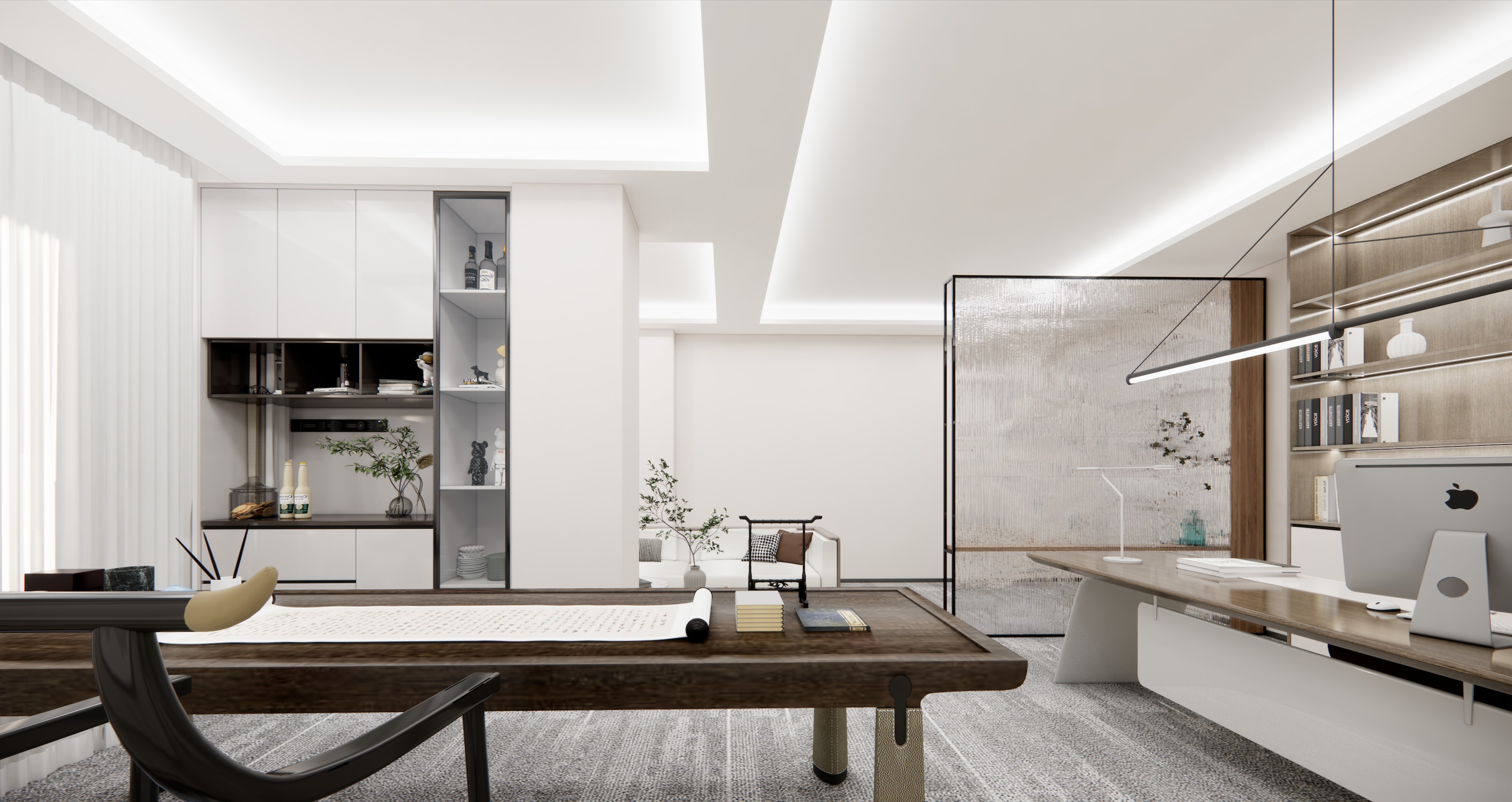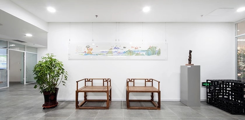 品牌元素的引入从接待区直观的表达开始,以简练精致的设计,传递出客户专业的商务气质、但又饱含底蕴的经典形象,形成企业文化、功能需求、视觉审美的有机统一。