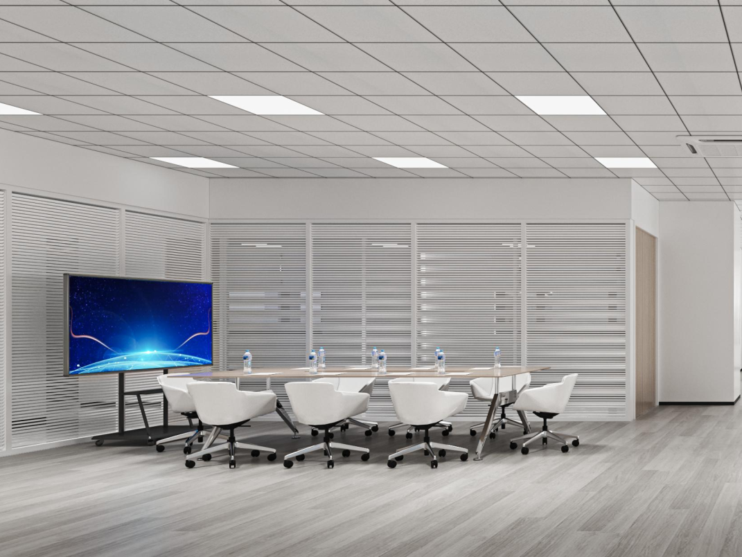 洽谈室色彩上采用灰白相融的搭配,简约又不失格调,整个空间内也运用了许多自然元素,把生态与空间完美融合在一起。