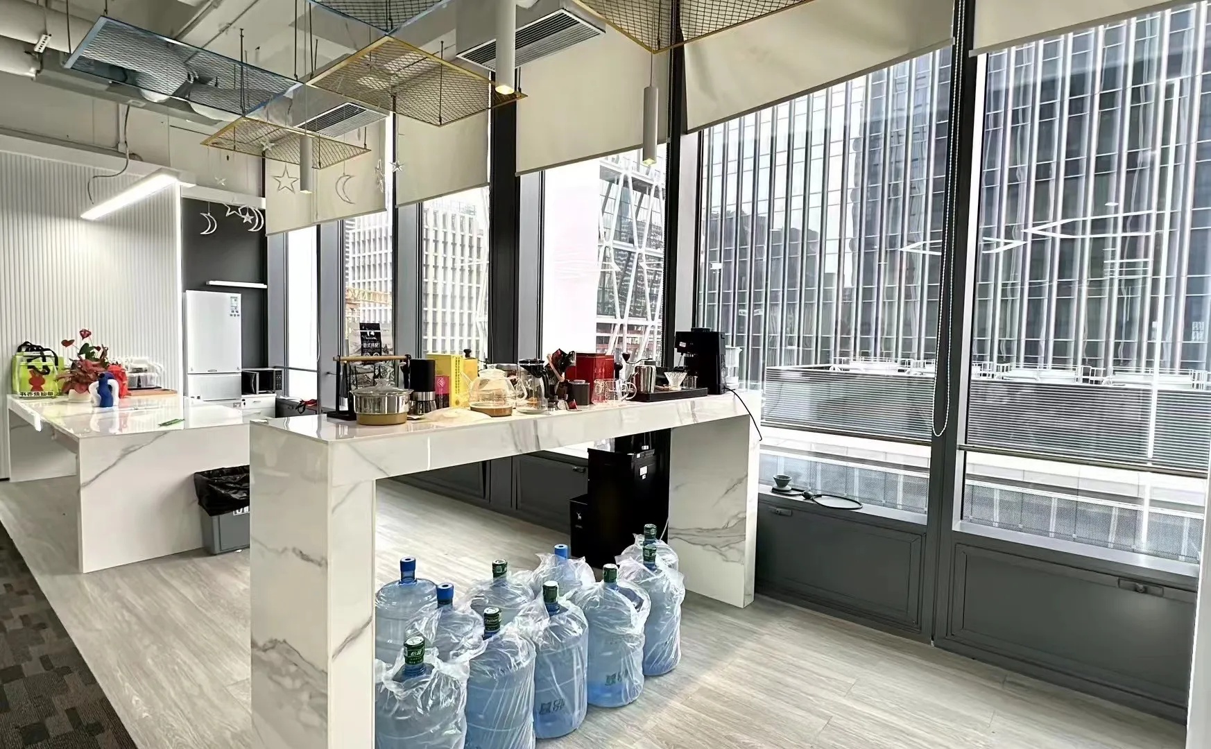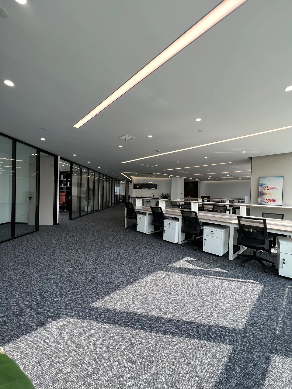 开放的办公区域,采用异形的多组合办公桌,打破传统意义上的封闭式秩序感,创建出更加自由的办公环境,这种灵活且完整的模式增加了工作的互动性,让人的精神放松,思维更加不受限。