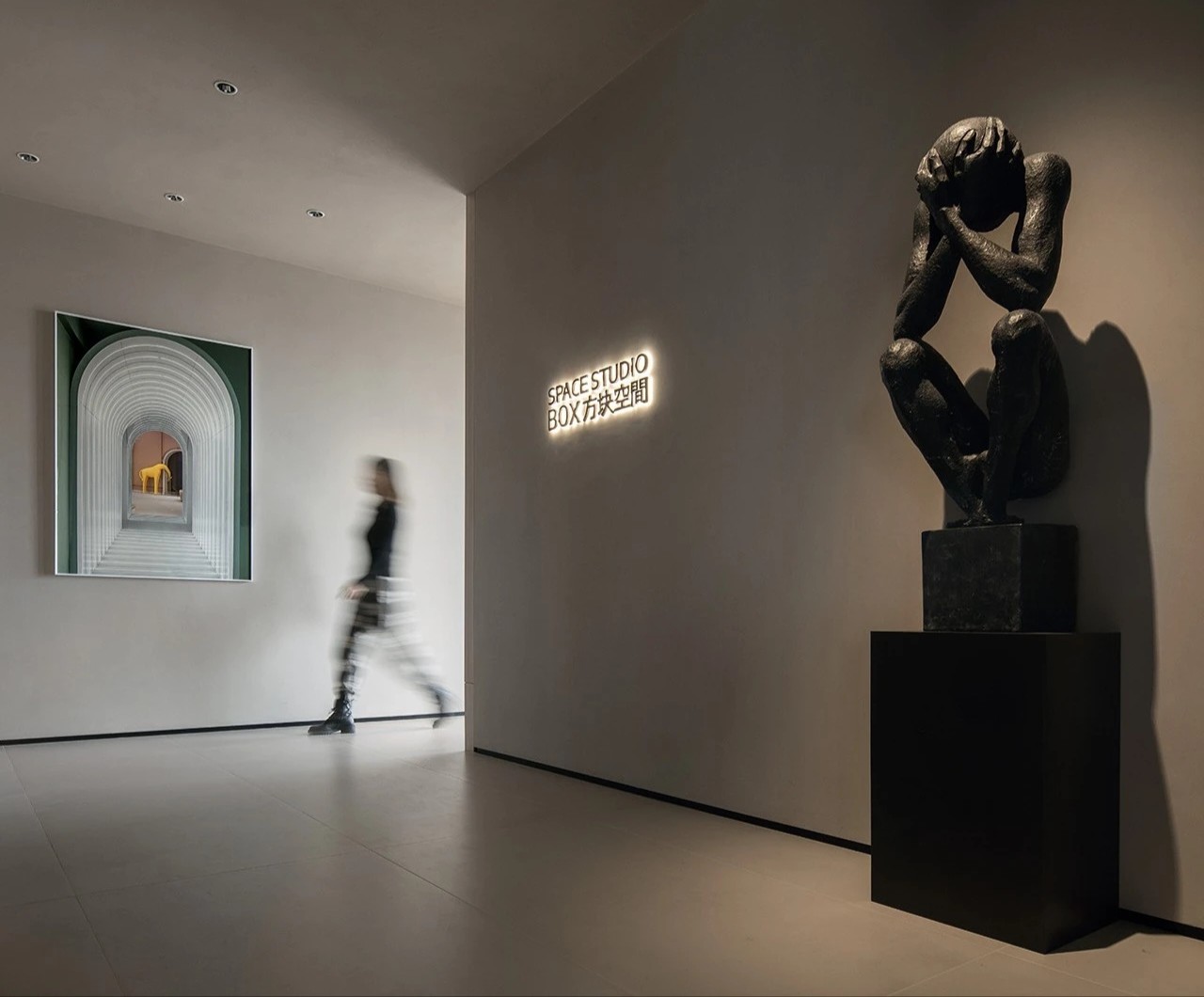 把空间划分成三个场域:社交区域、工作区域及私密区域,平衡了办公与展示的功能,完美融合办公展示中心的多种需求。