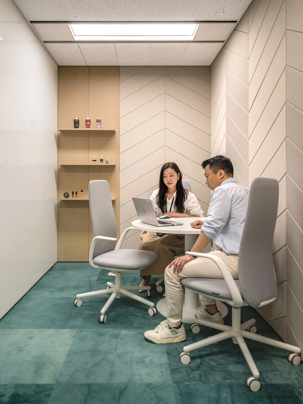 设计了动态而开放的空间,让人们可以选择自己最喜欢的地方办公。各种专注办公区域与协作区域,激发员工大开脑洞,创意不断。每层楼入口处宽敞的办公咖啡厅是一个多功能枢纽,既能办公,也可以支持团队脑暴,当然也可以闲暇时与同事聊会天。这种设置可以灵活应对混合办公模式下的人员出勤波动性与不确定性
