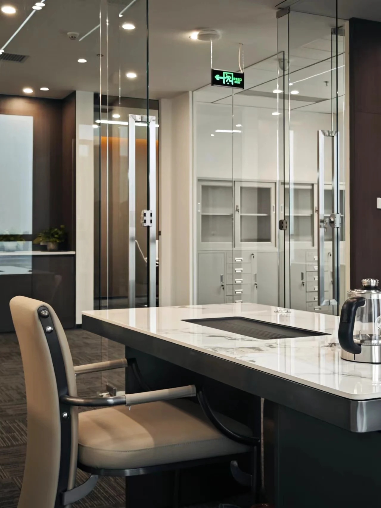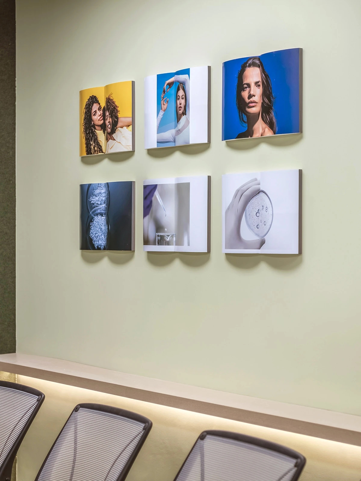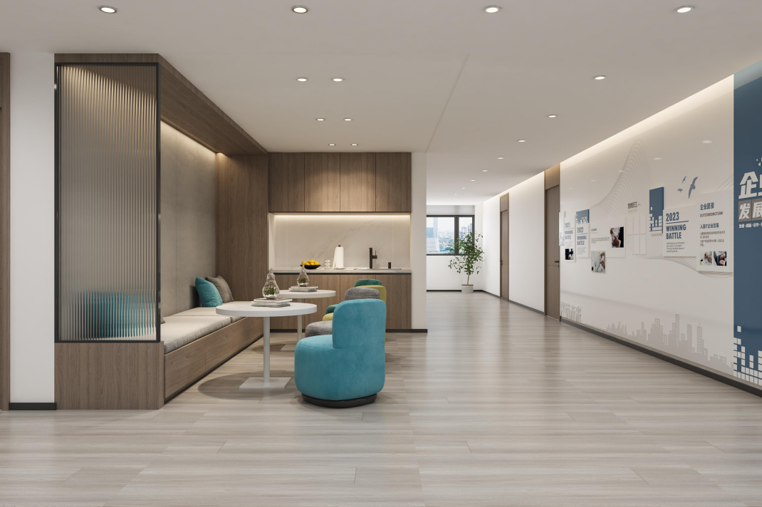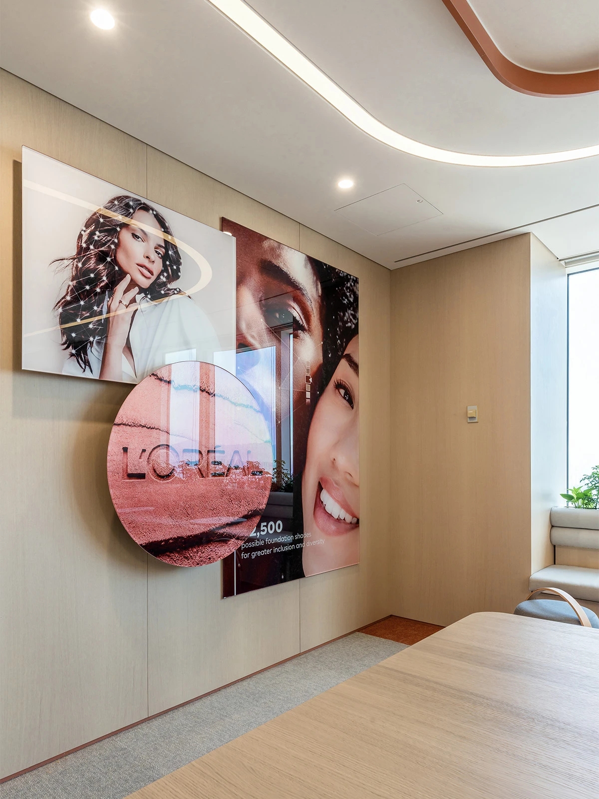 每层楼的主题色灵感源自于欧莱雅集团不同部门的品牌色调。美妆部门使用了赤陶色,香水部门采用米色与金色,而护肤部门则选用了淡蓝色。这种方法既明确区分了区域,亦在一个连贯且融合的环境中彰显了欧莱雅的多元文化。