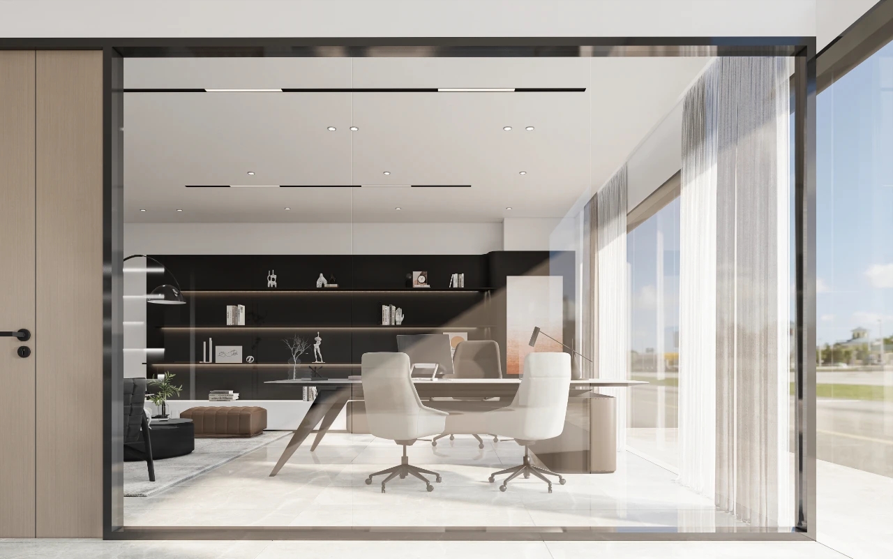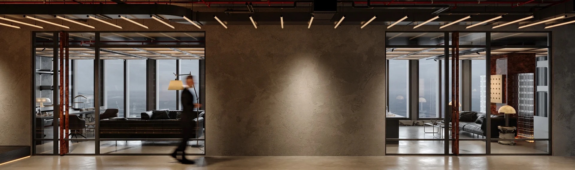接待柜台后面的区域排列着控制器上的符号,主墙上散布着Roku的标志。在开放办公区的讨论区,我们简化了造型,重新设计了墙上台湾铁窗花的图案。紫色的背景让空间更加活泼,平衡了窗花的复古感。