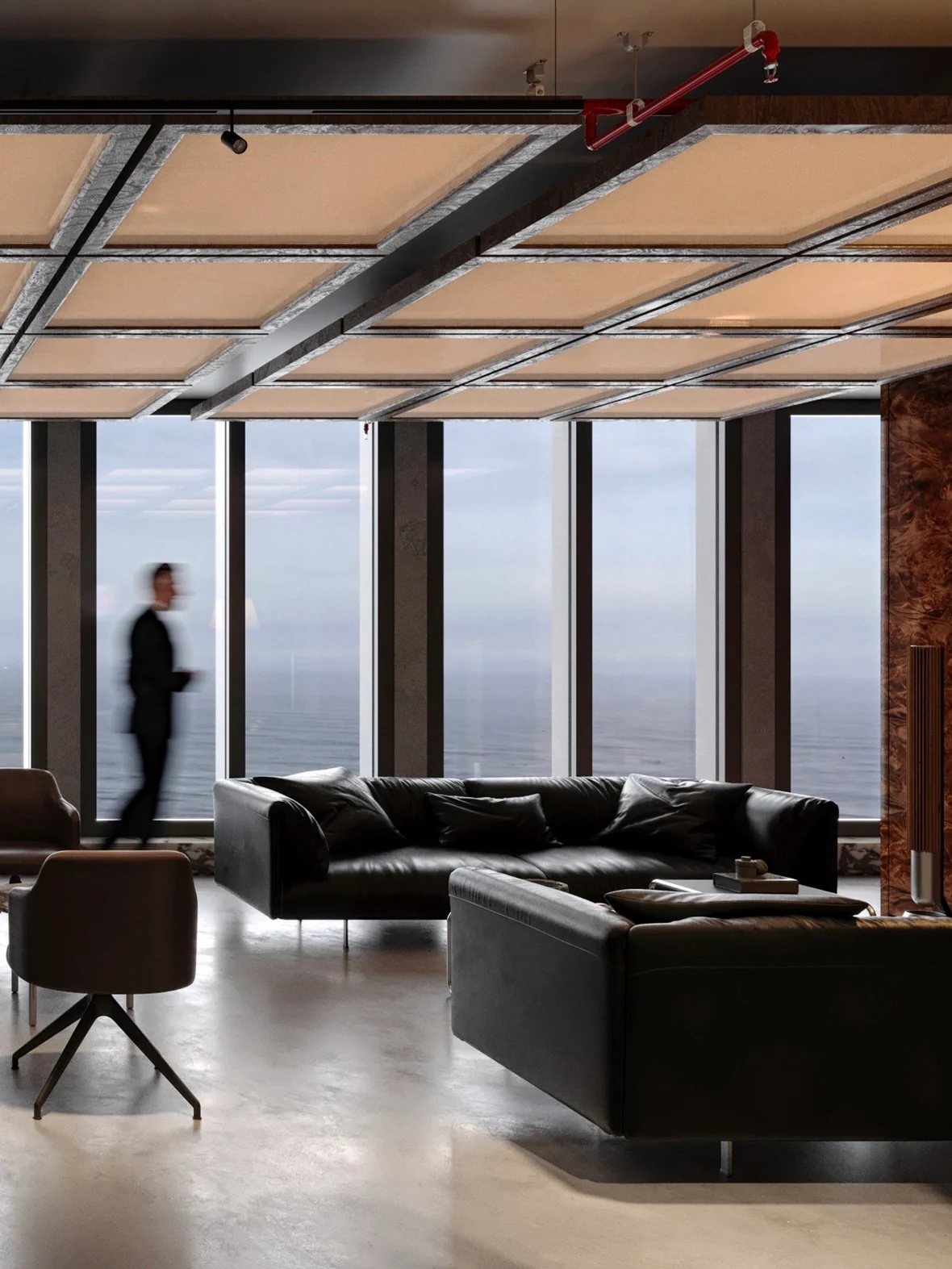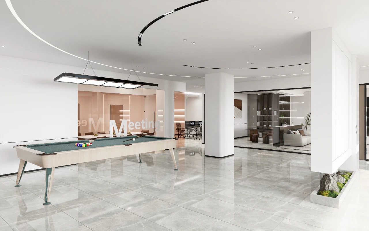 iDA Workplace 为 Roku 台北办公室设计了流媒体控制器符号、大胆的紫色元素、当地特色以及温暖、富有创意的沟通空间,以增强协作和效率。11楼大厅的迎宾形象取自新竹著名的百岳山,是西万尼亚山的等高线地形图。顶部和底部的曲线交错,层层毛毡和间接灯带营造出山云顶部的渐变效果。