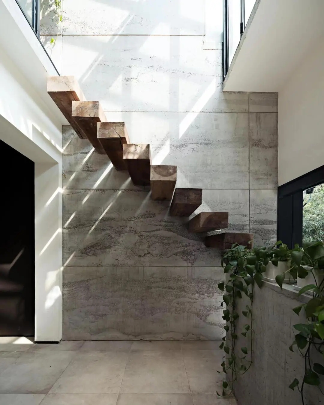 原建筑空间在前户主的装修使用过程中,产生了一系列错位的高差,不利于现在的功能使用,因此我们将有高差的楼板找平,并重新浇筑了建筑的三层楼板,让每层的使用效率达到最大。三层空间有收有放,又相互连通成一个整体,一二层之间由楼梯处的通高采光井相连,二三层之间又以窗前的通高空间相连,整体虽然看似随性,却是有意为之。
