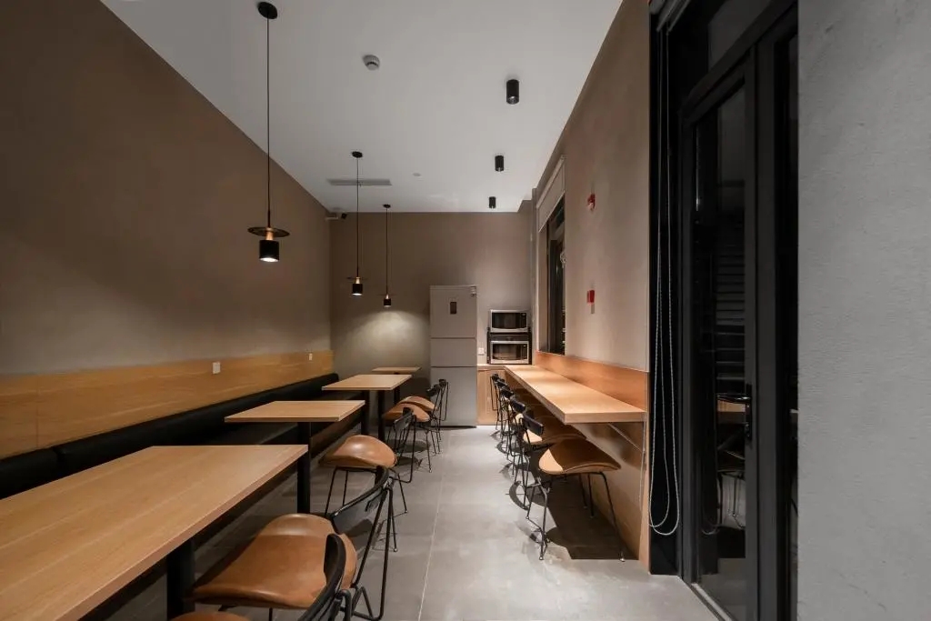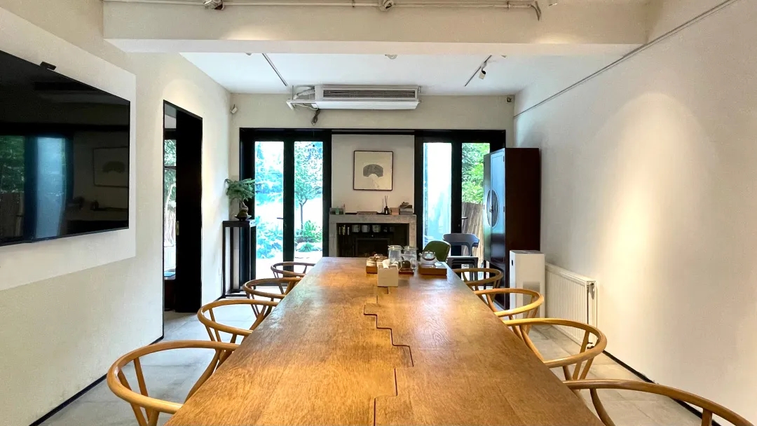 在空间上,我们从自身的使用需求出发,让每一个空间里的建筑元素尽量精简,但功能尽量复合。一层是多功能会议室(餐厅),厨房,卫生间(储藏室,淋浴间)和会客室,二层是开放式办公空间(图书室,睡吧,打印,模型室等),三层是禅室(兼顾午休与喝茶)。一层室外整理出了一个院子,天气好的时候可以在院子里吃饭聊天。