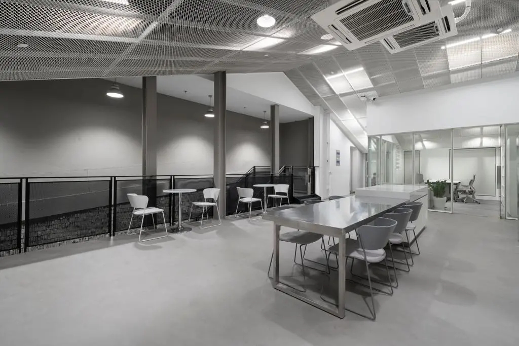 清空了室内隔断,只保留原有结构梁柱,并对原有梁柱重新包了一层钢筋混凝土,做了结构加固处理。