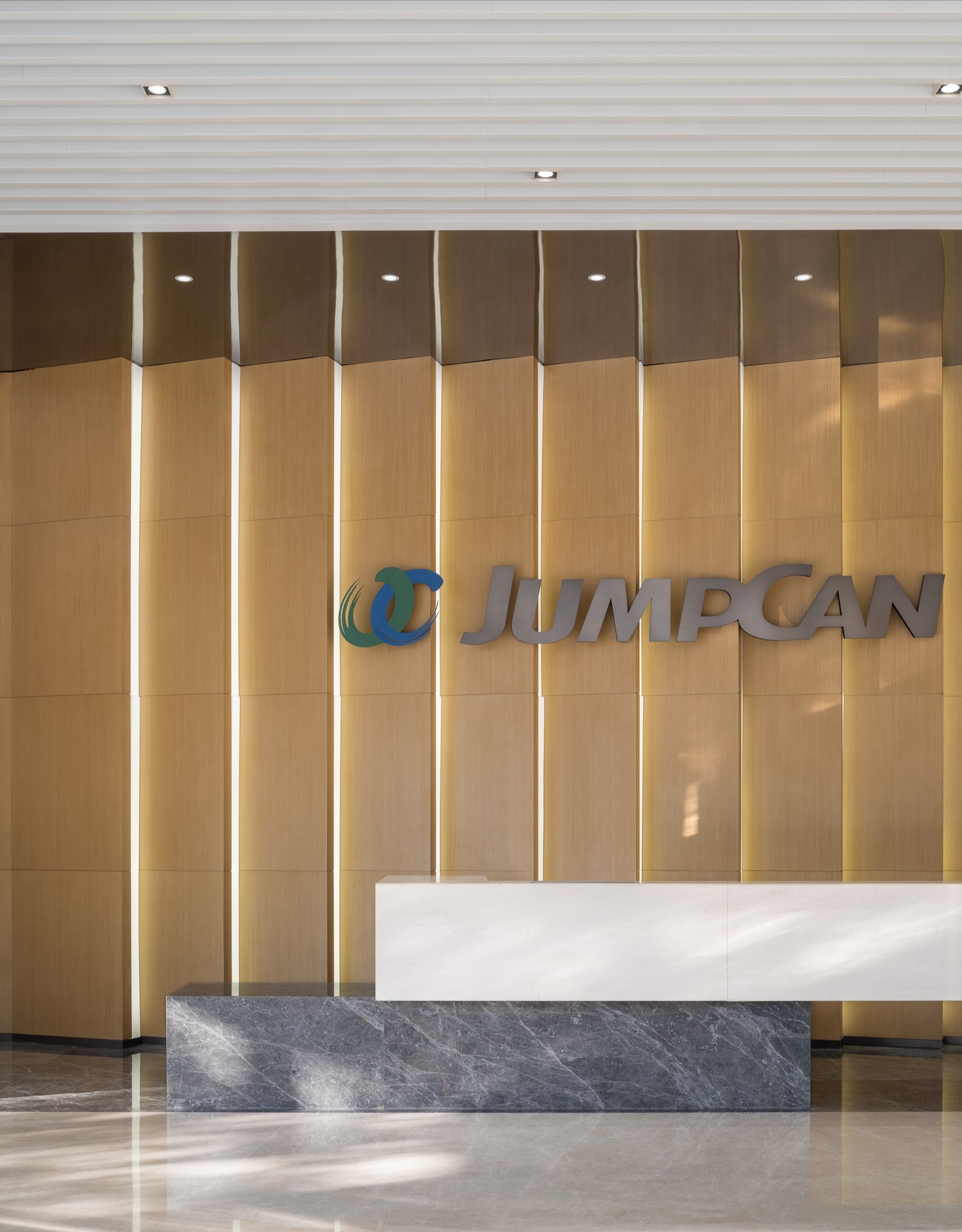 「从平面规划、材质选取、到视觉落点,细致思考每一处的使用体验和视觉感官。设计师将现代格调、人文风貌与品牌格调、企业文化相融合,形成一个功能完善且富有层次感的办公空间,展现出独特韵律与风格。」