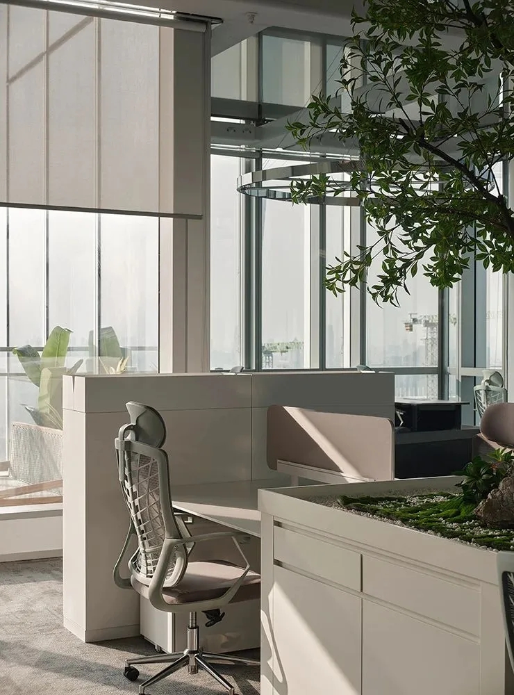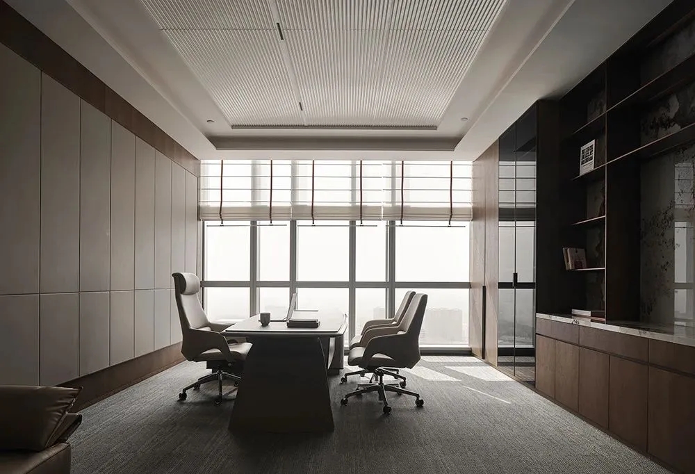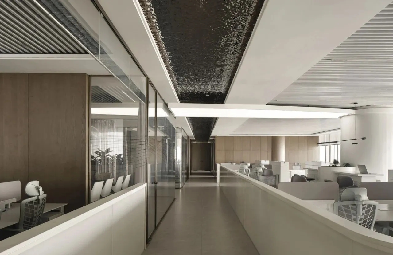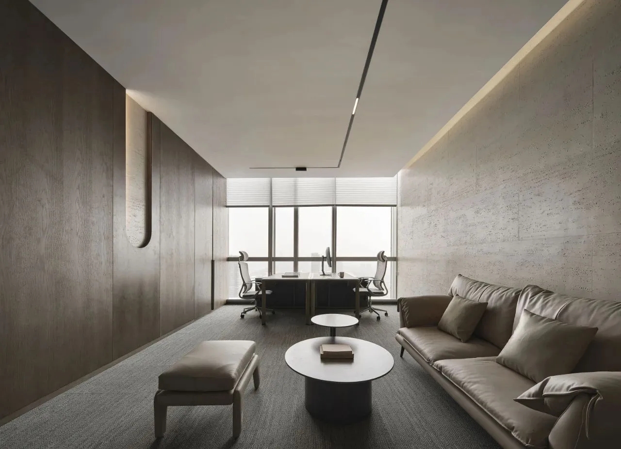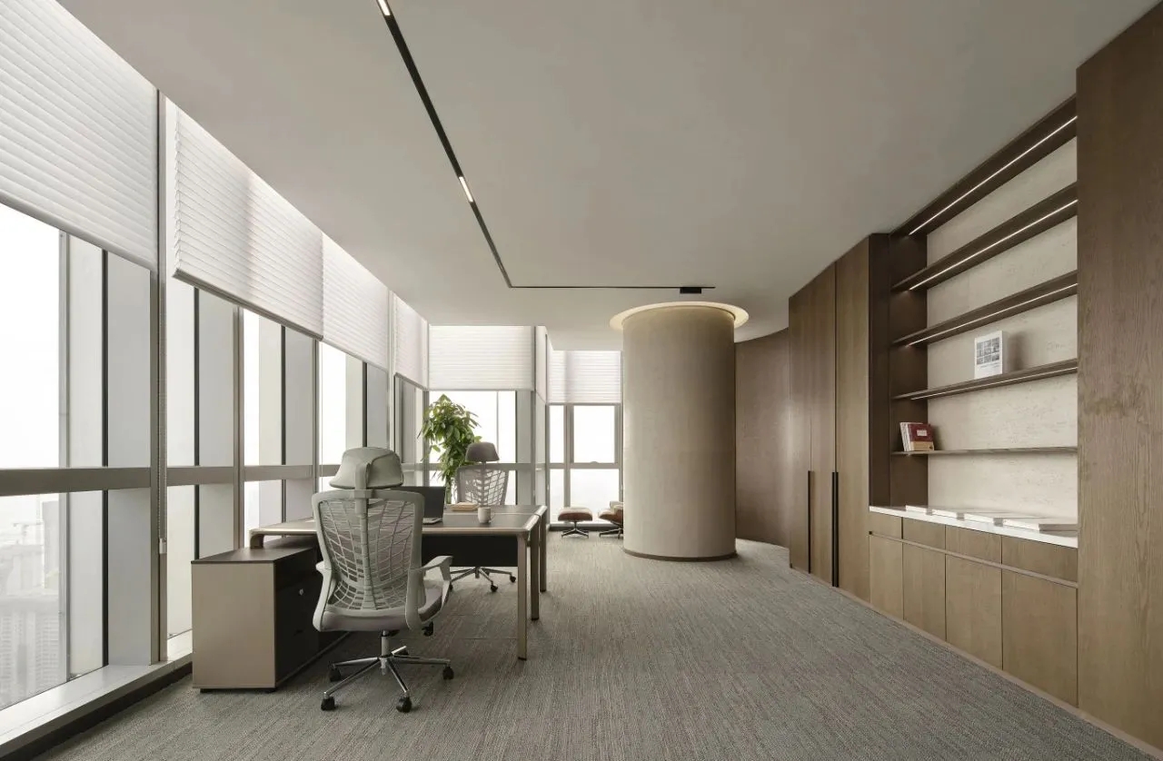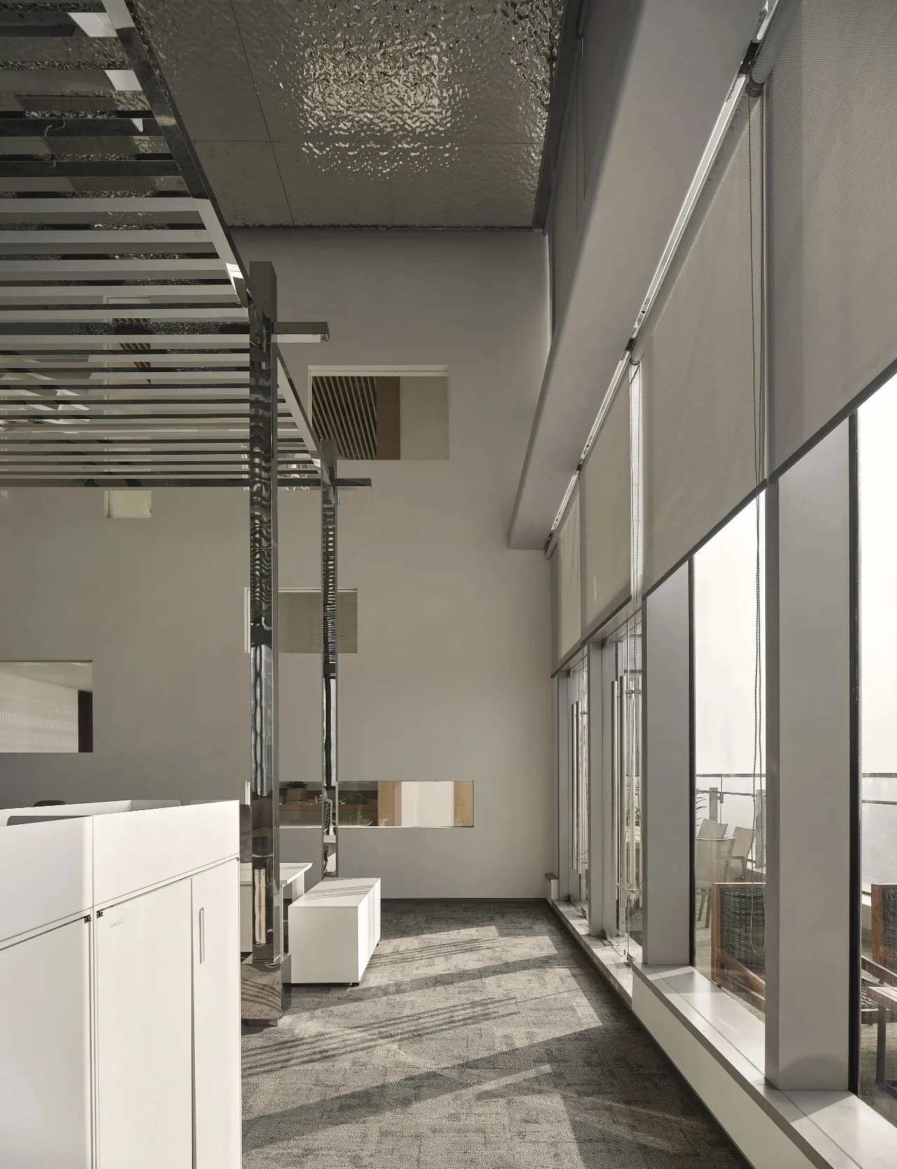 把握尺度、结构、轴线的关系,保持空间干净利落的同时,让办公室尽可能简洁明快。