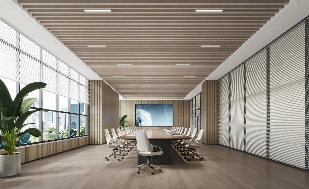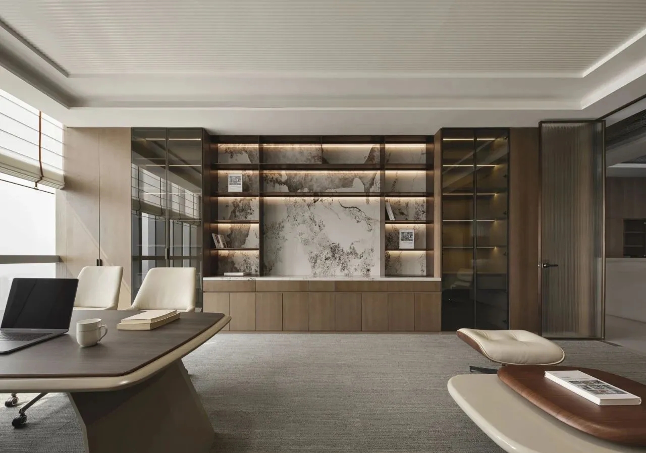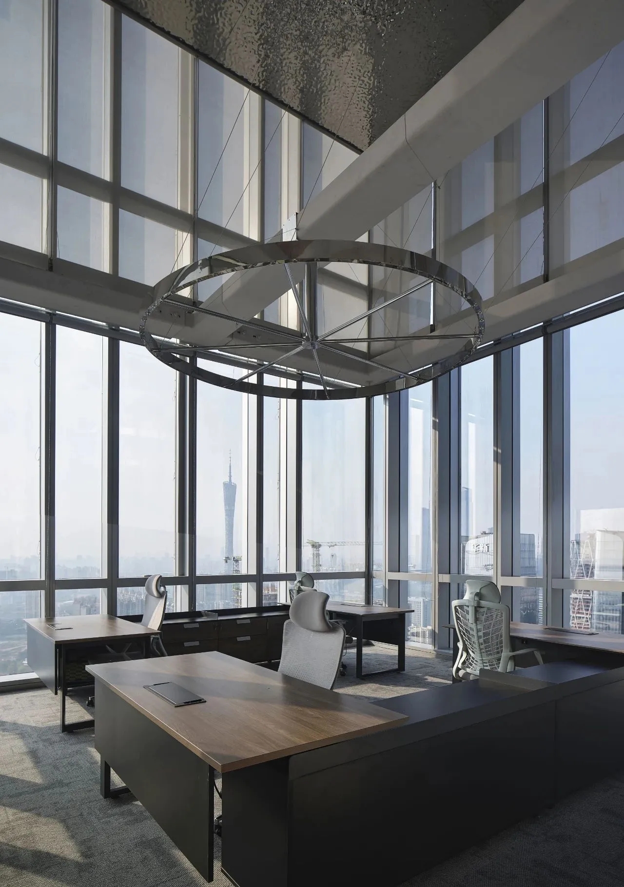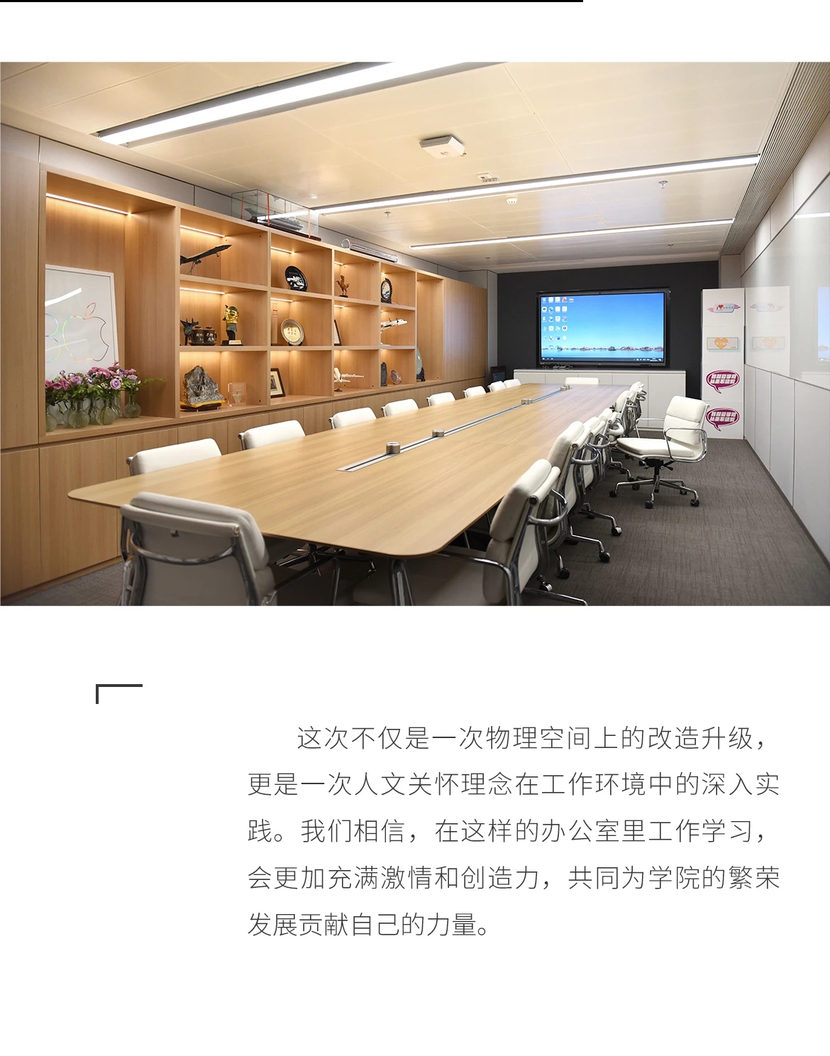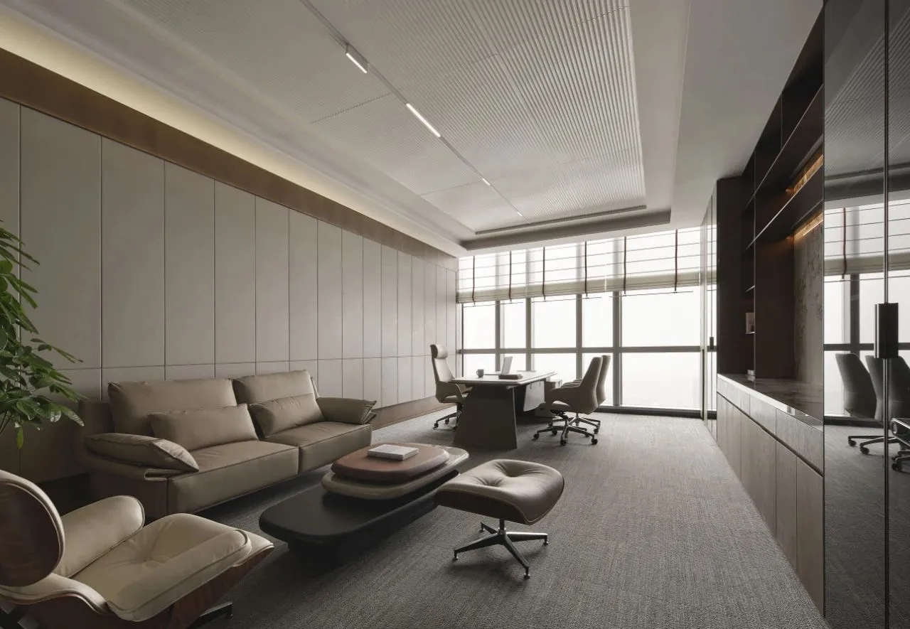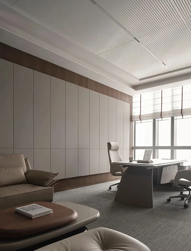 把握尺度、结构、轴线的关系,保持空间干净利落的同时,让办公室尽可能简洁明快。