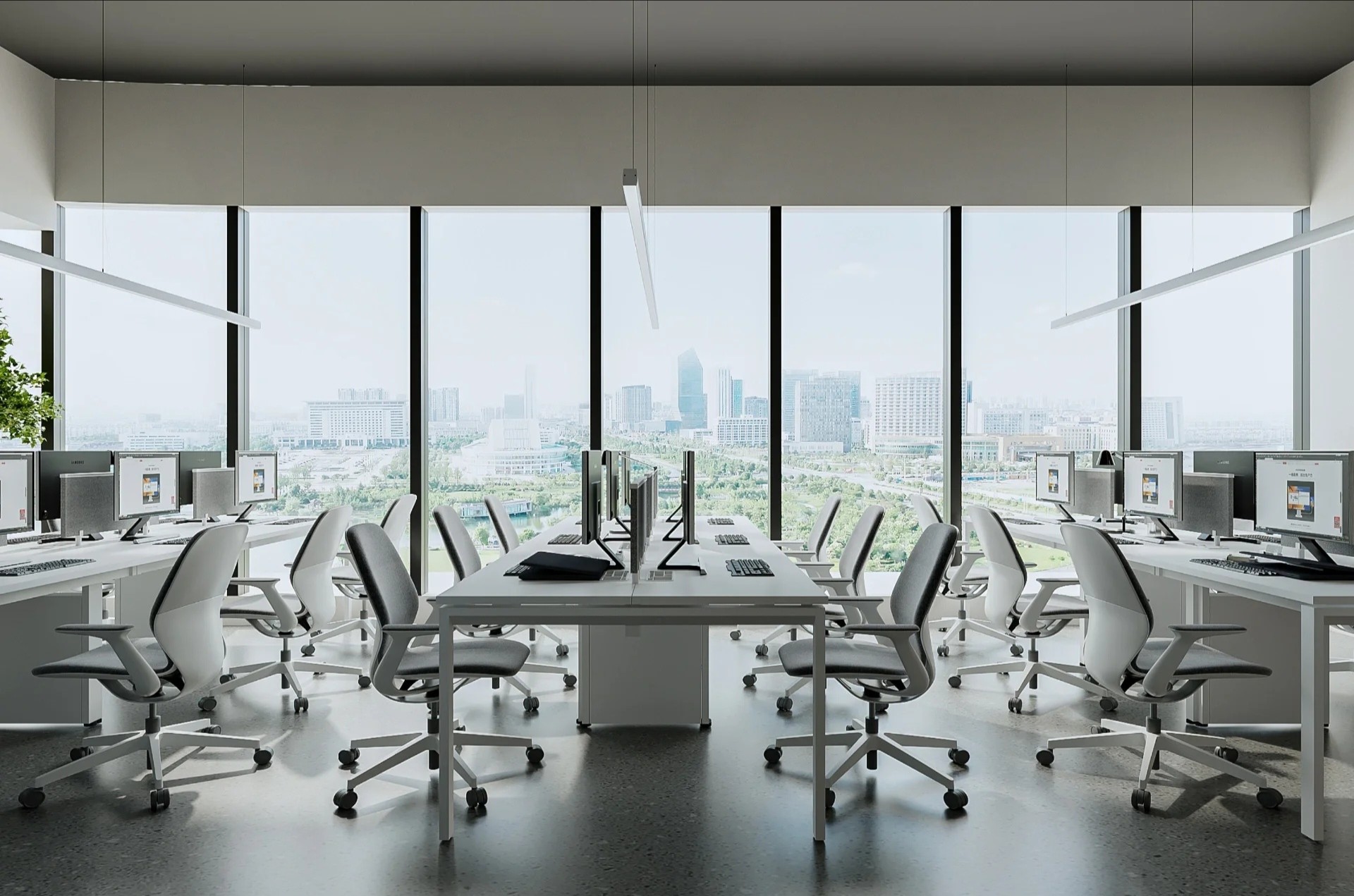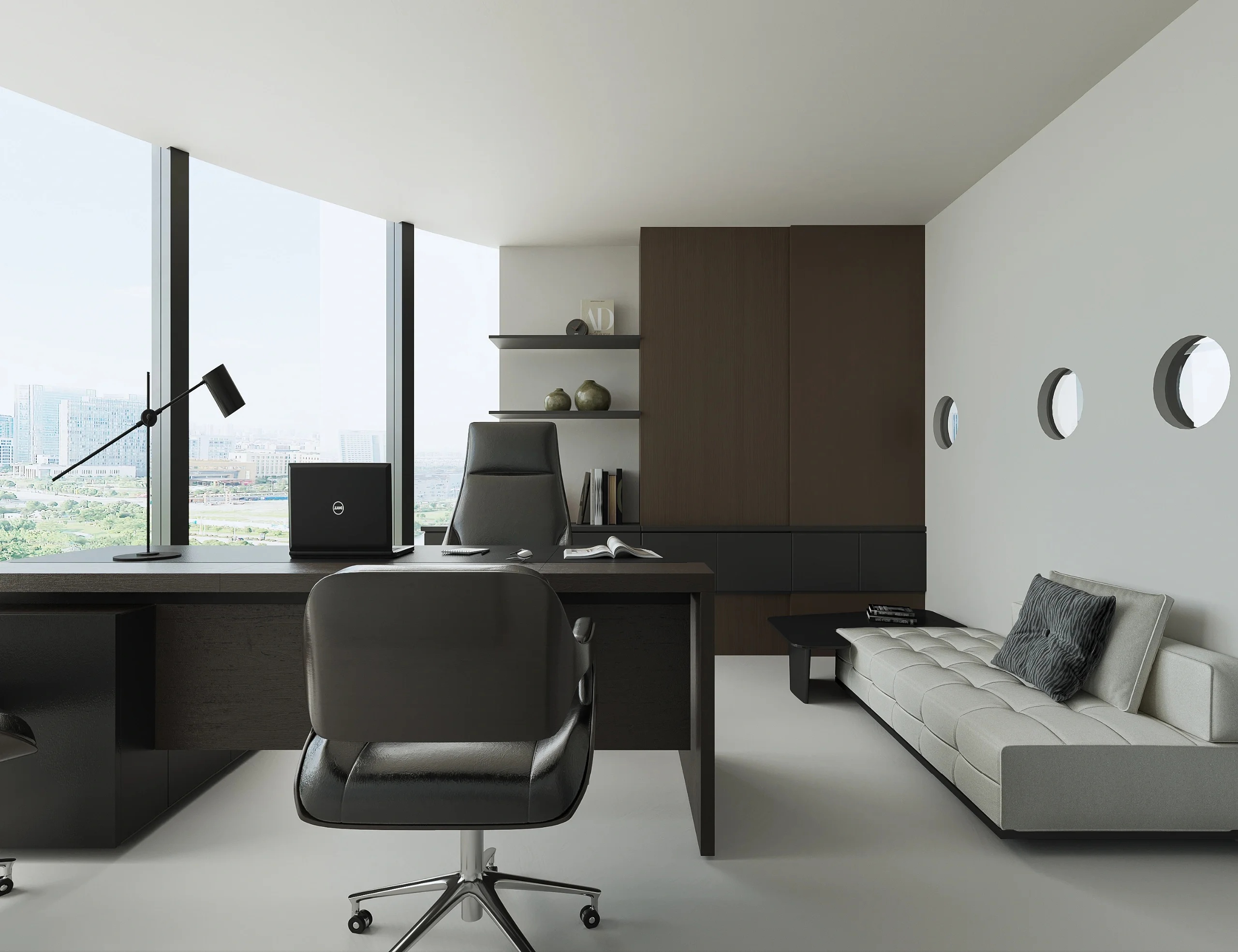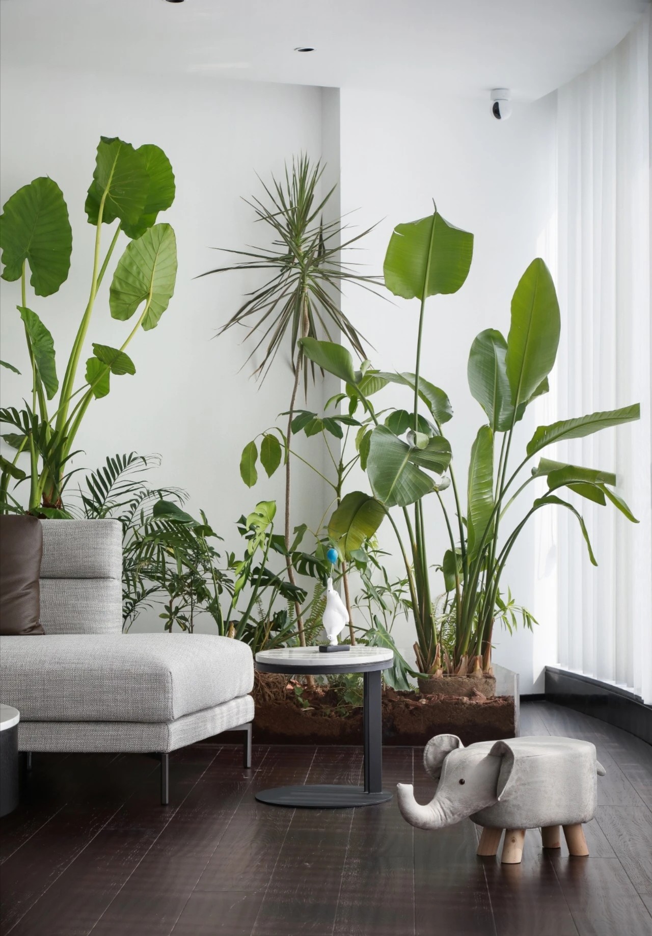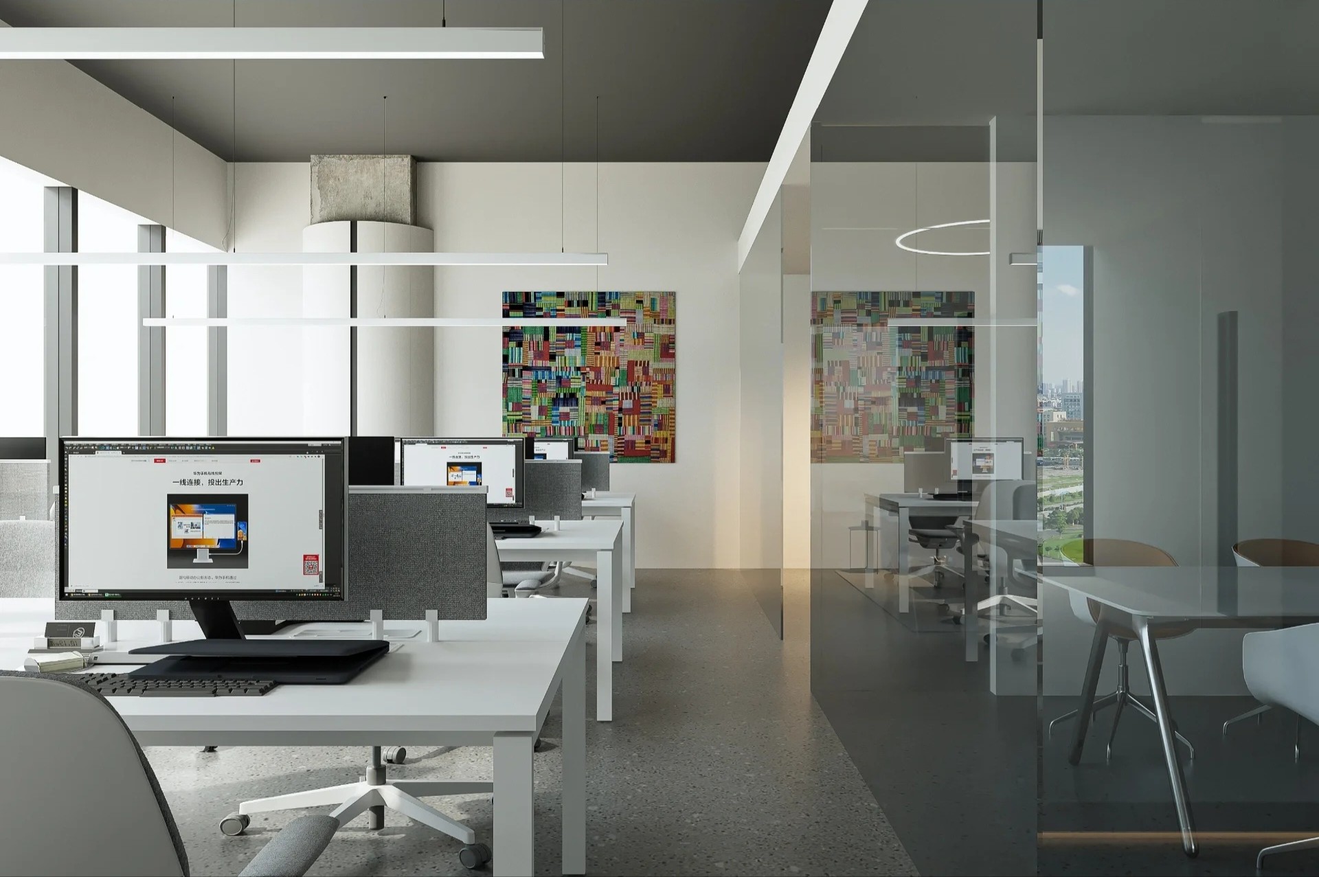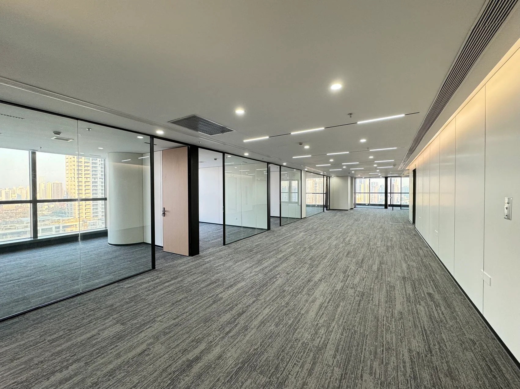 灰玻的中轴门半掩半映之间,饶有趣味,途经过此,灰波纹玻璃“笼中精灵”和会客室的森林感映衬出一幅“山重水复疑无路,柳暗花明又一村”的悠然画卷,尔后步入里间,跟随我们的步伐感受另一番场景。