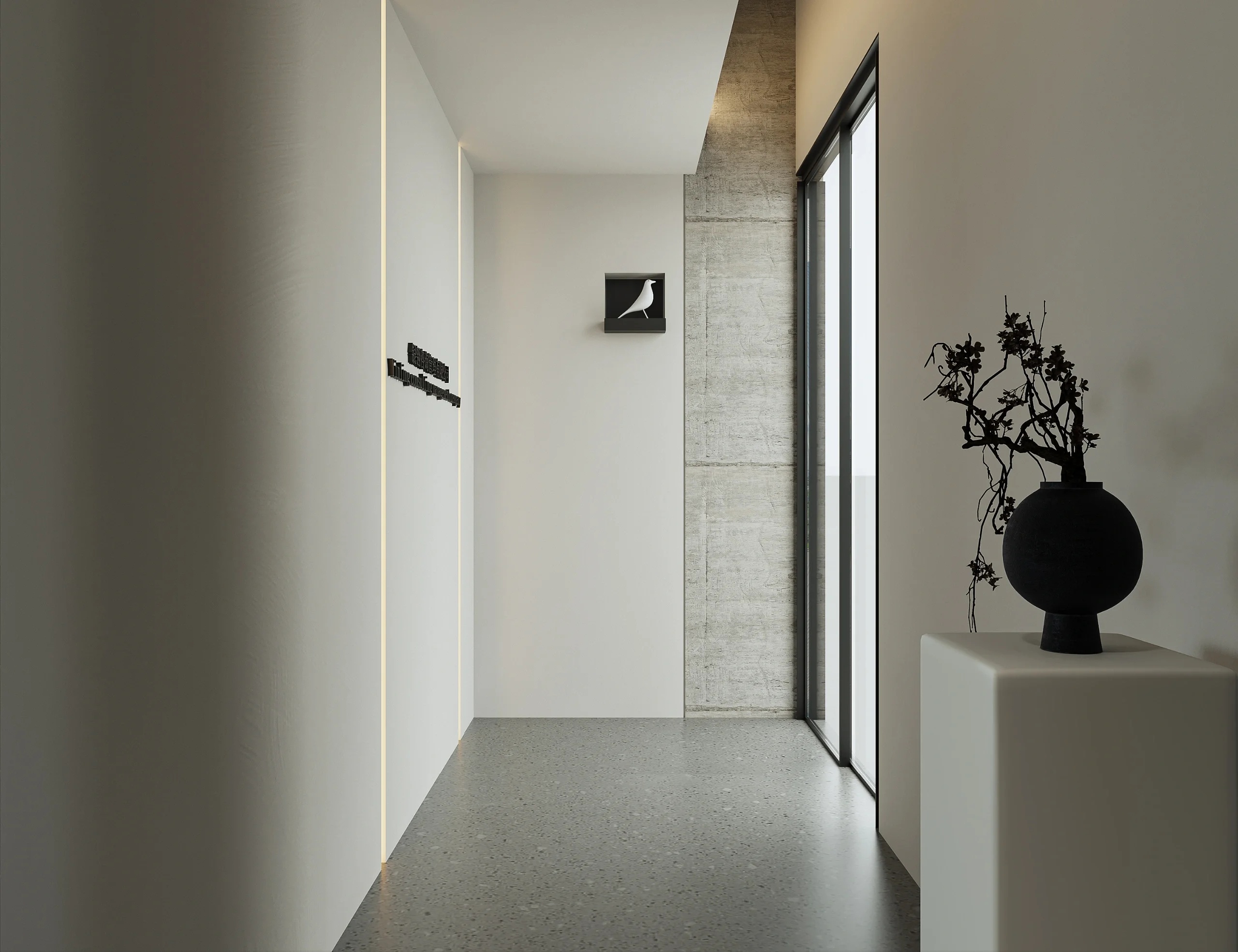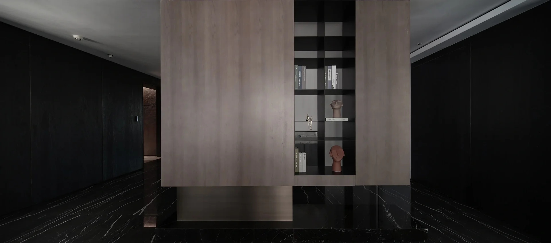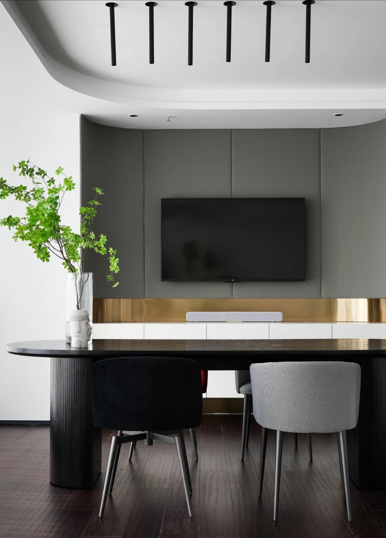黑白分明的简洁利落,且兼顾品质的艺术性,进口处的前厅空间,奠定了整个设计的基调,精炼的线条将整个聚焦让位于多种空间关系发生的可能,并最大限度上助力于艺术的表现张力。