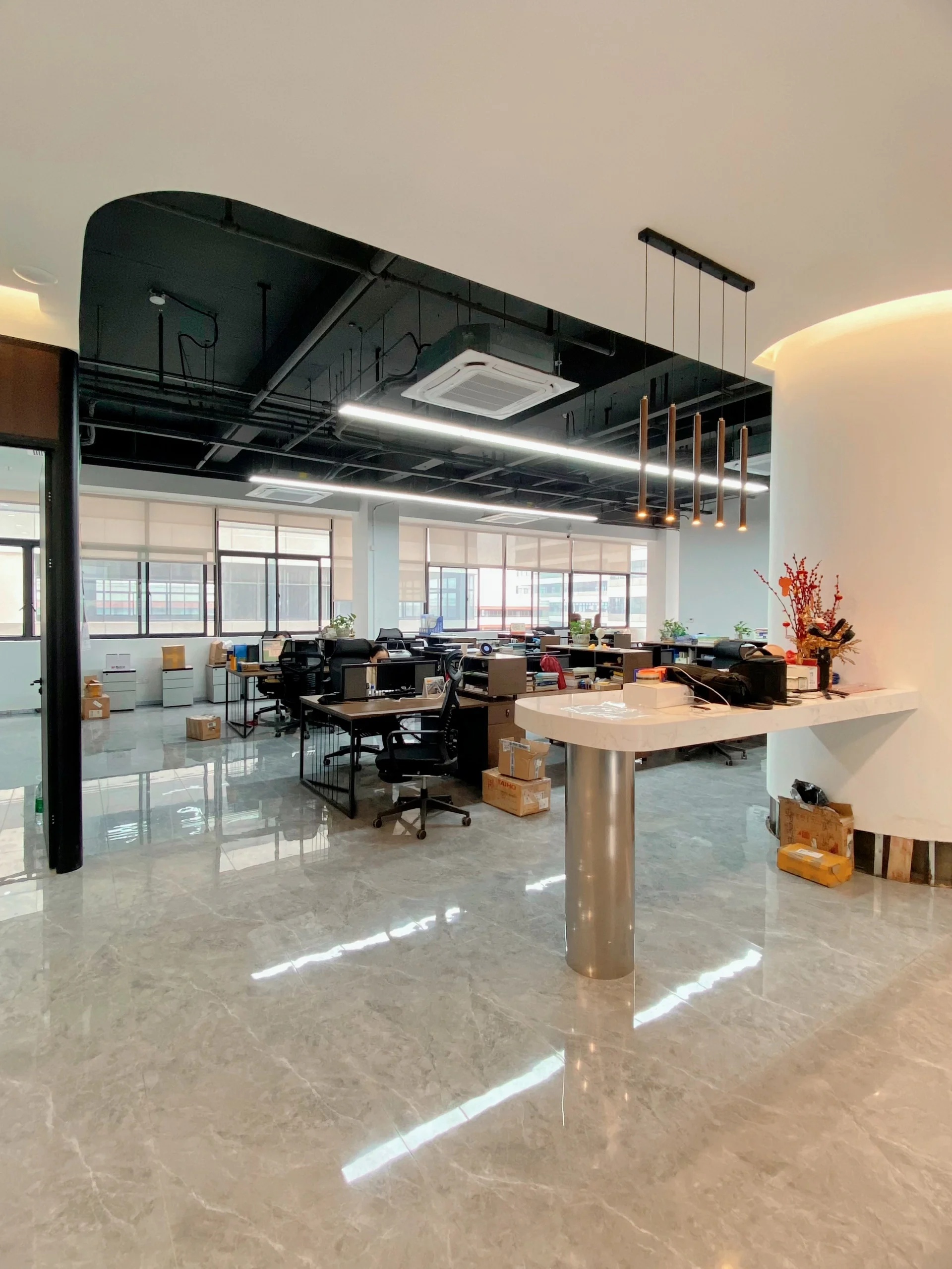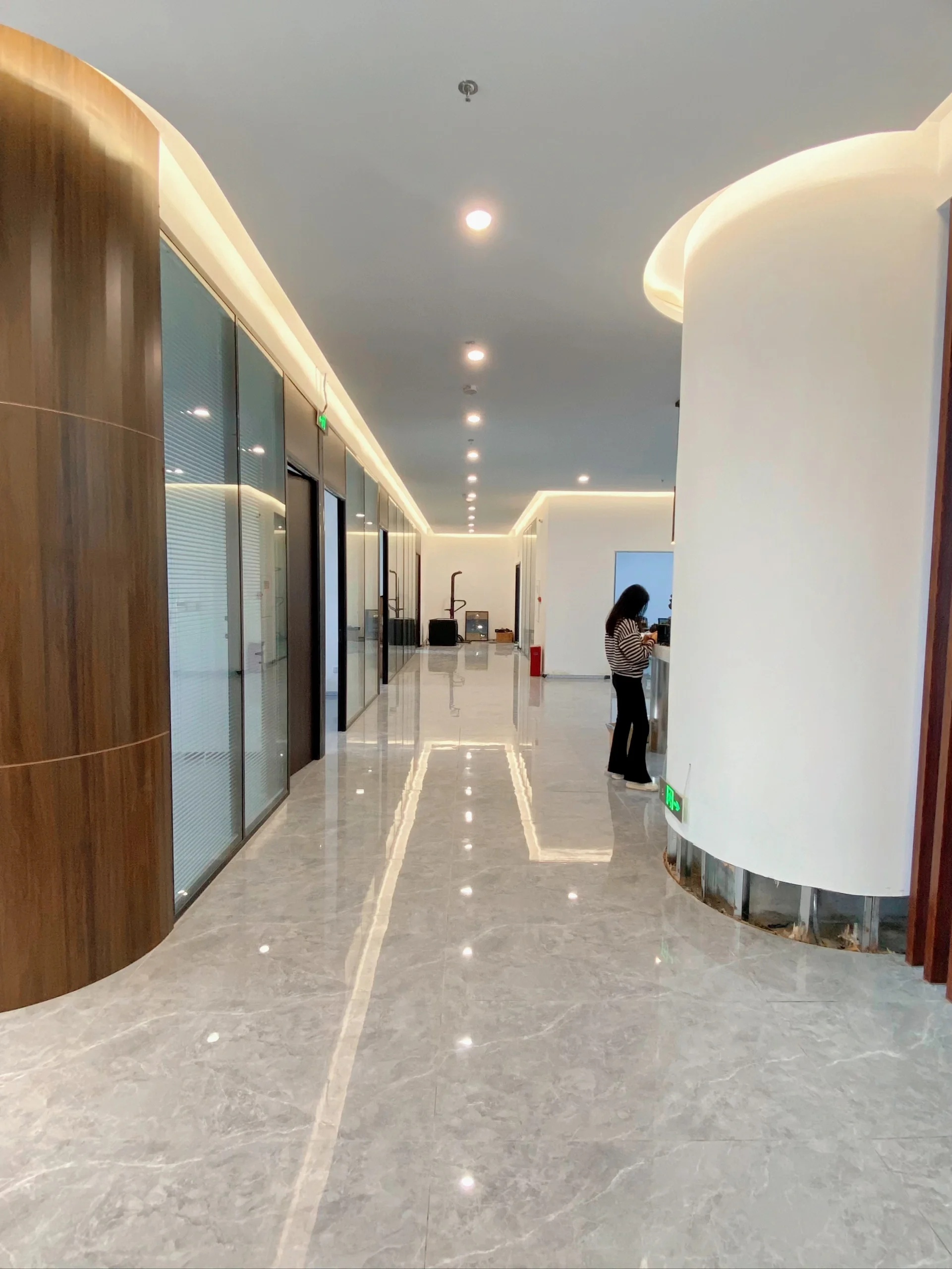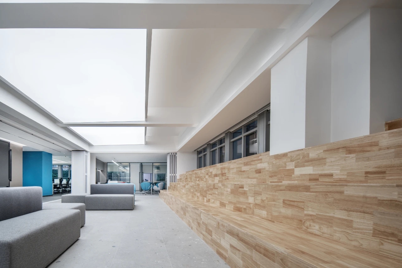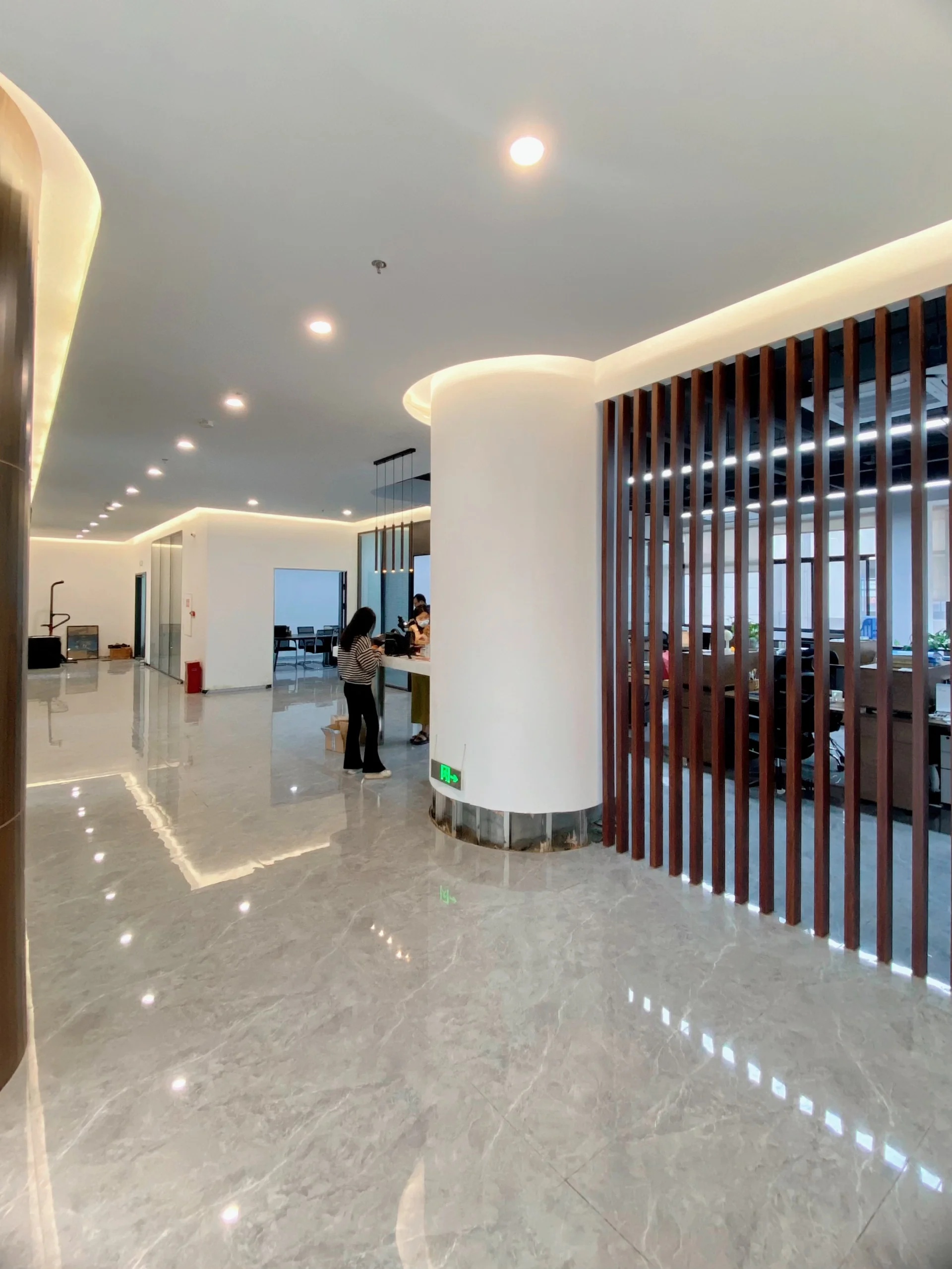 入口处成洄游动线,使办公室保持一种更为私密的环境与神秘感。大片的光引导着方向,往里走,空间便慢慢地呈现,直至豁然开朗,如同《桃花源记》开篇中所描述的那样:初极狭,才通人。复行数十步,豁然开朗。
