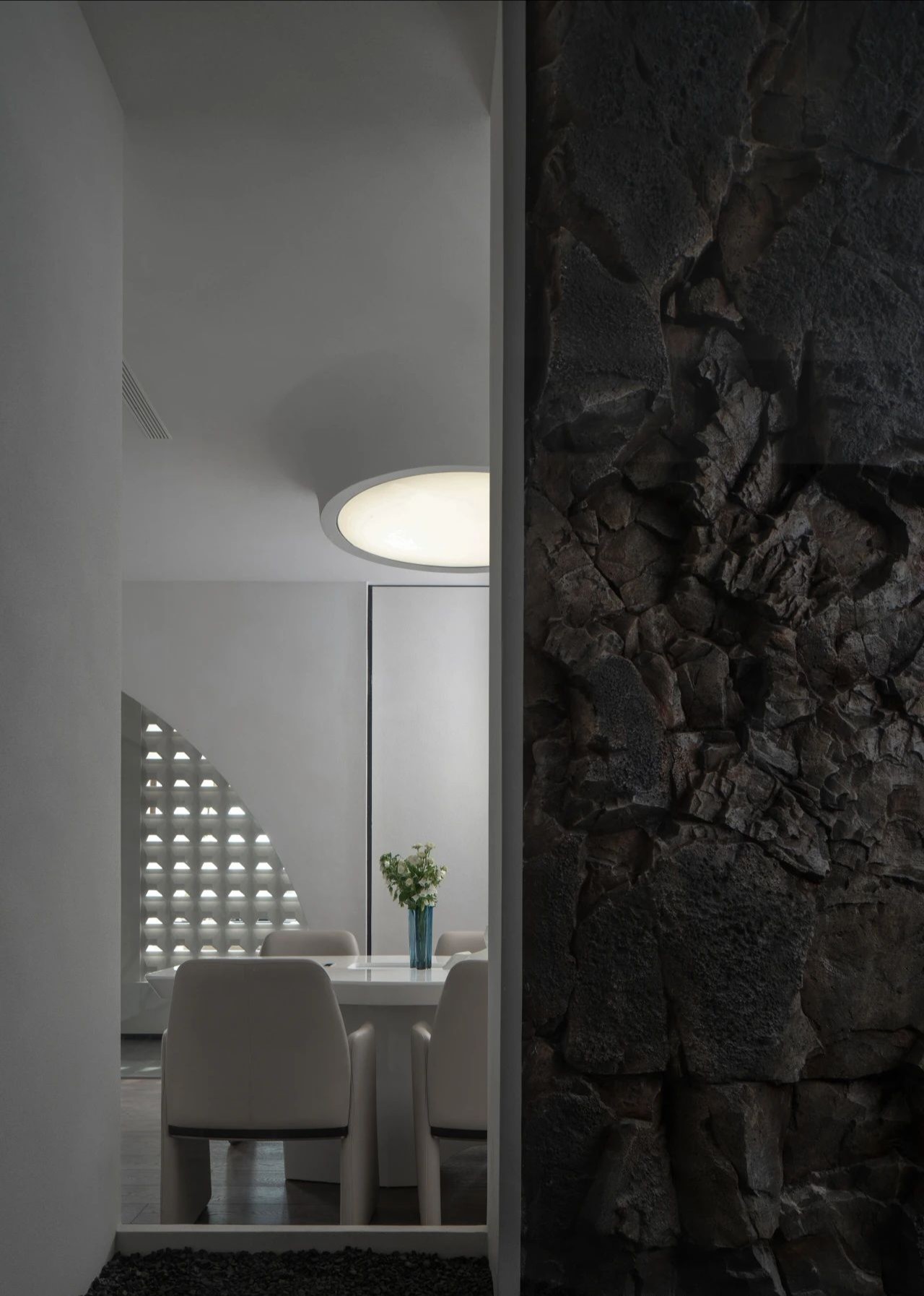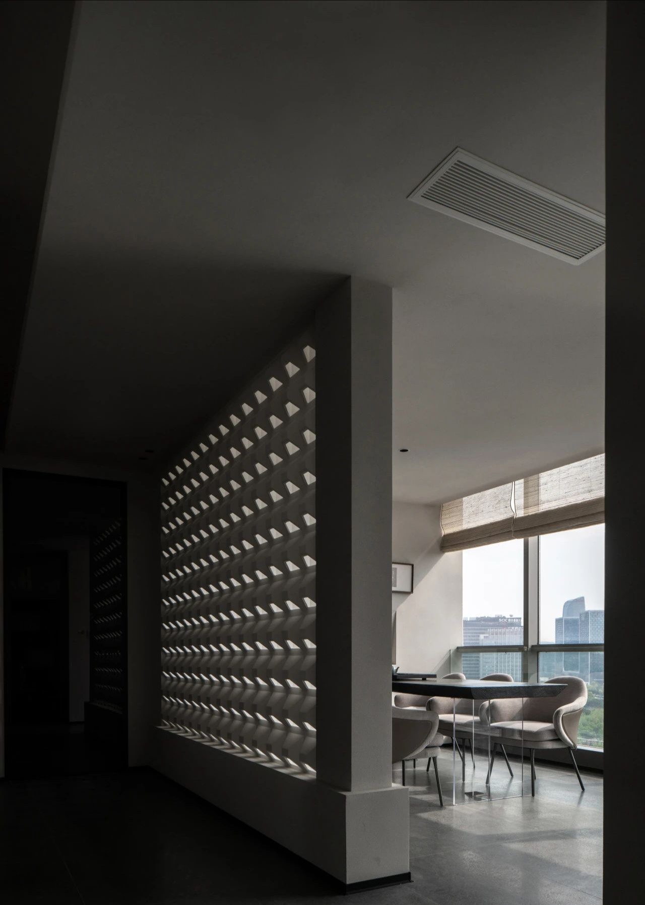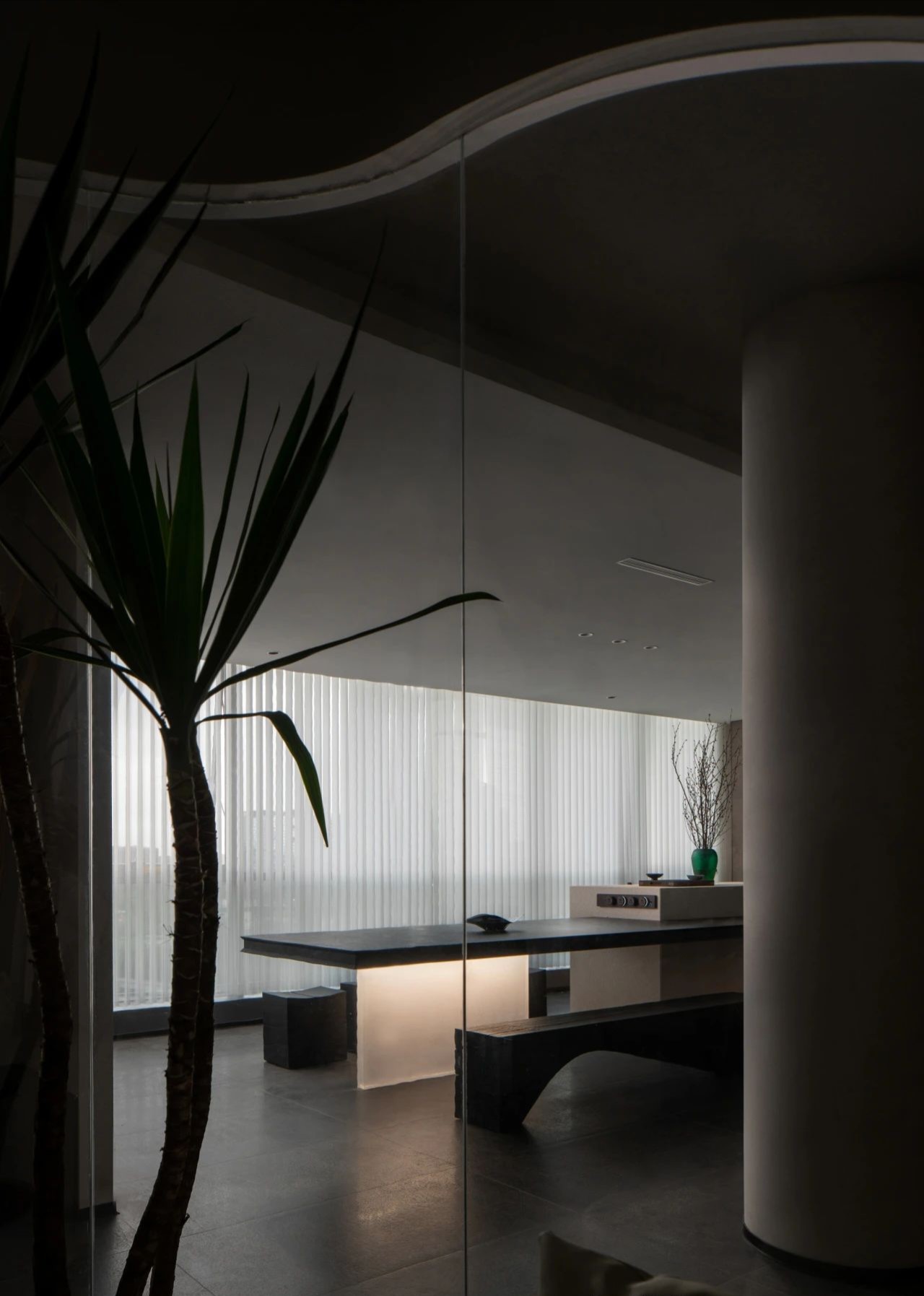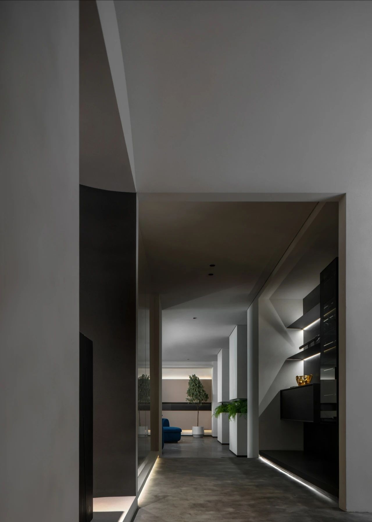 过厅是空间场域切换前的过渡,设计师希望透过光影的协奏、虚实的比衬、动静的平衡与意境的构造,打造一个开放、通透、相互伸延又贯通的空间。人在其中,感受不同场景切换的美轮美奂。