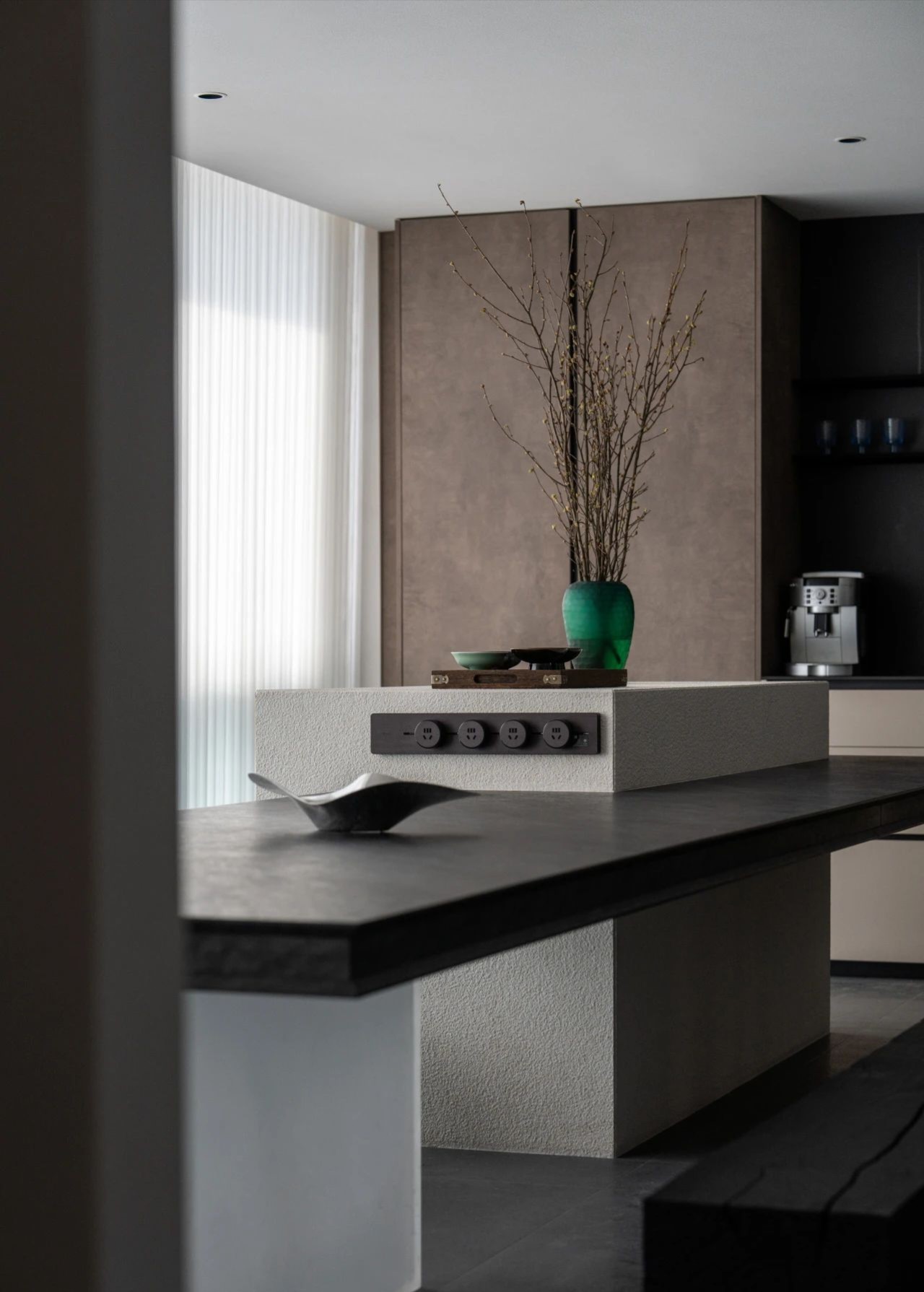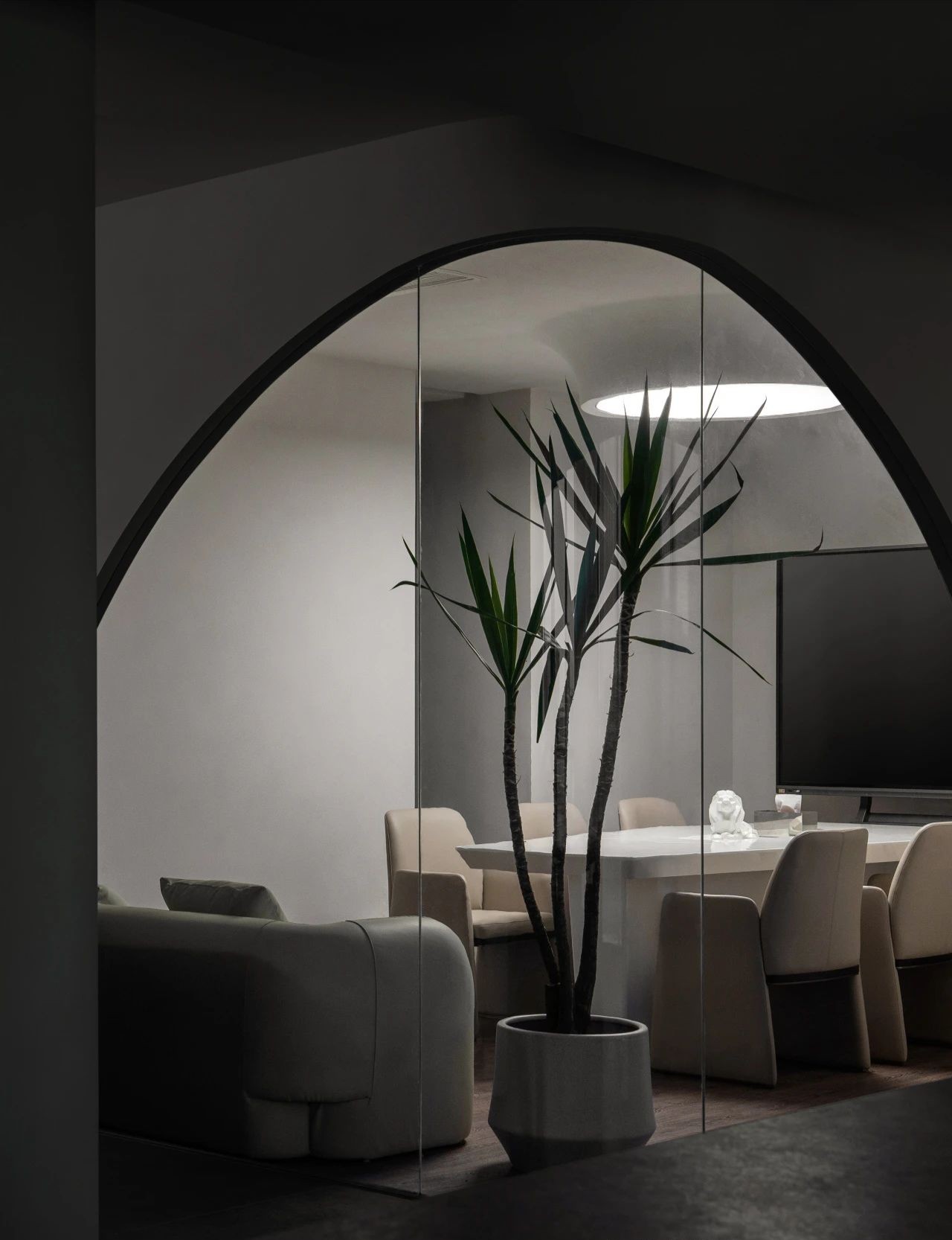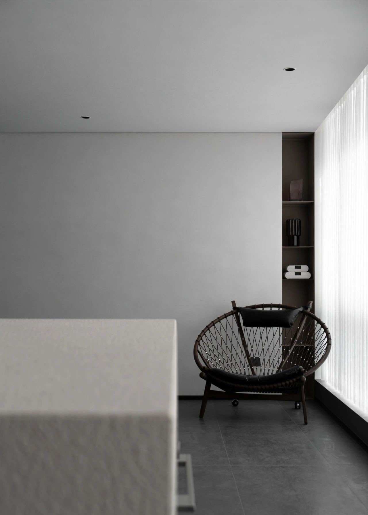 过厅是空间场域切换前的过渡,设计师希望透过光影的协奏、虚实的比衬、动静的平衡与意境的构造,打造一个开放、通透、相互伸延又贯通的空间。人在其中,感受不同场景切换的美轮美奂。