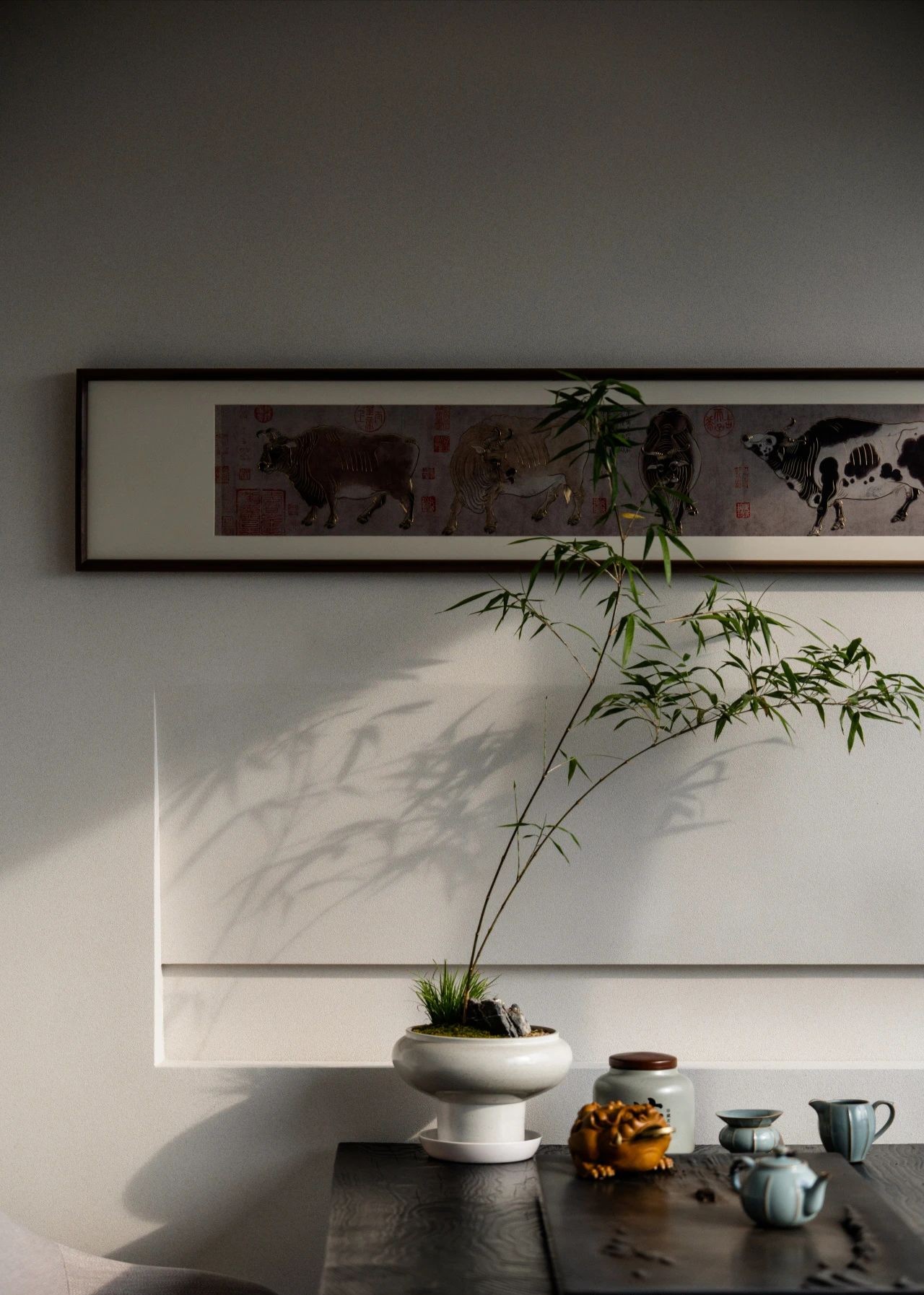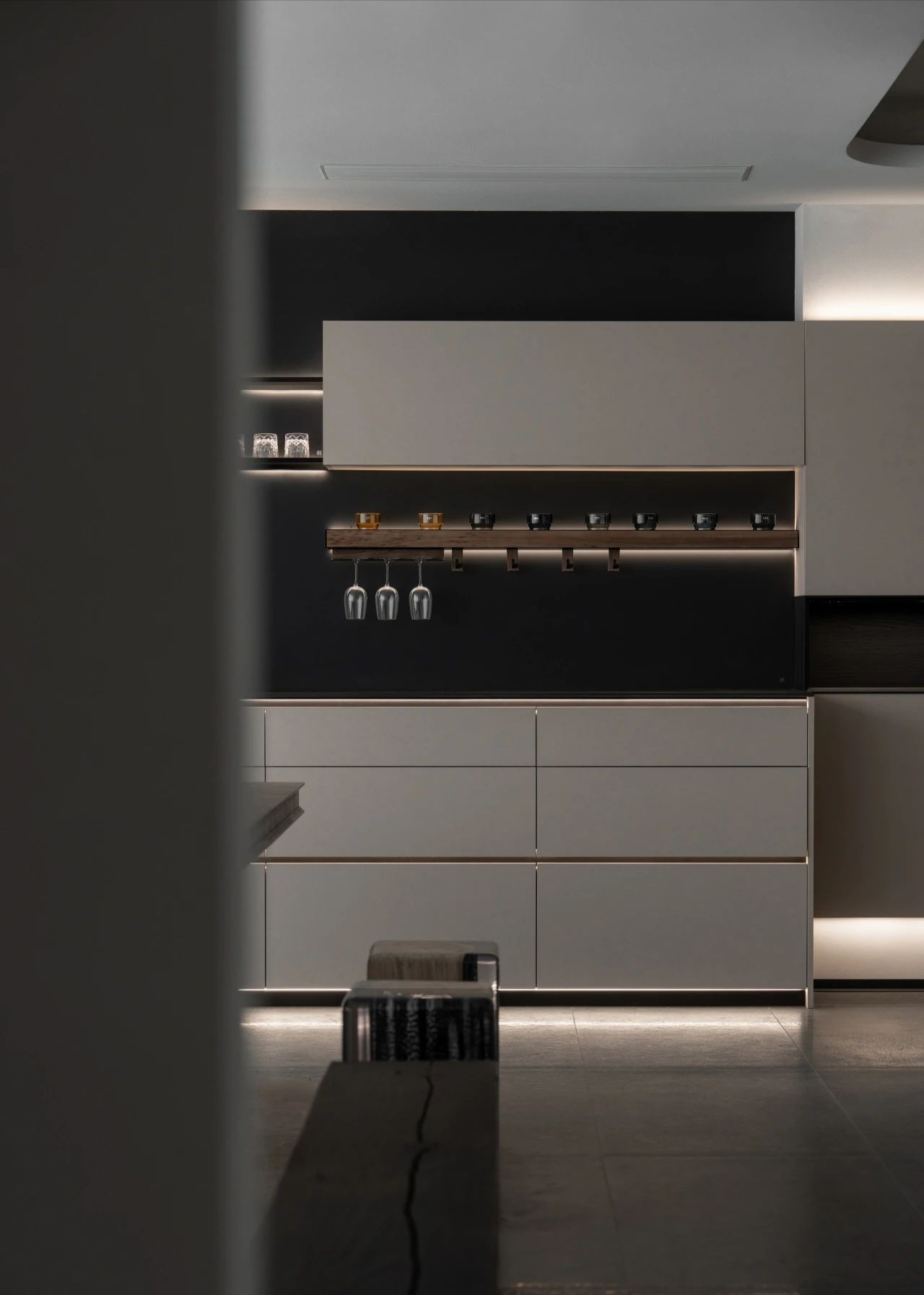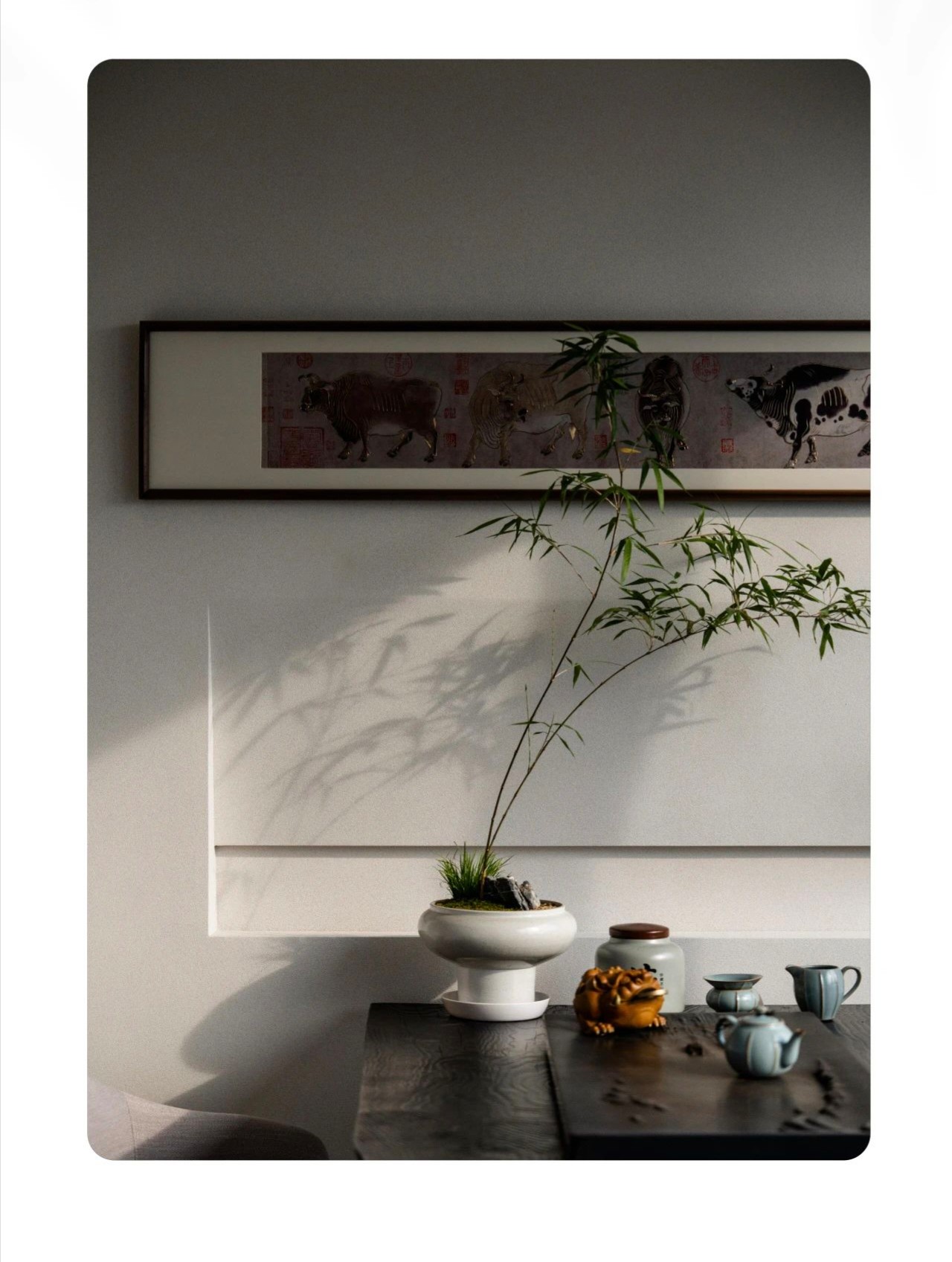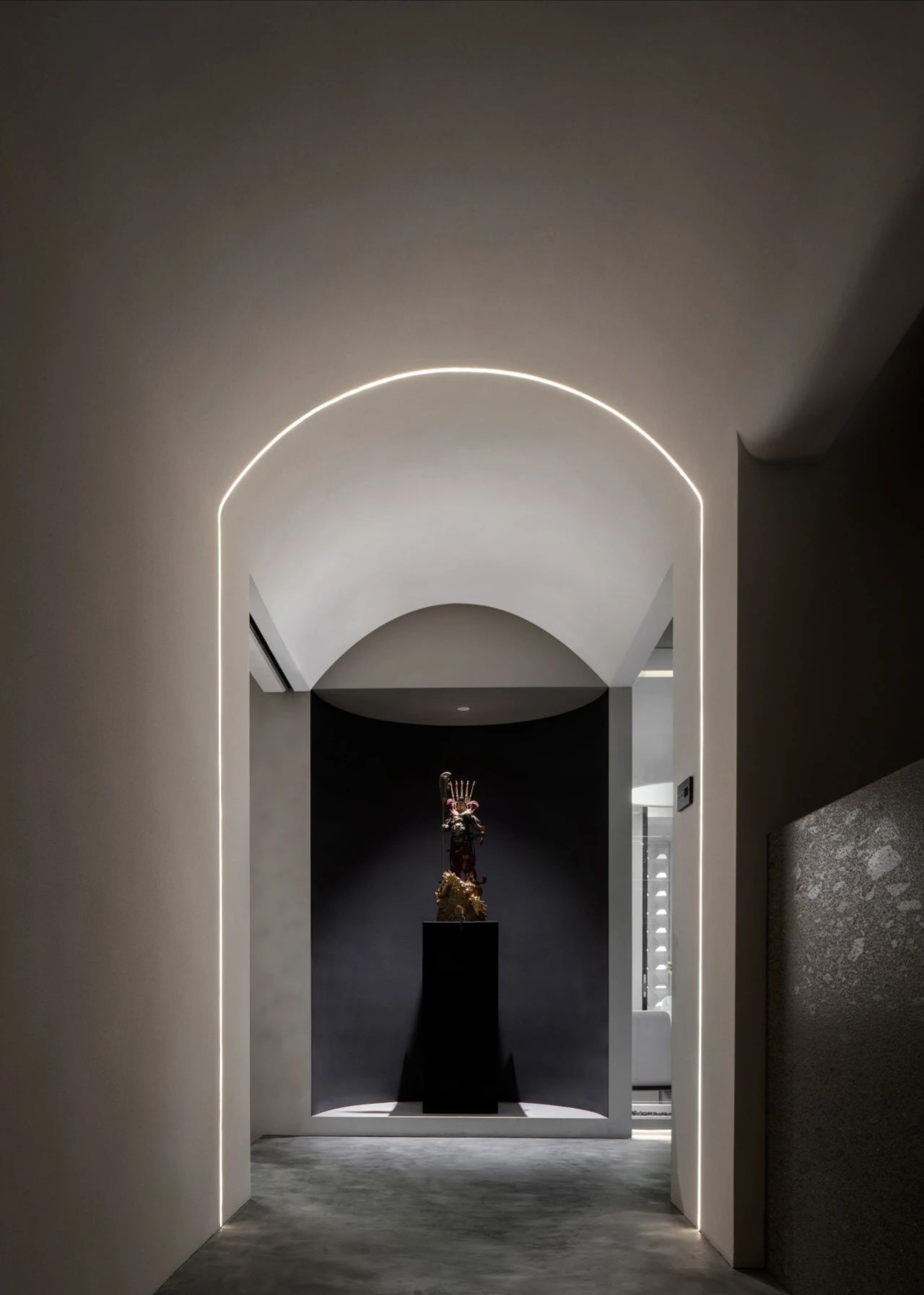 过厅是空间场域切换前的过渡,设计师希望透过光影的协奏、虚实的比衬、动静的平衡与意境的构造,打造一个开放、通透、相互伸延又贯通的空间。人在其中,感受不同场景切换的美轮美奂。