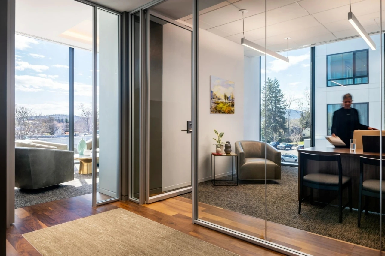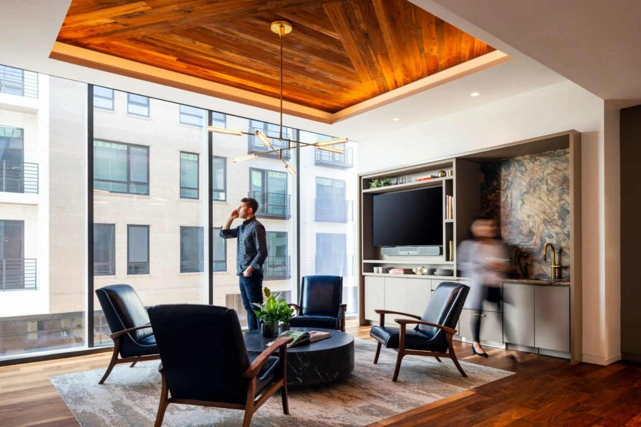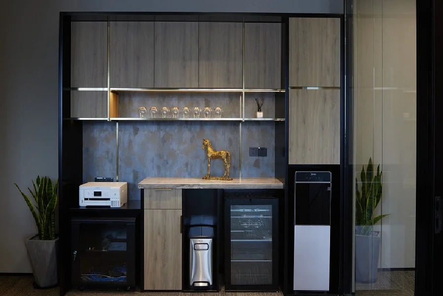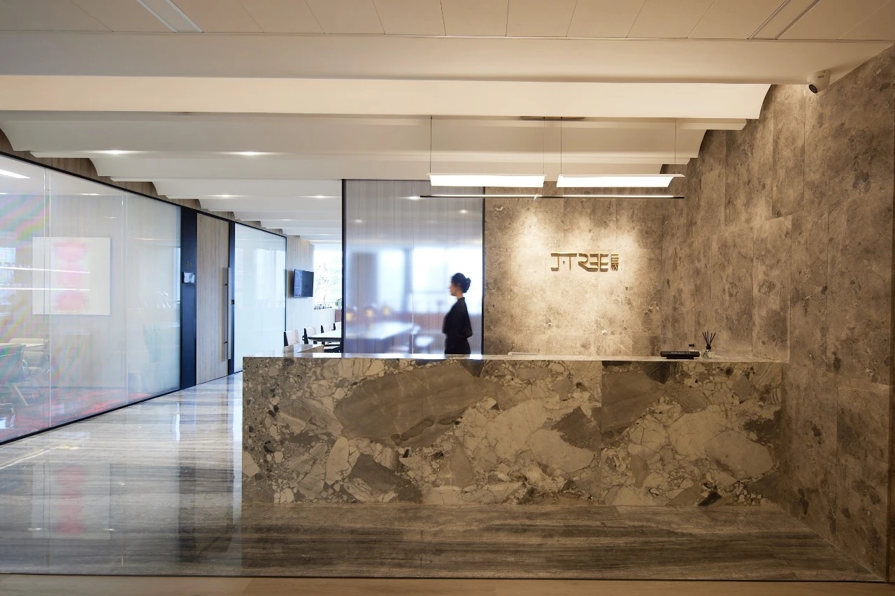 半私人套房设有开放式工作站,可容纳人力资源和会计部门。除了两间董事会议室和行政酒廊空间外,员工还可以使用带健身器材和淋浴的健康套房。楼下有无数的餐饮场所,两个小茶水间主要作为员工的饮料中心。量身定制的优雅设计理念从现代西装中汲取灵感,利用纹理和分层材料来增加深度,传达品牌的客户体验和对细节的关注。