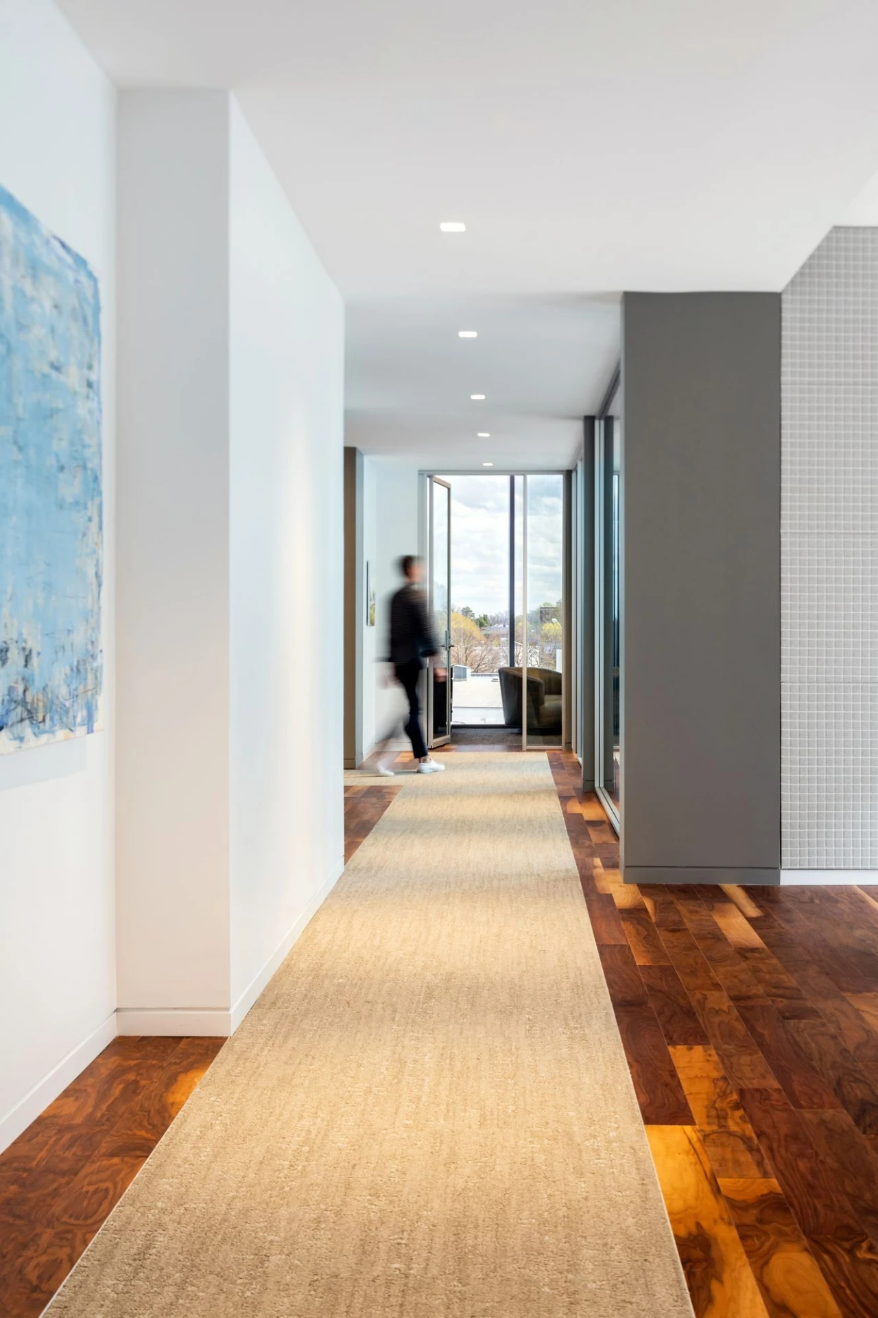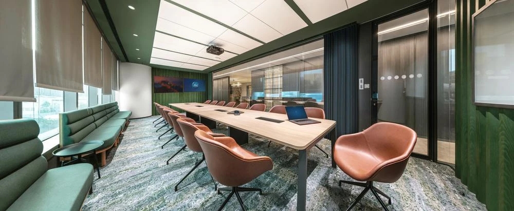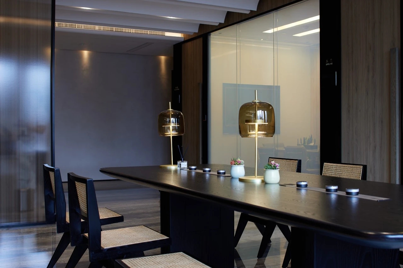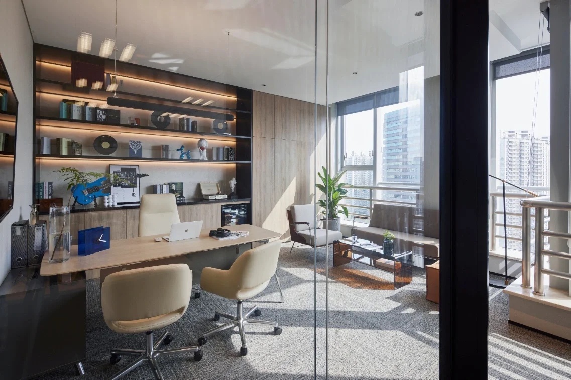 规划最大限度地增加了私人办公室的数量,以满足高管的需求 - 其大部分员工都是负责国家收购和管理的人员。落地窗为周边办公室提供充足的阳光,而室内办公室需要更多创造性的解决方案来扩大自然,包括在双层走廊中引入洗墙灯和玻璃墙。此外,地板和天花板饰面从走廊延伸到办公空间,营造出开放、通风的效果。