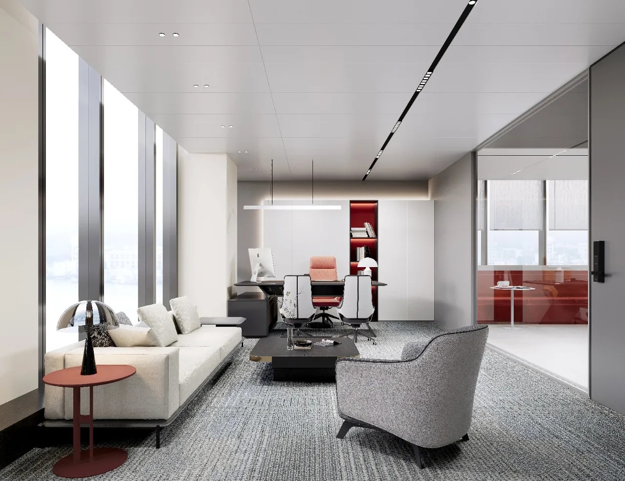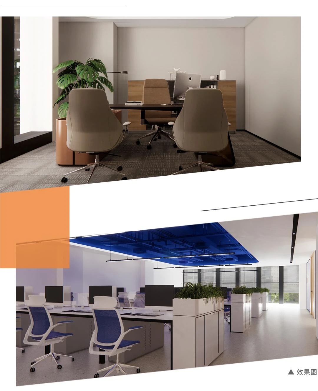 在办公环境方面,造梦空间充分利用自然光,配置大窗户,使用透明或半透明的窗帘以便于控制阳光,将绿植引入办公室,创造室内花园或小型绿意角落,提高空气质量,创造舒适的自然氛围。在办公空间方面,打破传统的隔间布局,采用开放式设计,促进团队合作和信息流通。在此基础上,提供灵活的工作空间,划分不同功能区域,例如会议区、休息区和专注工作区,以满足不同工作需求。