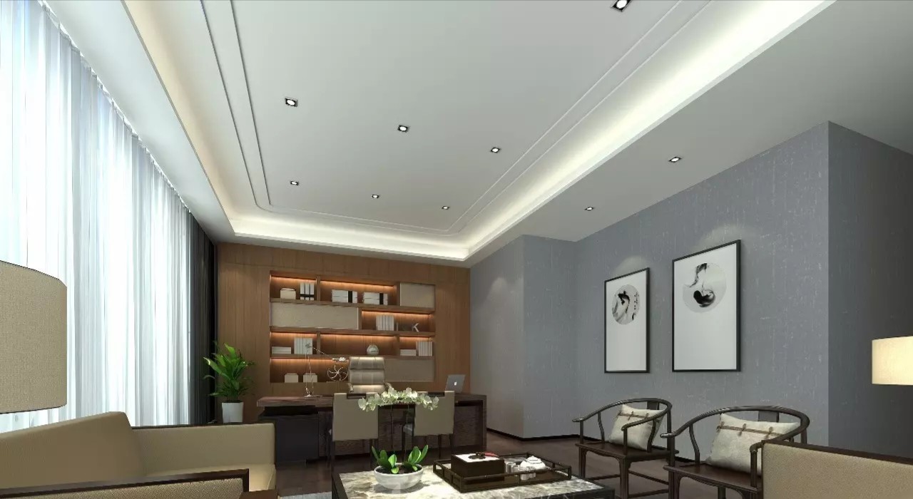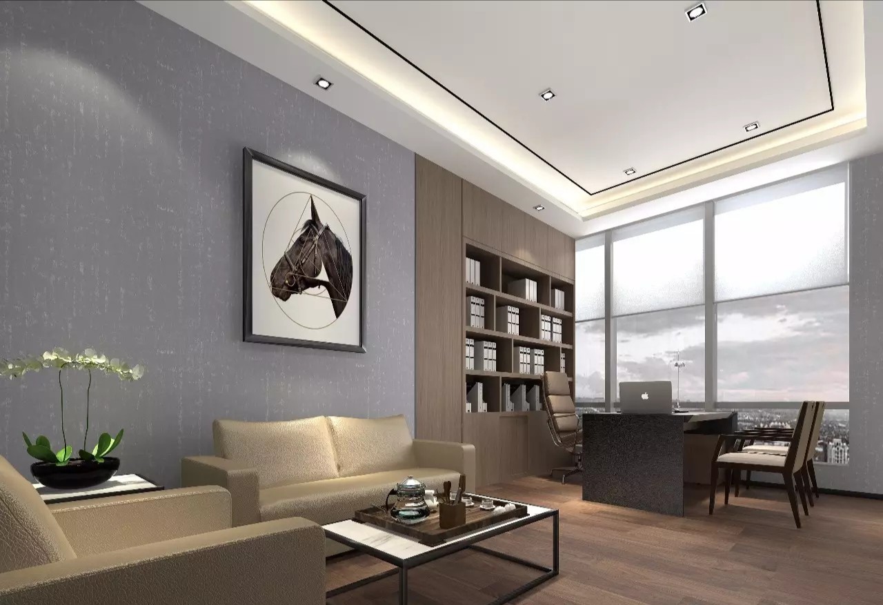 本案设计师避免了刻板的直角,打破传统办公空间的直线刻板,以弧线的形式灵动整个空间,增加人的属实感,延伸空间,令人豁然开朗,满足每一位前来咨询的客户。弧形吊顶和线性灯与地面跑道式地毯纹样相呼应,既延伸空间,又寓意“条条有理,路路畅通”。弧形玻璃的运用,开阔了空间,柔和了视觉,有客户时通电磨砂,无客户时通透明亮,私密与开敞共存。看海方向设计为接待和洽谈区,给客户独有的开阔感和大气氛围。