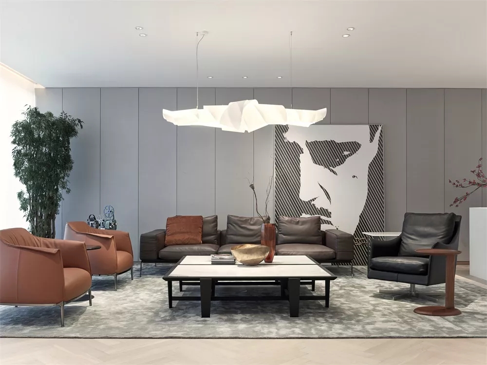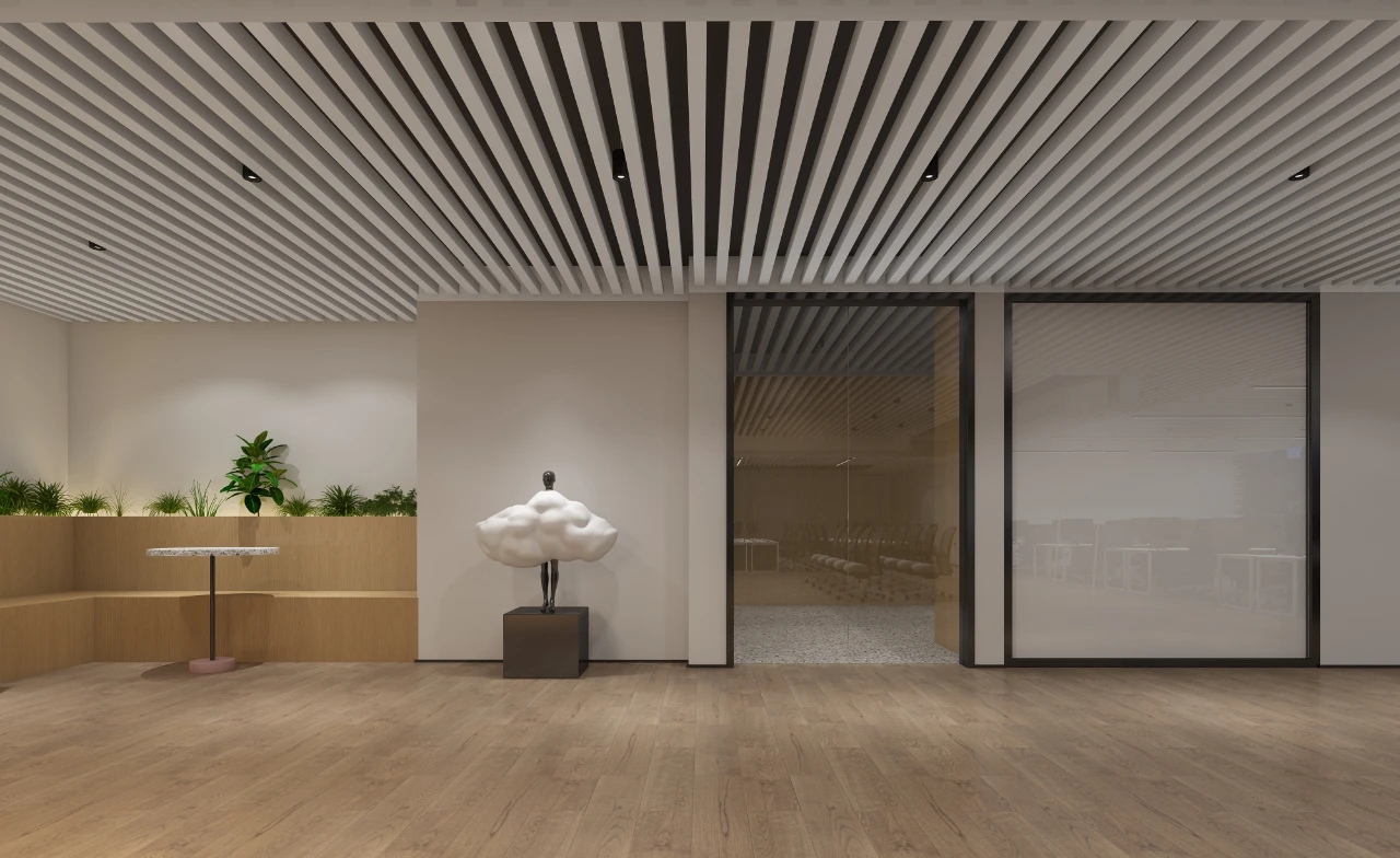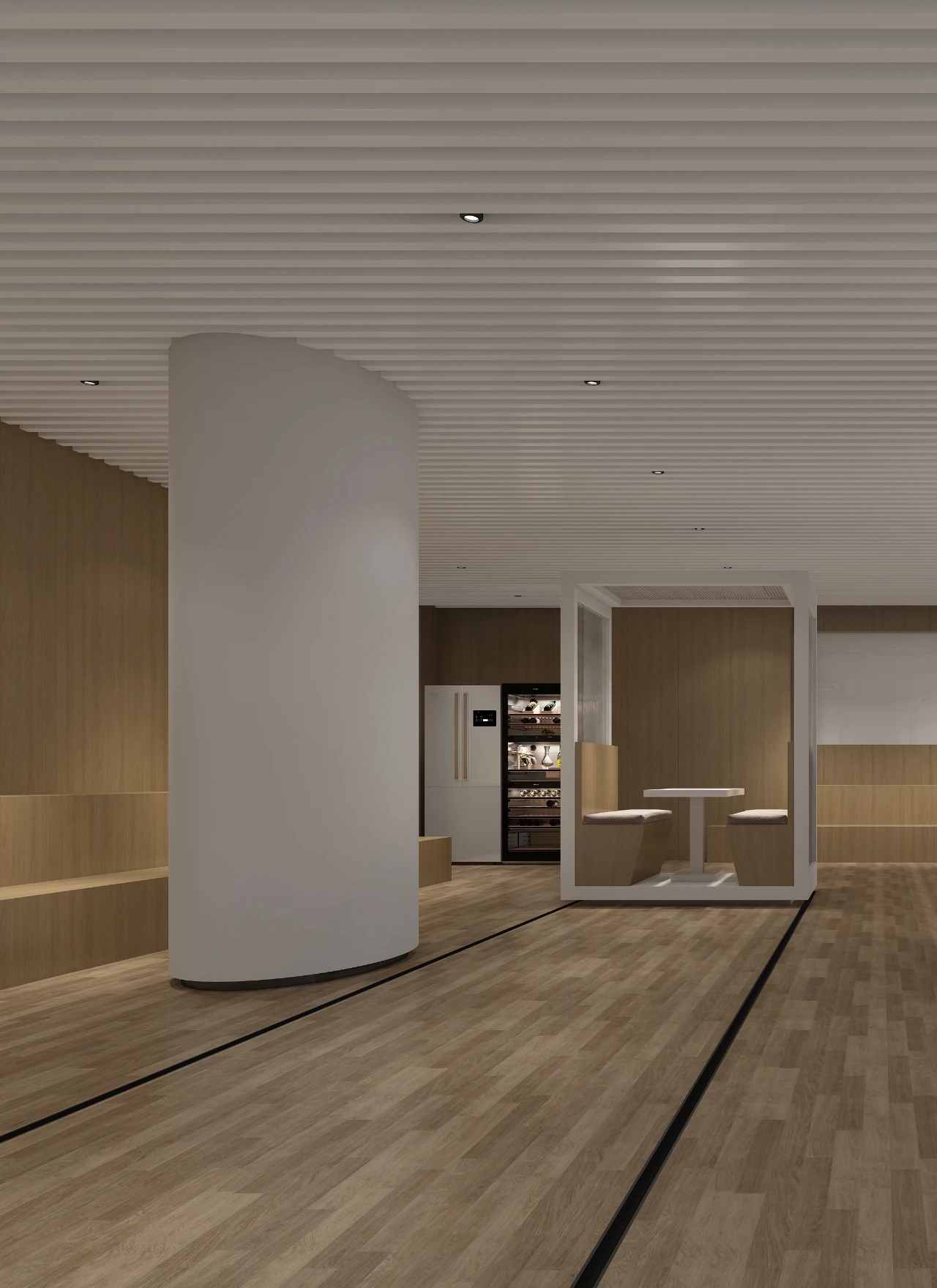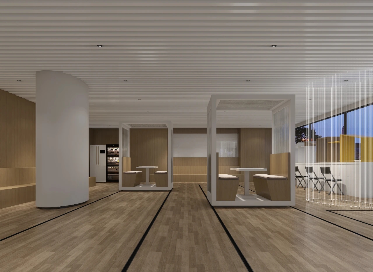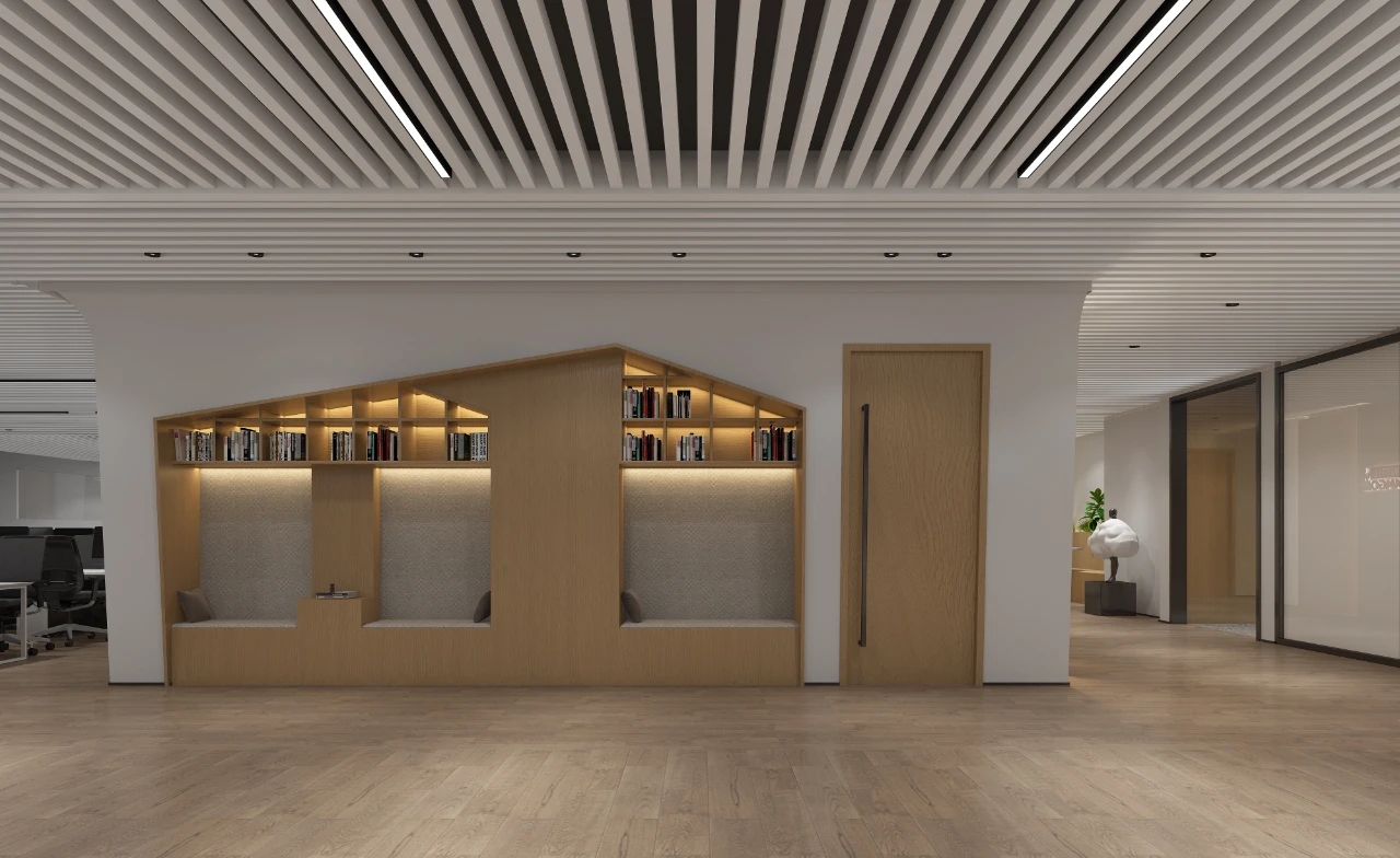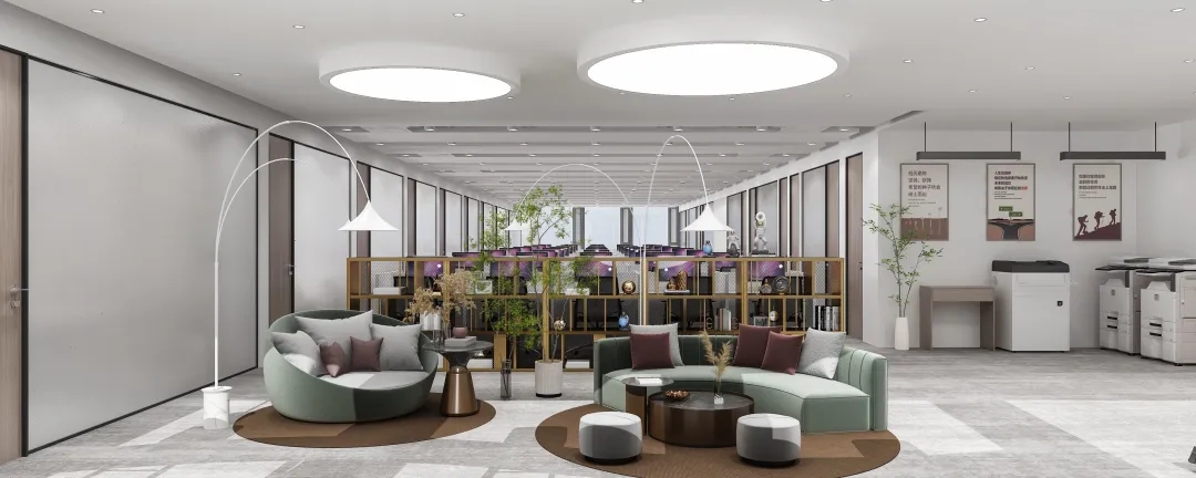 在前台,镂空屏风是一个微妙而有影响力的设计元素。这种创新的添加创造了一种艺术感,同时又不影响空间的开放性。前台之外,还有精心设计的休闲区,这个多功能空间是员工放松身心或接待访客的场所,开放式的布局可欣赏全景,将工作与休闲融为一体。