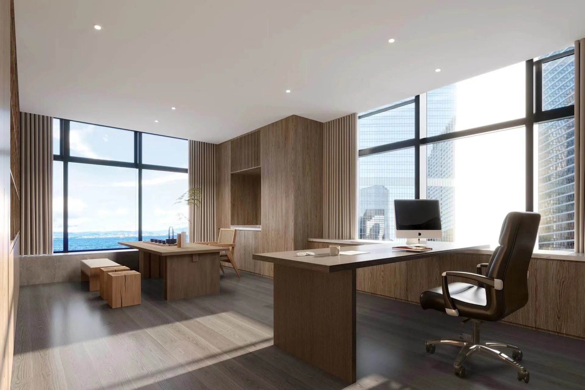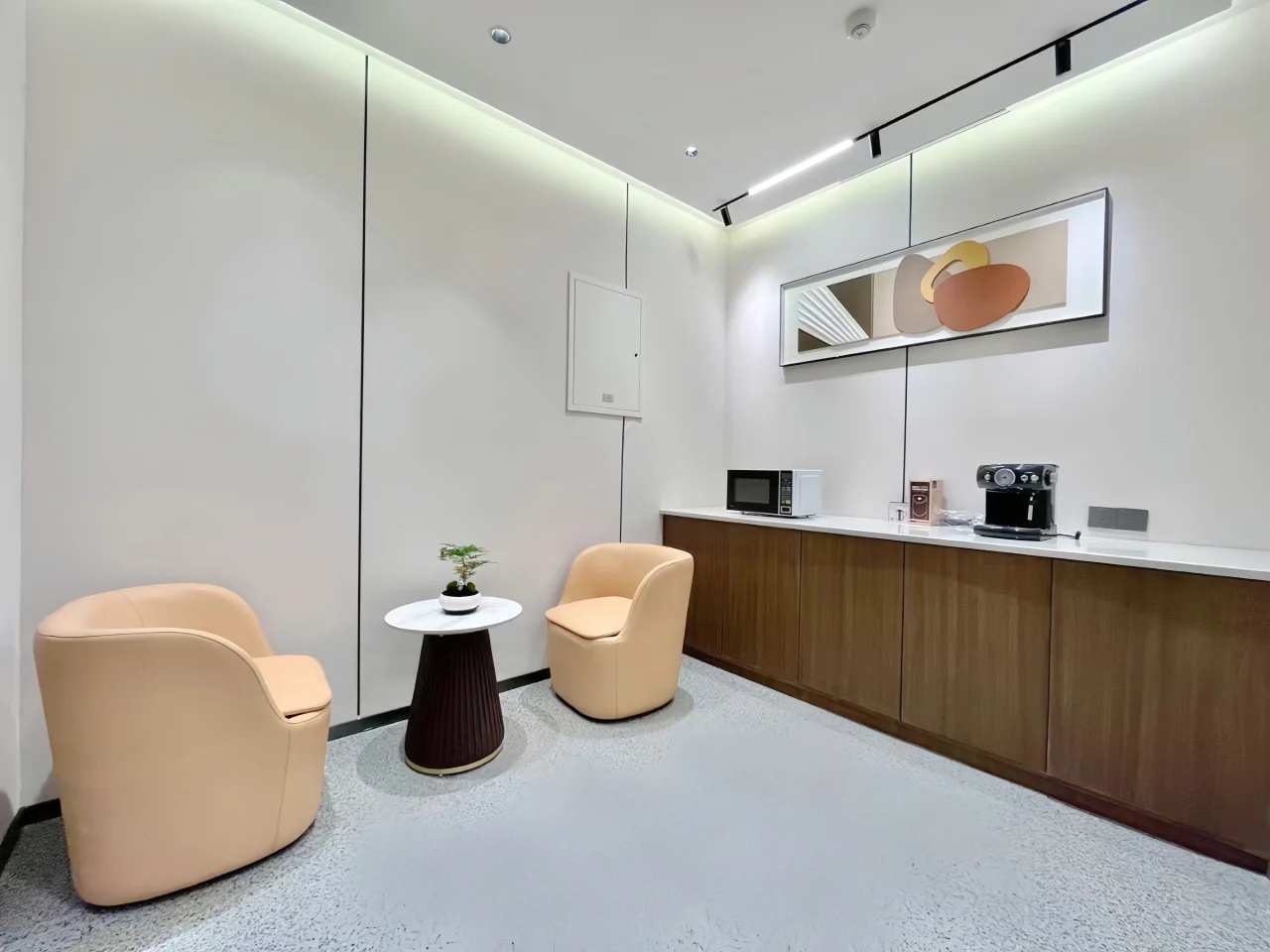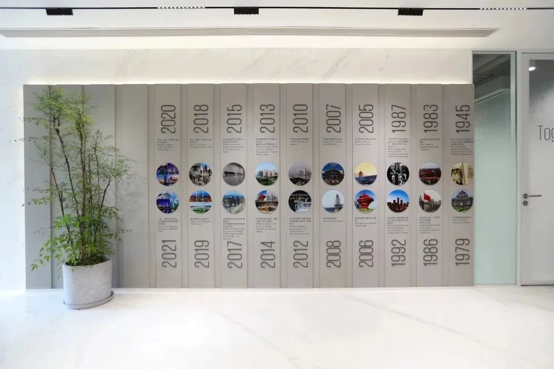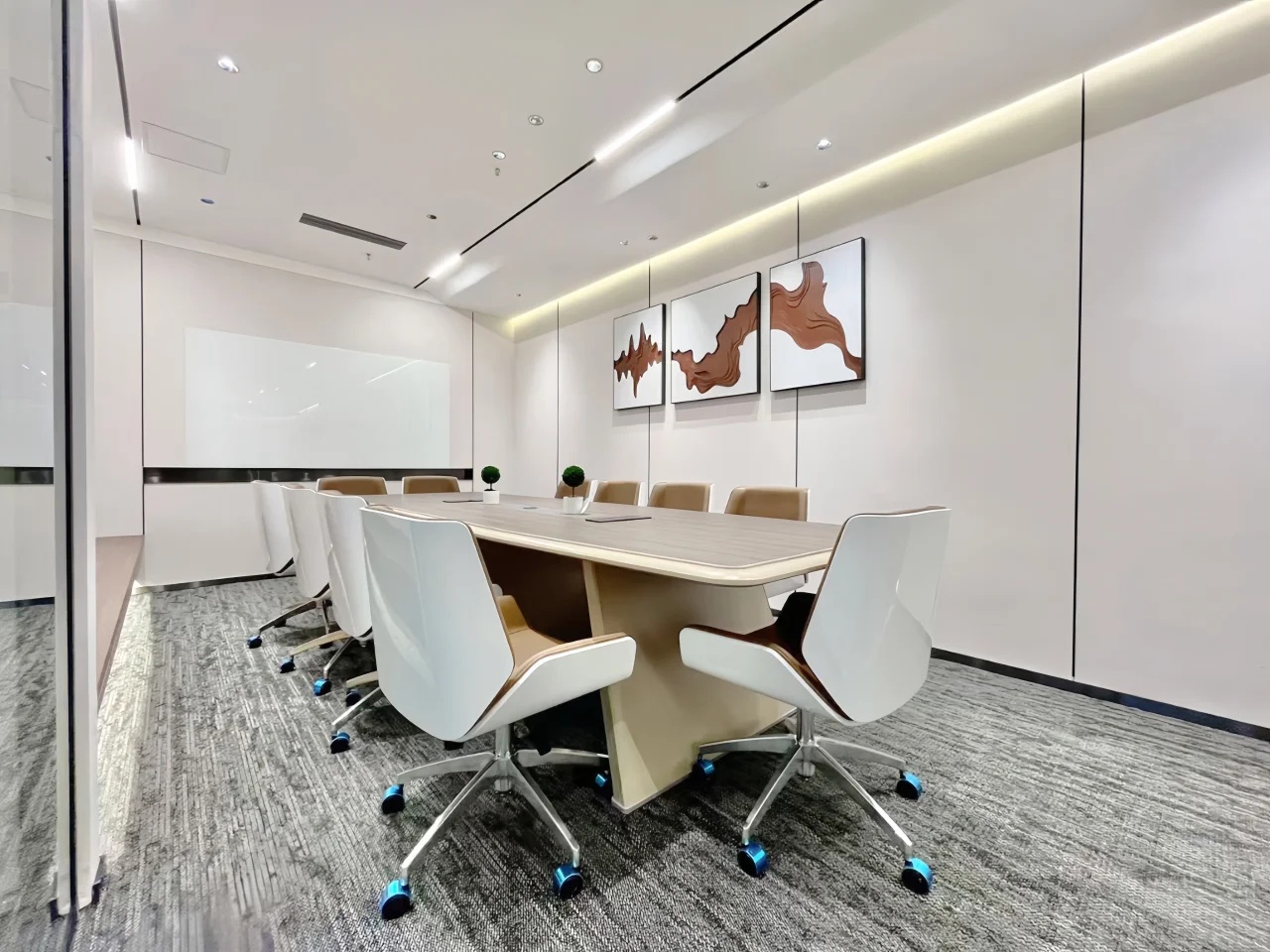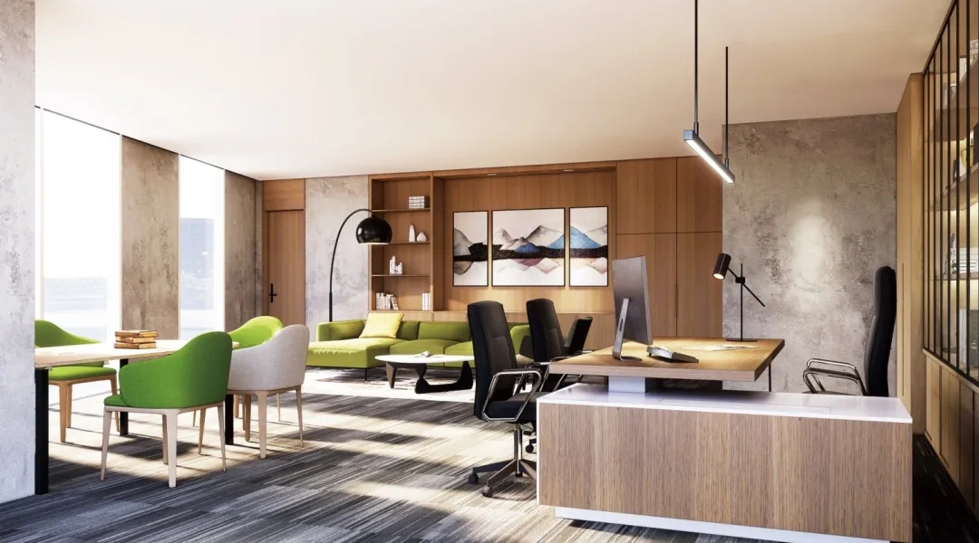 各种规模的会议室、接待室空间满足了各种的会议、接待需求,通过浅灰色、草绿色、橙色和黄色的重叠运用,再透过落地窗的设计介入户外阳光和景观,让空间呈现出和谐统一的平衡感的同时,创造出简洁而又充满张力的办公空间。