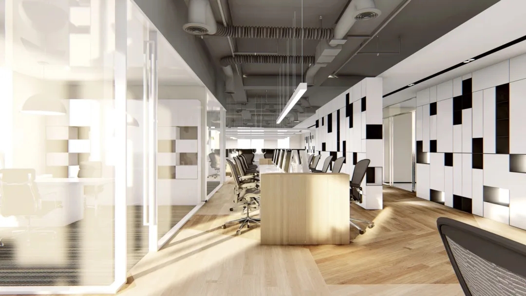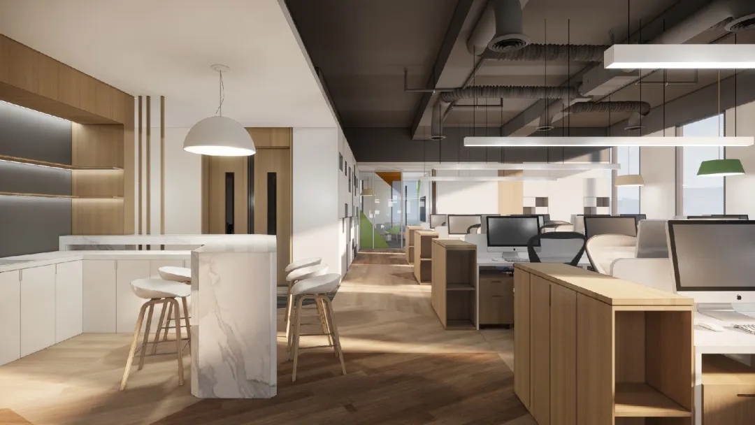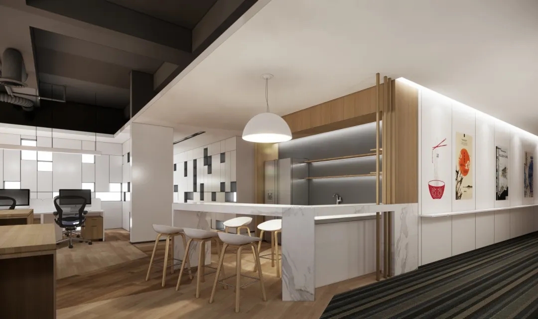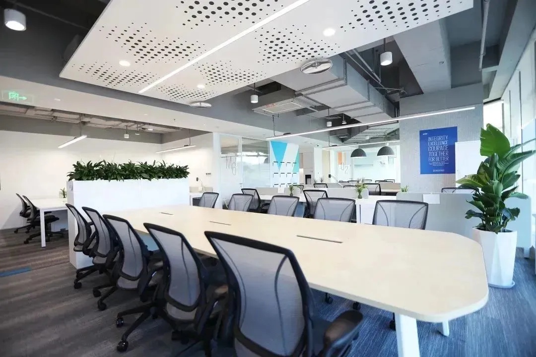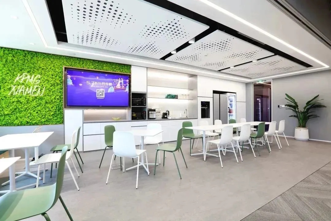 产品研发部办公区域是主要的办公区域,也是工作效率和灵感激发的主要阵地,即时高效、自由无拘的沟通至关重要,空间采用了“围而不合”的设计手法,将空间划分成了功能各不相同的区域,让有限的空间释放出最大的开放性和包容性,也让员工在交流的区域中保持了有效的沟通和交流,既能满足专注工作的需要,也能满足团队协作的工作要求,让更多的灵感和思维也在此激荡与碰撞。