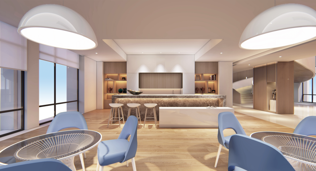 删繁就简,是一个过程,也是一种设计的创作思路。粗糙的朴石和枯树在空间灯光的映衬下疏影横斜,也给予人宁静淡泊的感受,与休闲的茶水吧的动态日常形成了强烈的对比,却又如诗如画般地融入空间的每一处肌肤里。利落的蓝色在柔和的空间氛围里变得活泼鲜明,这样的色彩碰撞,让空间多了一份时尚优雅的气息。