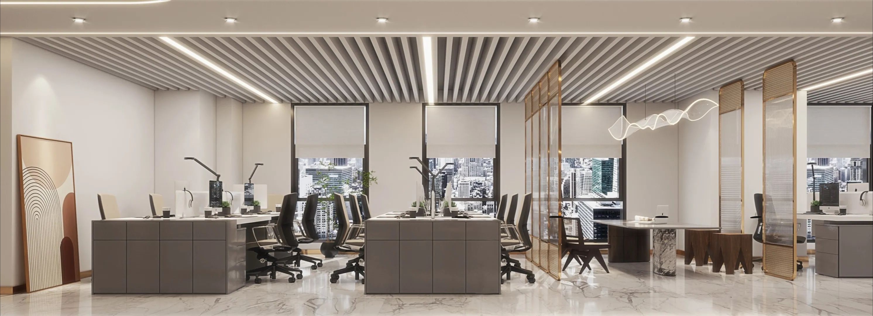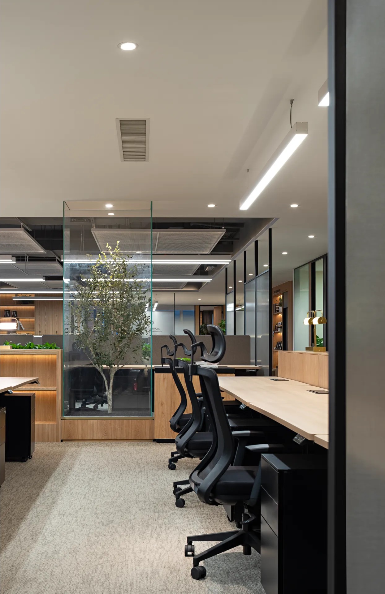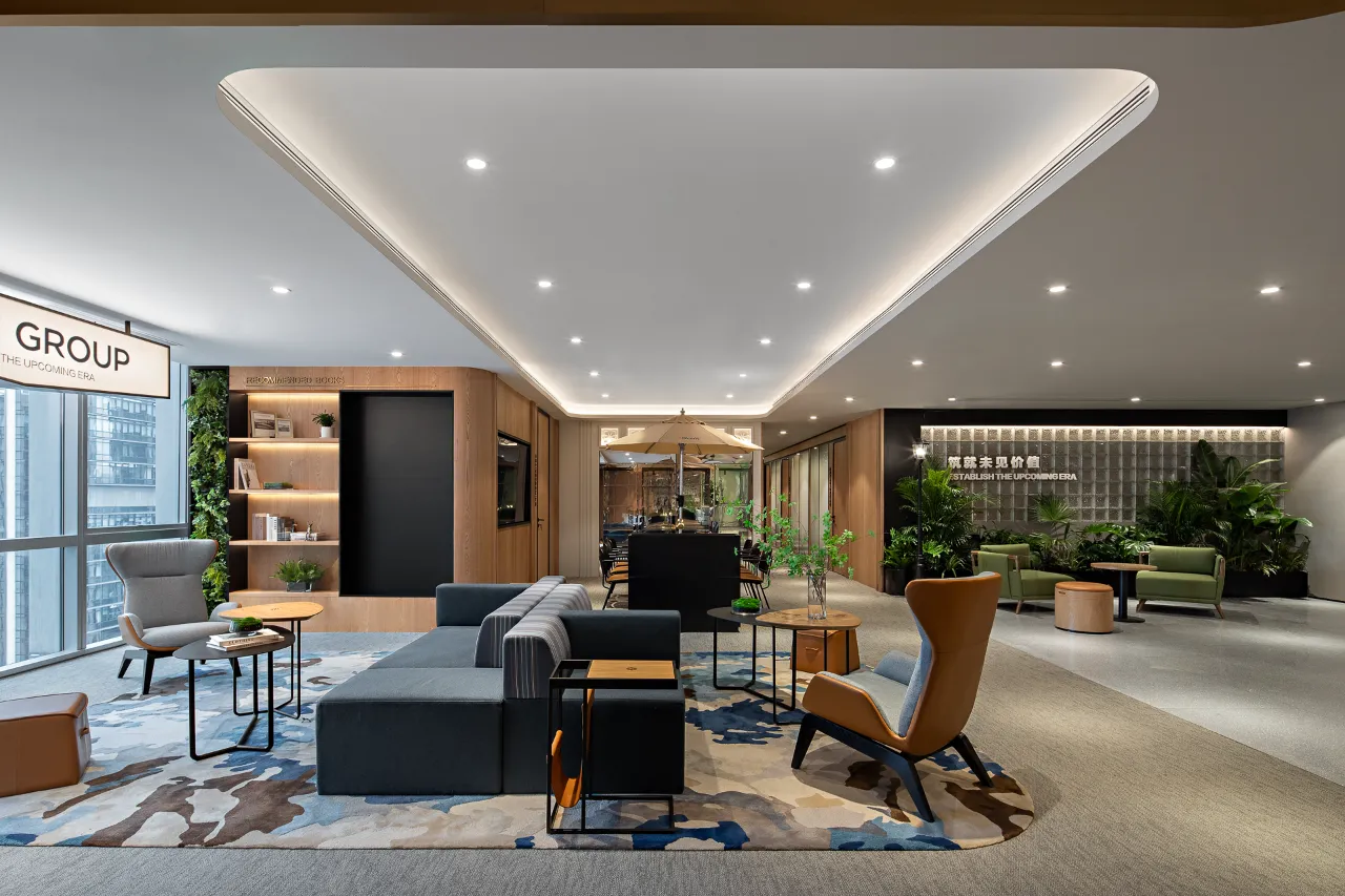 对企业而言,如何在有限的办公区域内,合理规划功能分区是一个关键难题,这能够直接帮助优化企业资产组合,节约办公成本。可持续的设计为空间赋能,“重叠”是关键的突破点。设计师融入设计了多元、灵活、敏捷的多样化办公生活功能,涵盖办公区、会议区、Lobby、读书角、运动区、吧台、饮品长廊、电话间等,应对未来团队更多的用户行为需求。员工可以在这里专注工作,也可以自由互动、社交,释放潜能,颠覆传统办公空间的单一功能,不断创造更多活力场景。