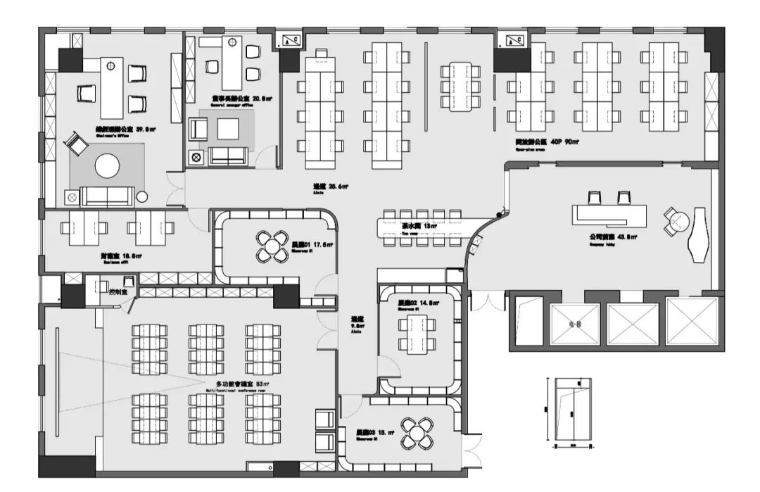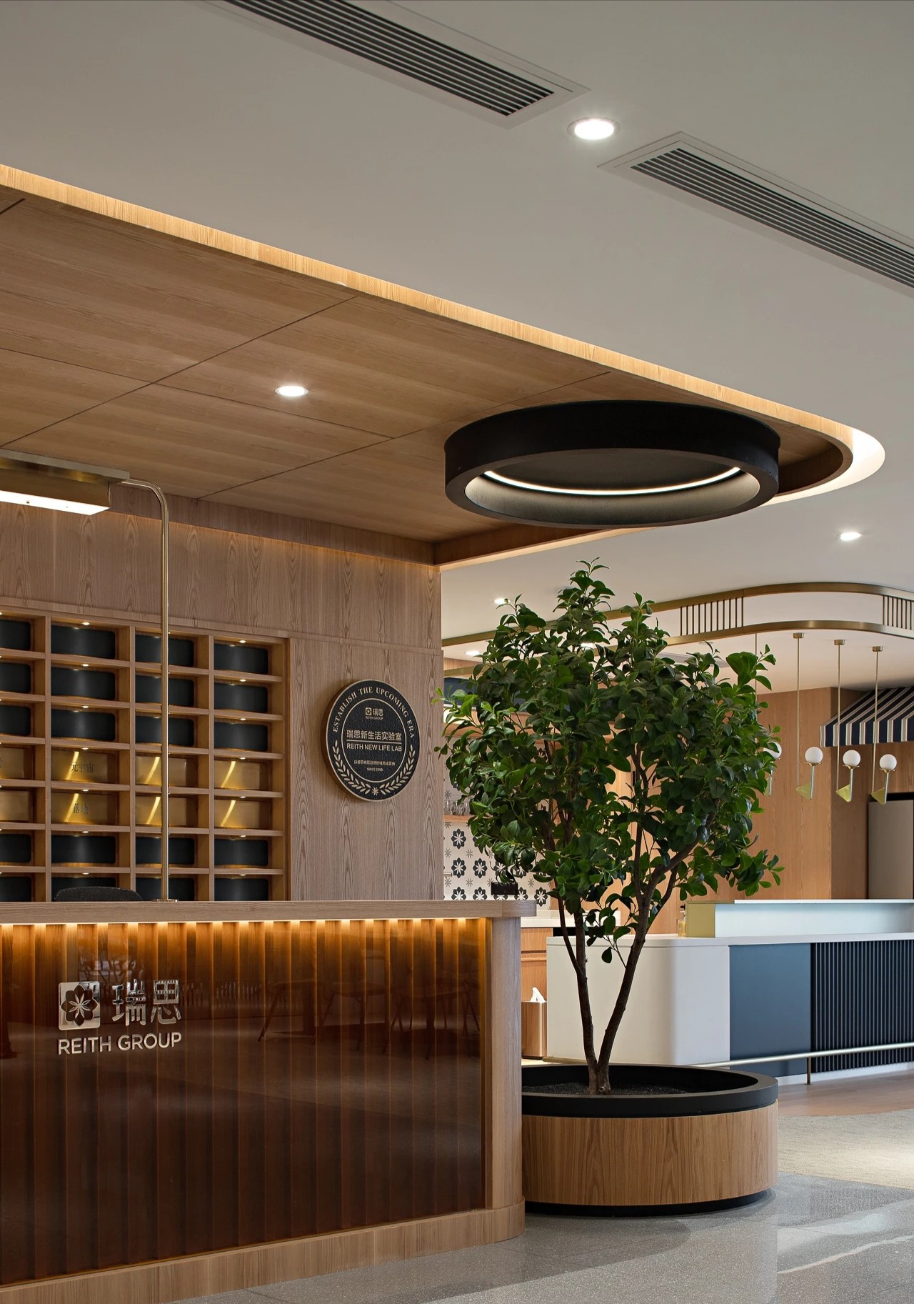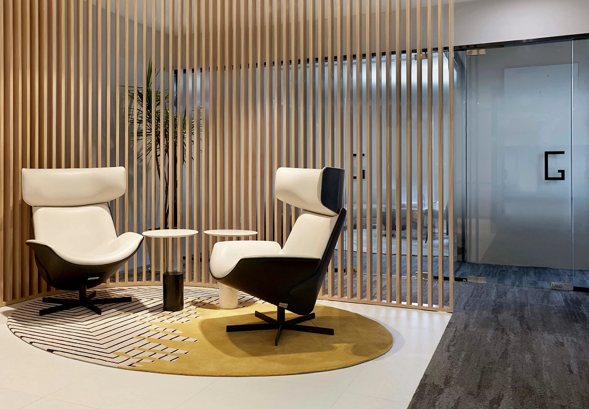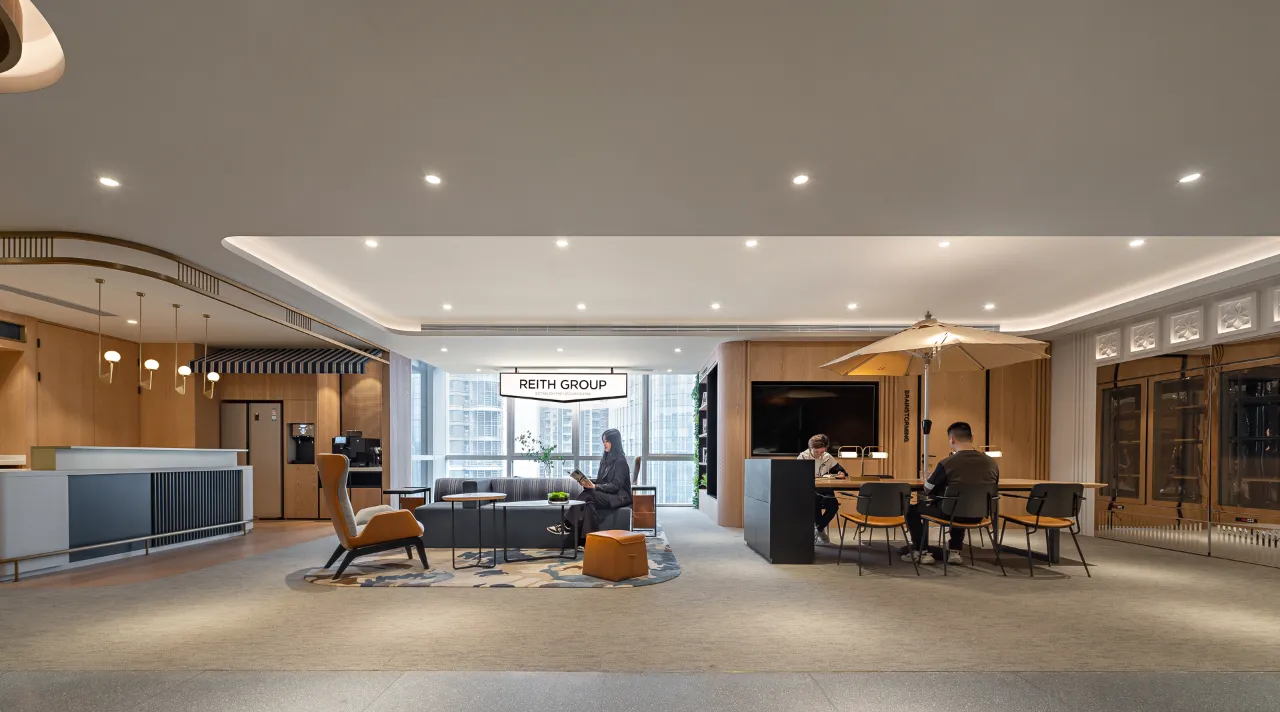 踏出电梯间的那一刻起,瑞思的品牌标语即映入眼帘。全新的办公第三空间正是以人为核心,以空间为载体,从而促进人际交流、分享、互动。