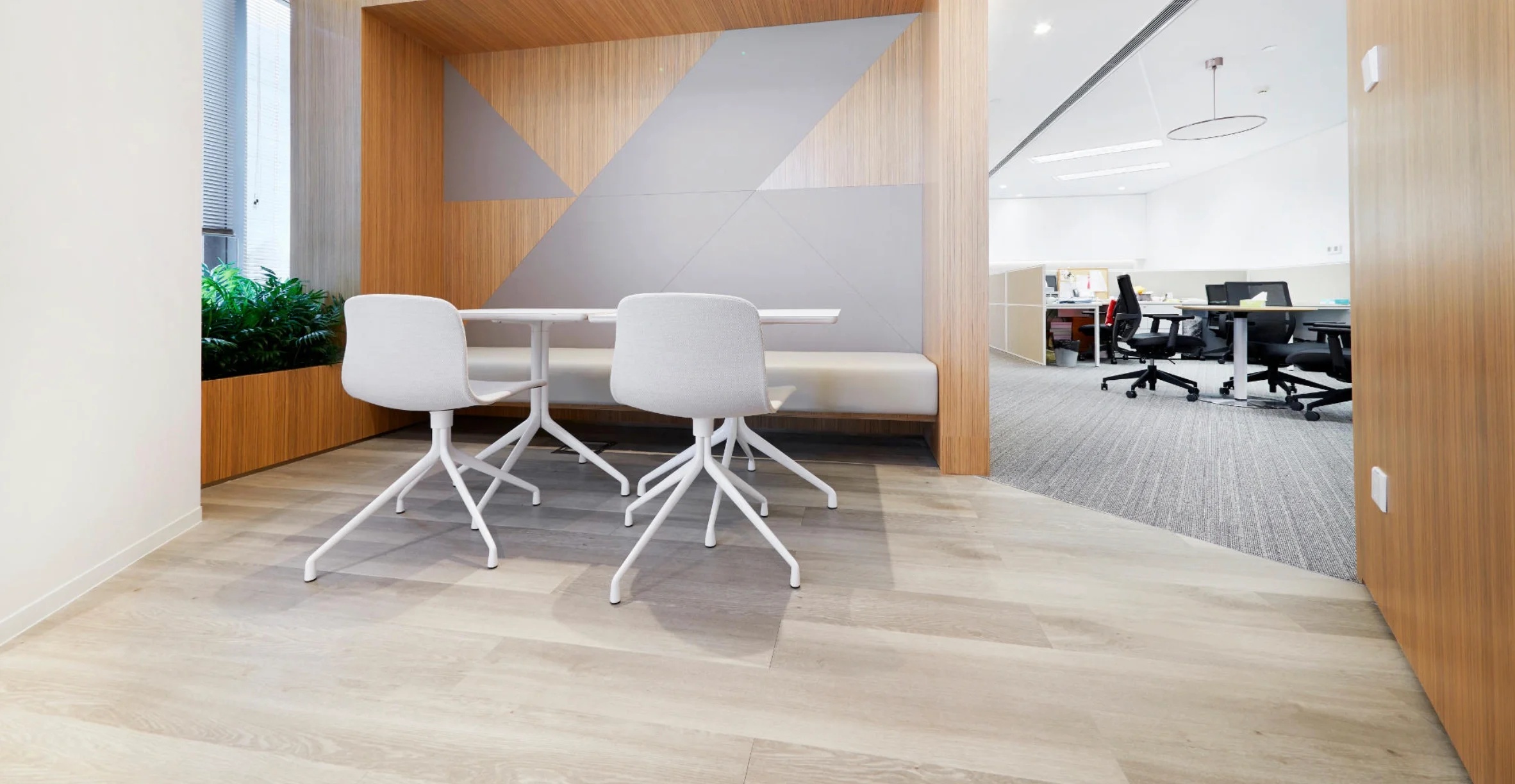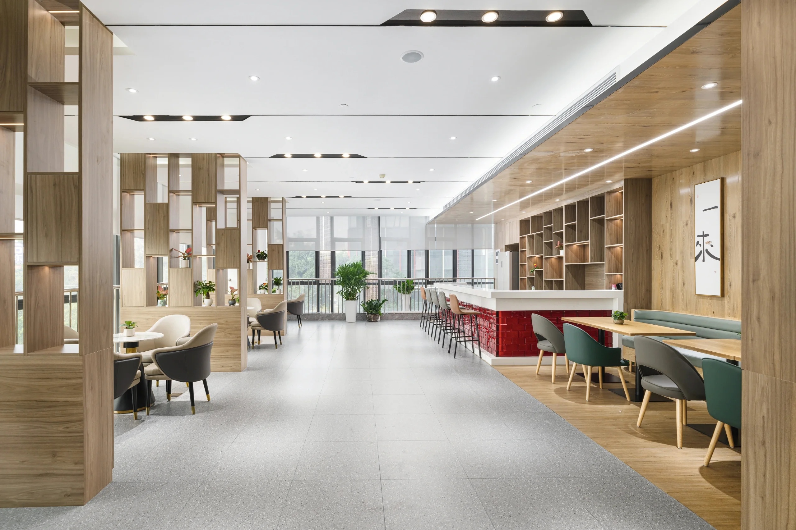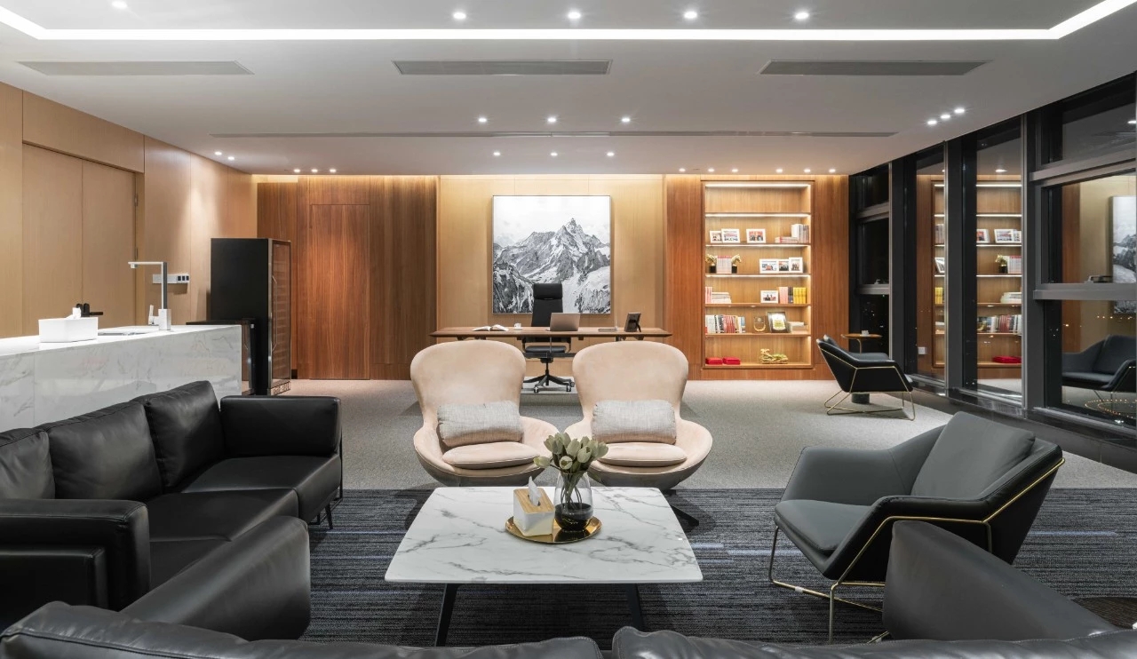 开放办公区边设置的休闲卡座,既可以作为员工休闲放松的地方,也同样可以作为临时接待之处。细节之处更能体现人性化的理念,更具智慧。