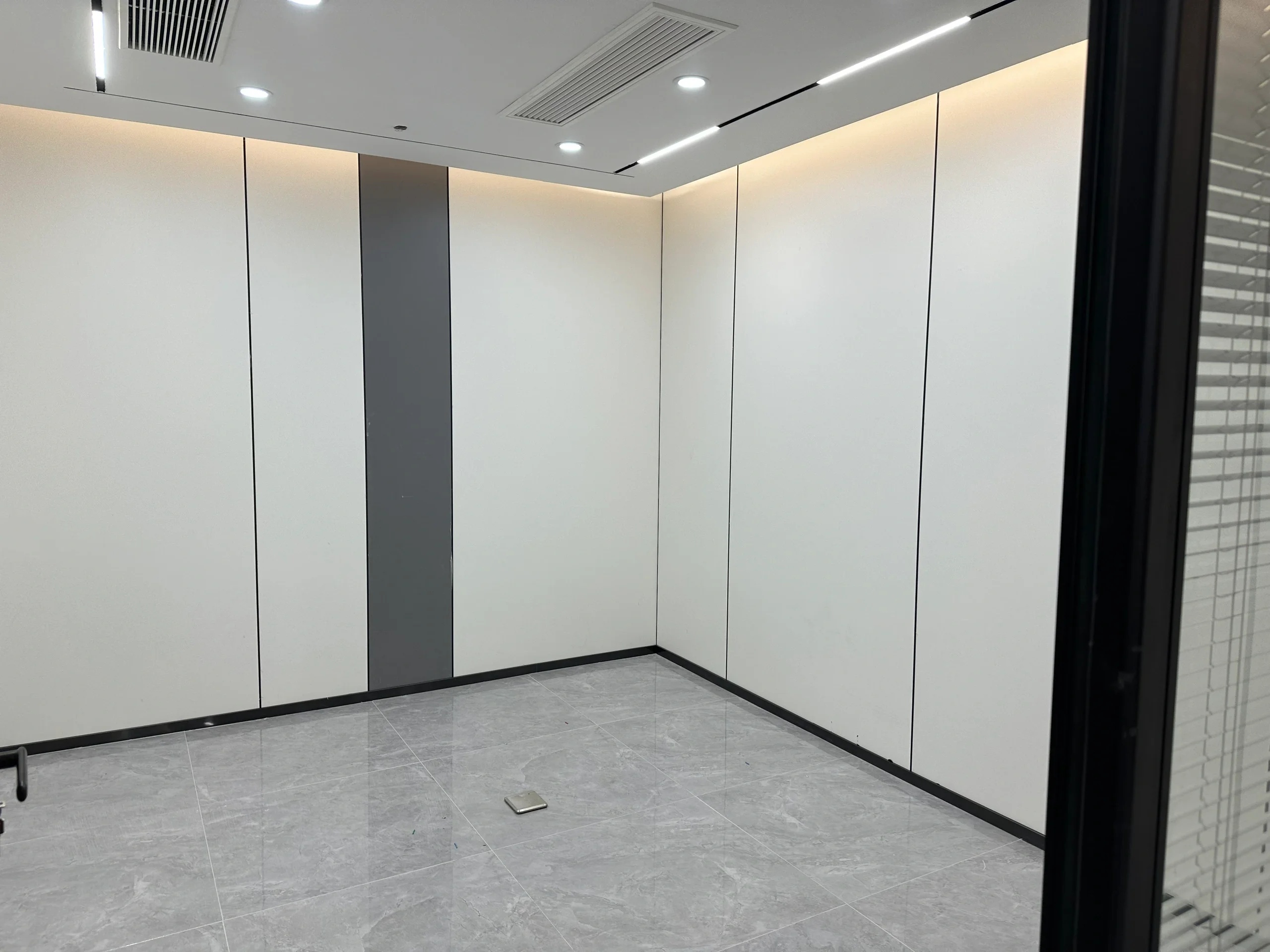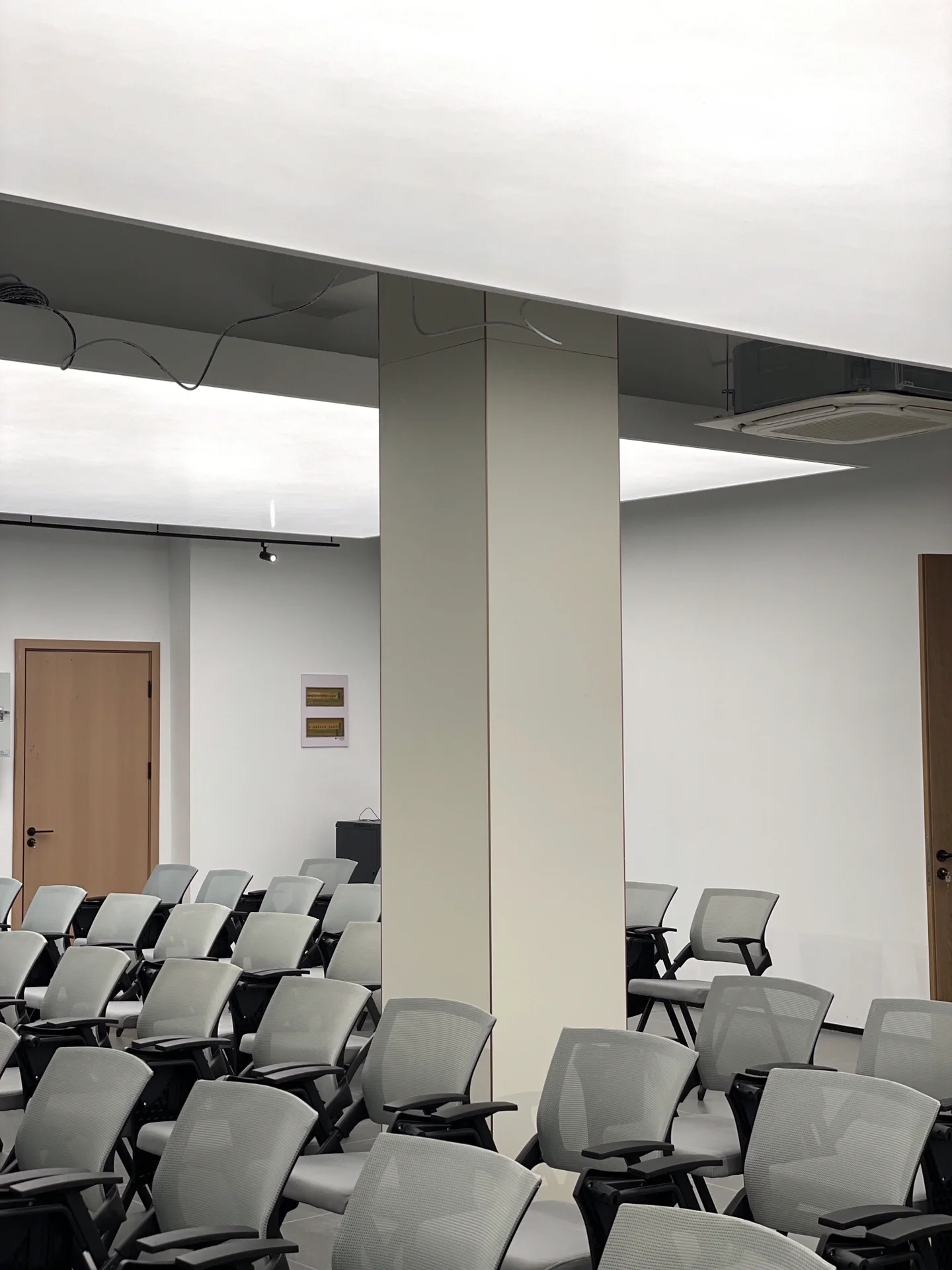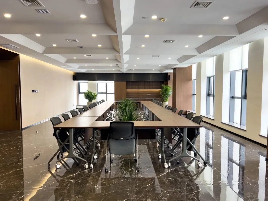 结合开会、培训等功能性较多的一个综合空间;在设计上做了前后分区;顶面设计造型定突出空间品质,墙面使用皮质硬包与木饰面结合;