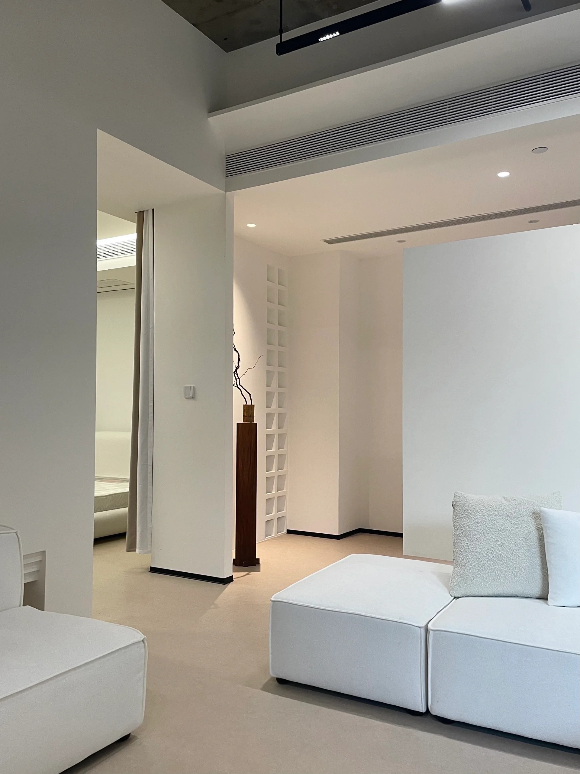 删繁就简,以最经典的白色为主题搭配色调,没有繁琐的设计和过多的装饰,减去办公中的压抑感。通过将自然纯净的白色与沉静黑色相结合,将品牌形象简洁地呈现表达,同时为左右空间的过渡创建和谐