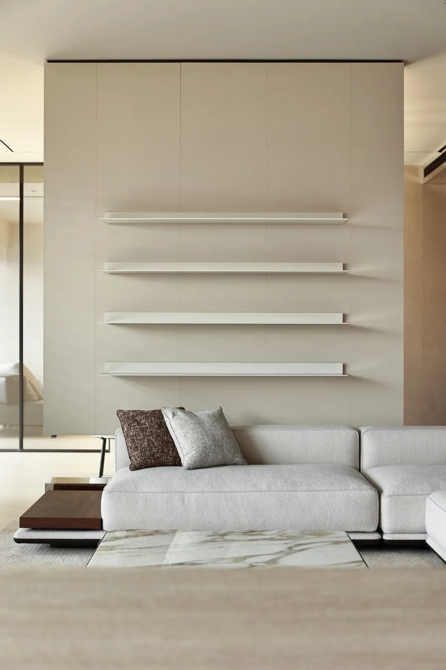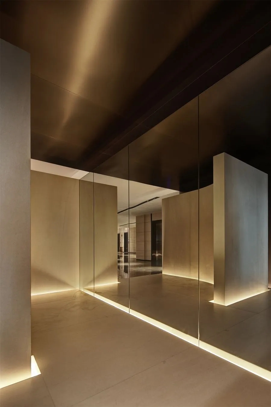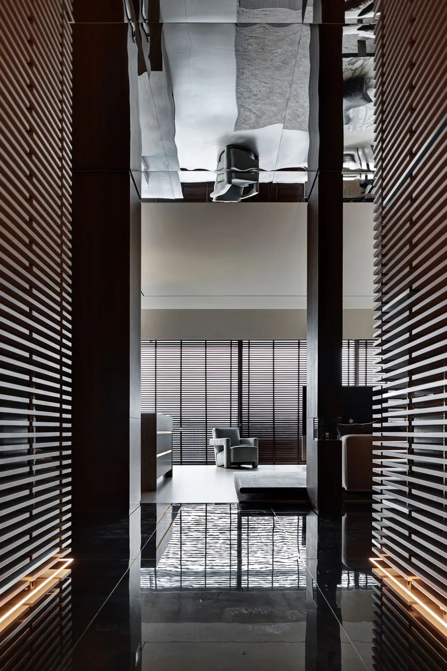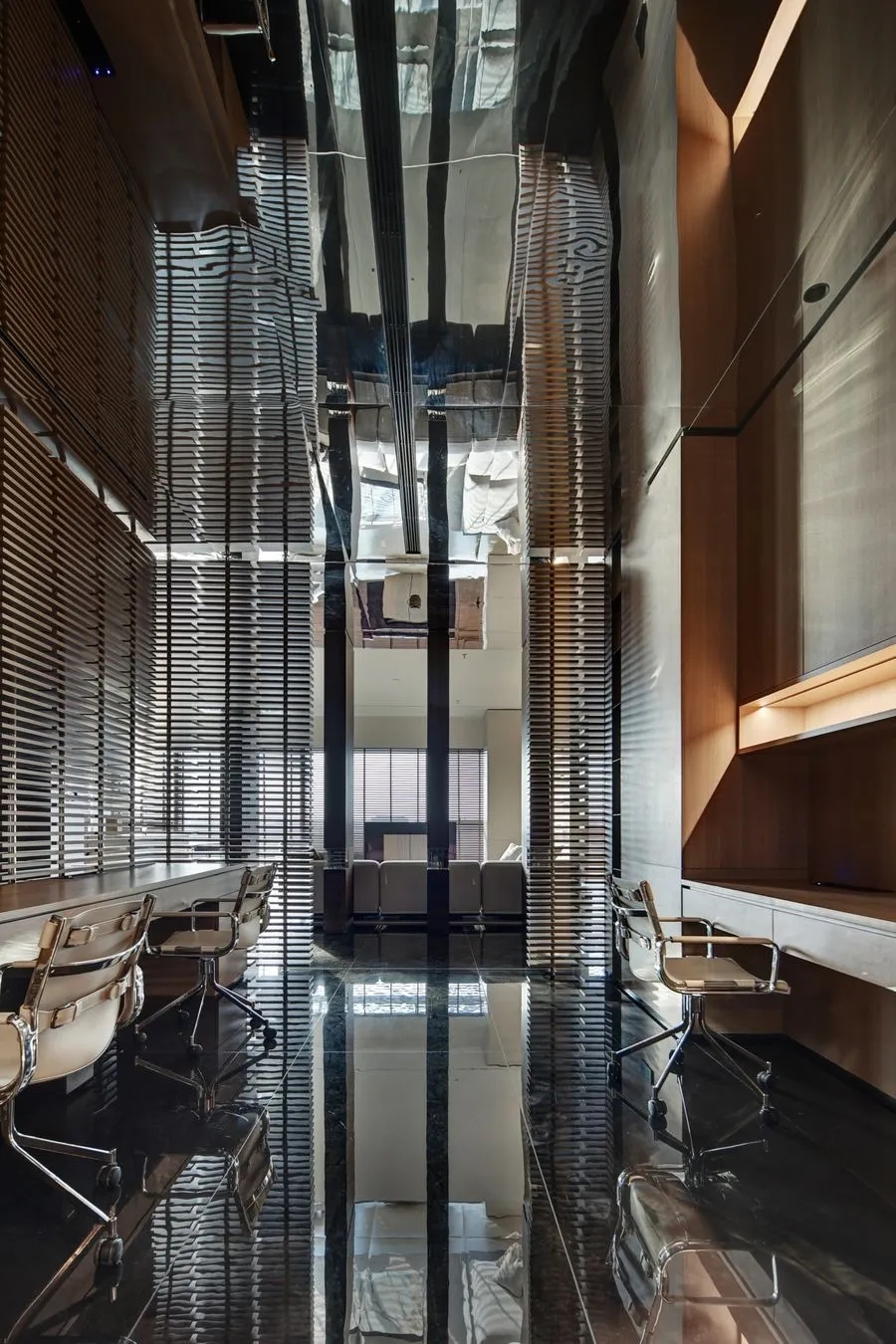 整体凸显空间感,材质表现与空间统一协调,黑镜的选择在拉伸空间的同时,也更加增添质感.