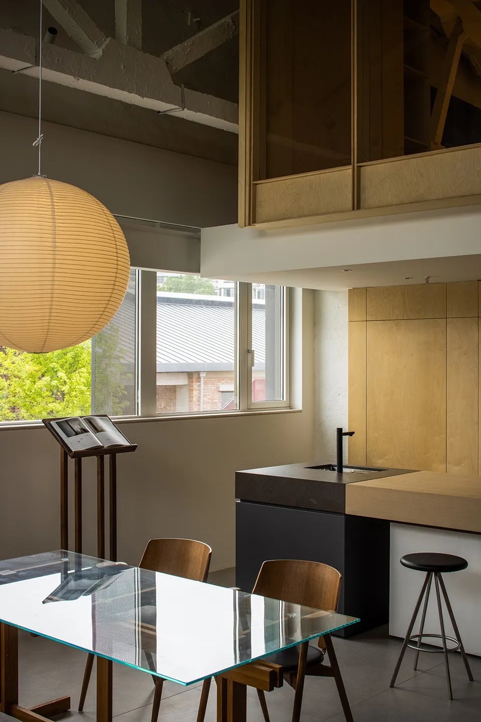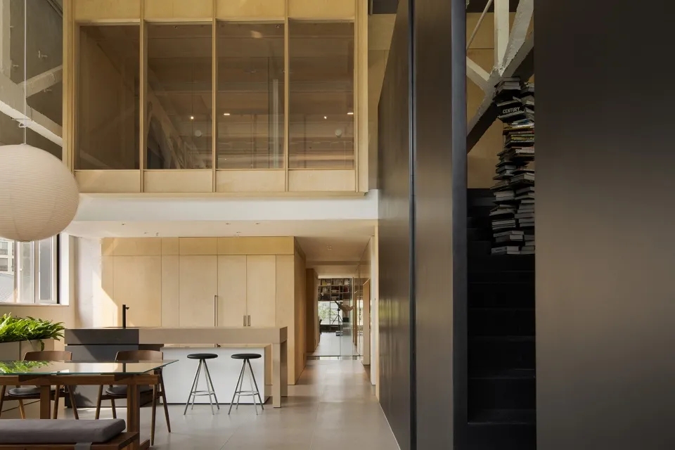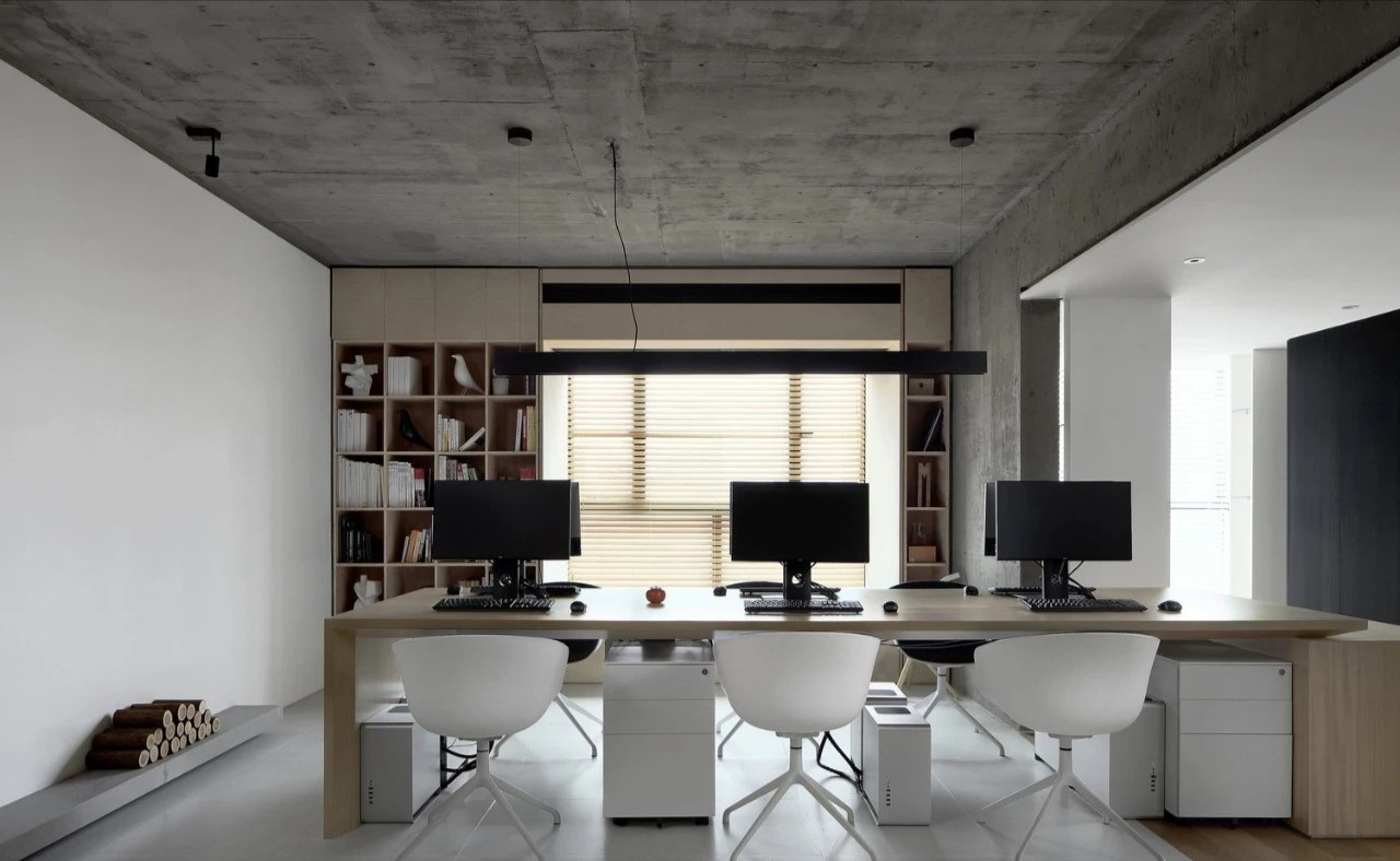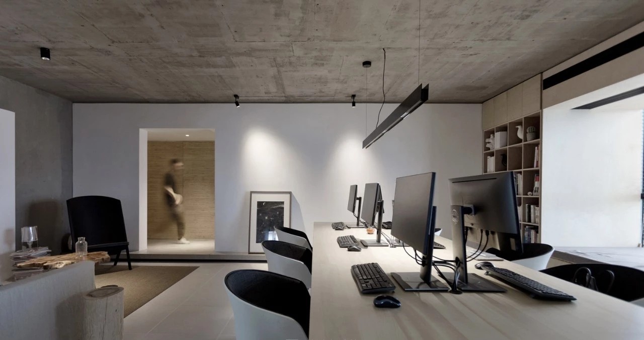 由工业厂房改建,保留原厂房的预制混凝土板,融入美学理念,简约高效、有质感、收放自如。
