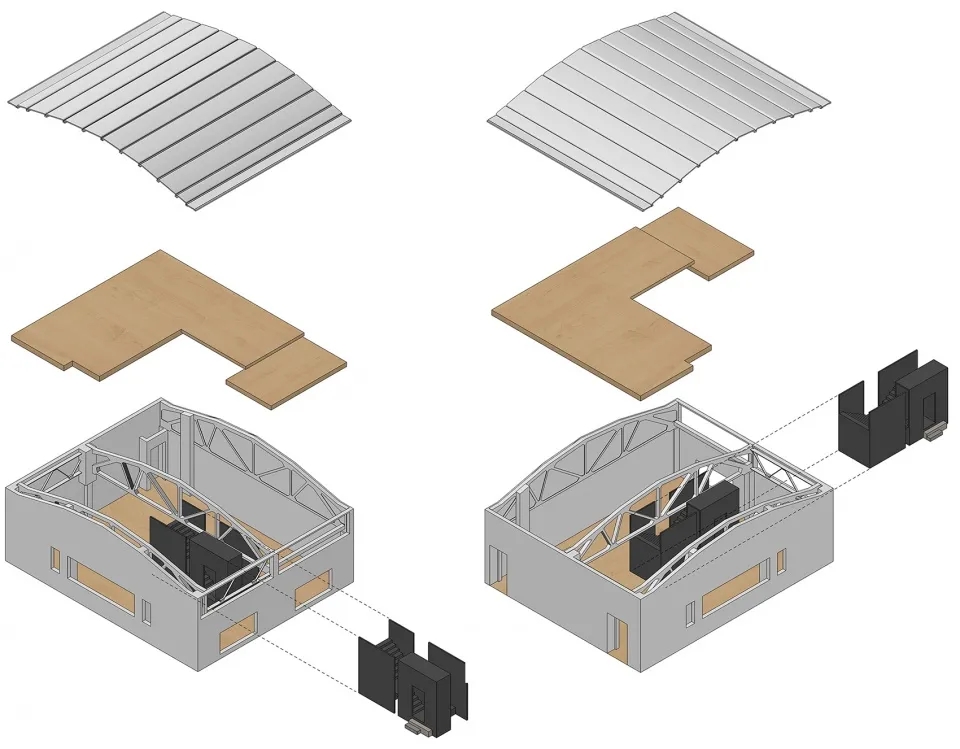 在创意园区的工厂环境中构筑一个新的办公空间,我们希望保留它原来的印迹并赋予它新的活力,空间内置出多个体量,在原建筑和墙体之间围合出新的场域,空间之间保持流动性,立面黑白灰作图底,通过留白转折剥离拉开层次,将室内氛围变成一种独立的元素。场地空间与园区厂房的肌理进行对话,注重空间打造和界限的融合,让人对空间的理解有新的启发。