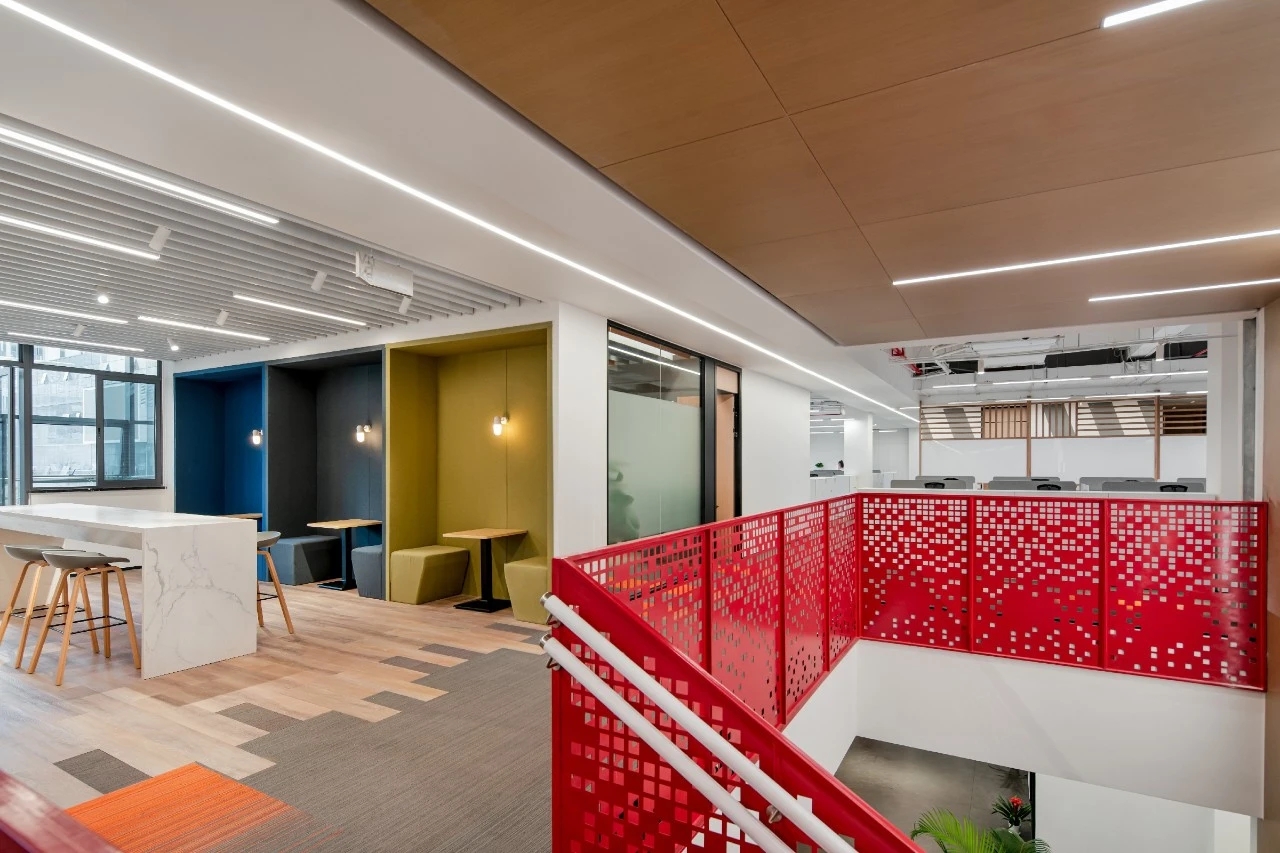 Boston Scientific Shanghai HQ ‖ 大型公司需要在世界各地设立大型总部。每个工作环境都包含不同的部门、功能和不同隐私级别的区域。办公空间越大,就越难将所有功能格式化成适当的、统一的系统。