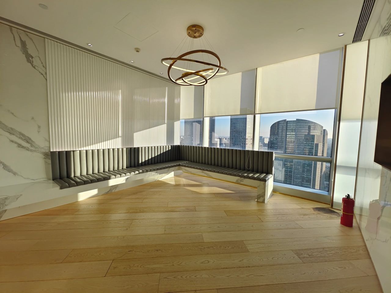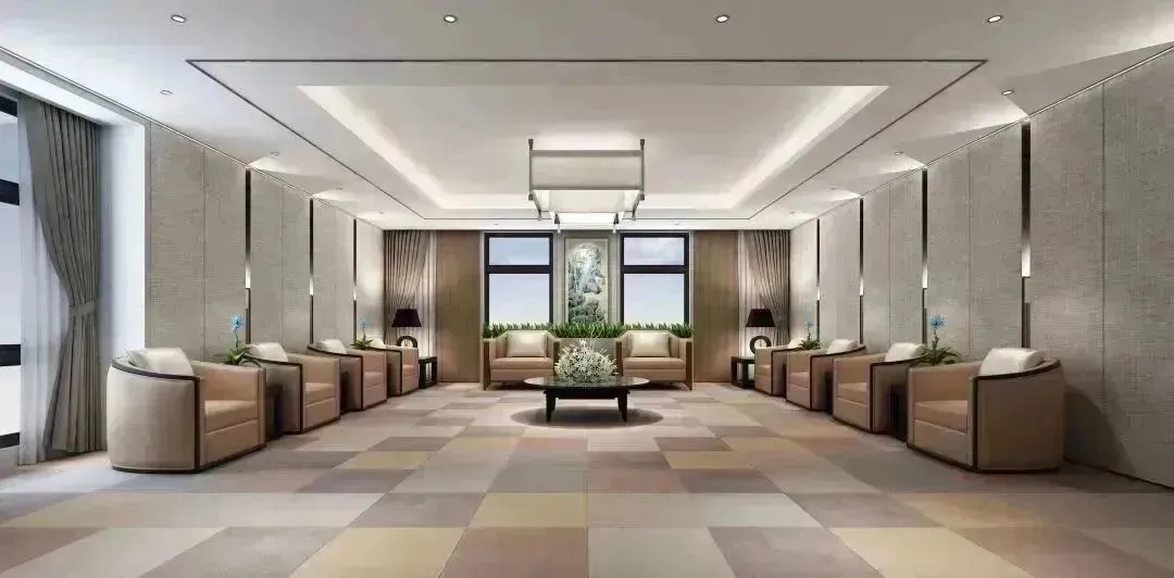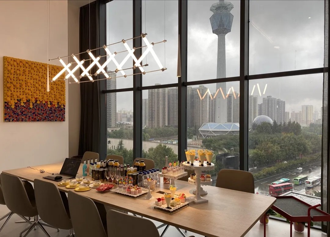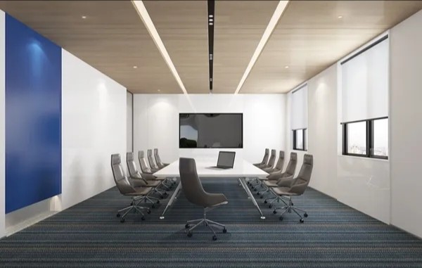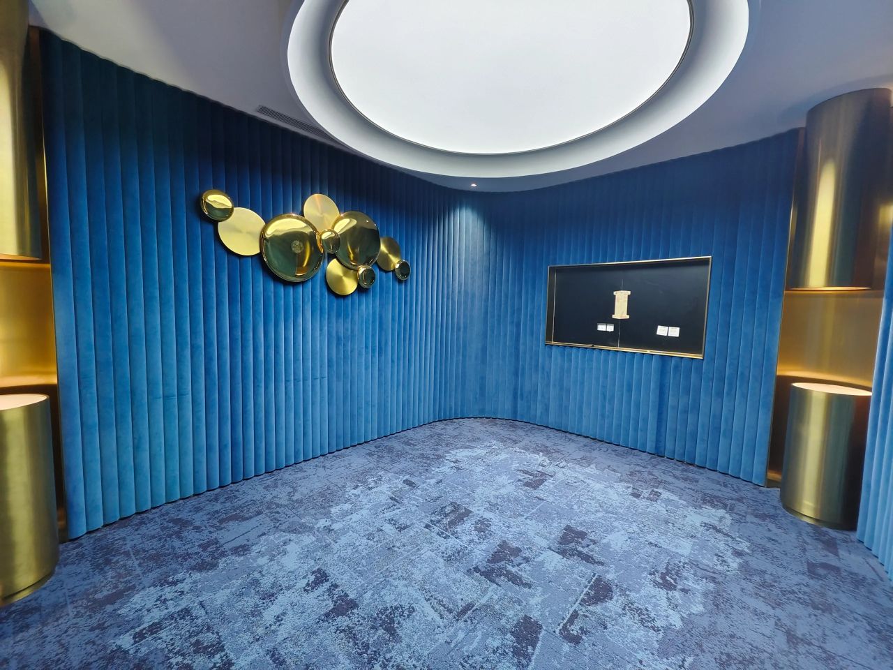 三条灯带烘托空间氛围,主灯轨道占领空间C位,简单的色彩过渡,用超主色系的色彩范围提亮会议空间亮度,自由之地为共融共通所在以开放、可扩展、替代、封闭、已知非同质化的空间组合不再服从于某种结构而由 [我们]互动、建设、生长、成形