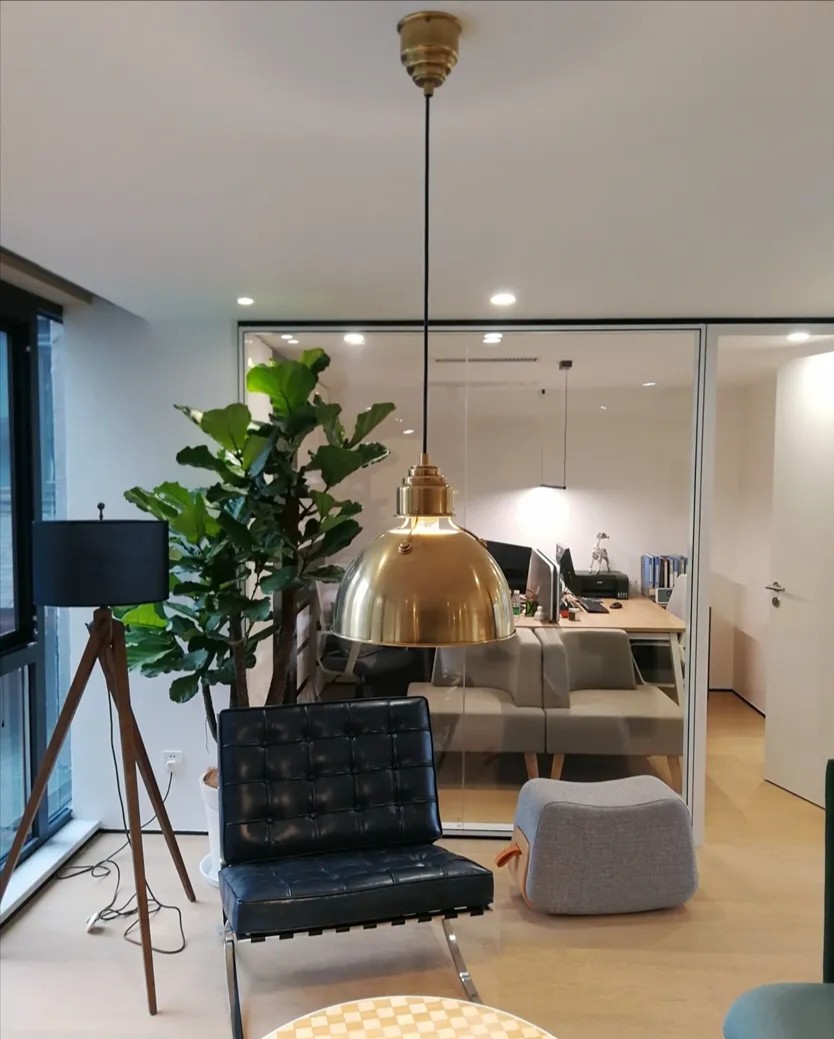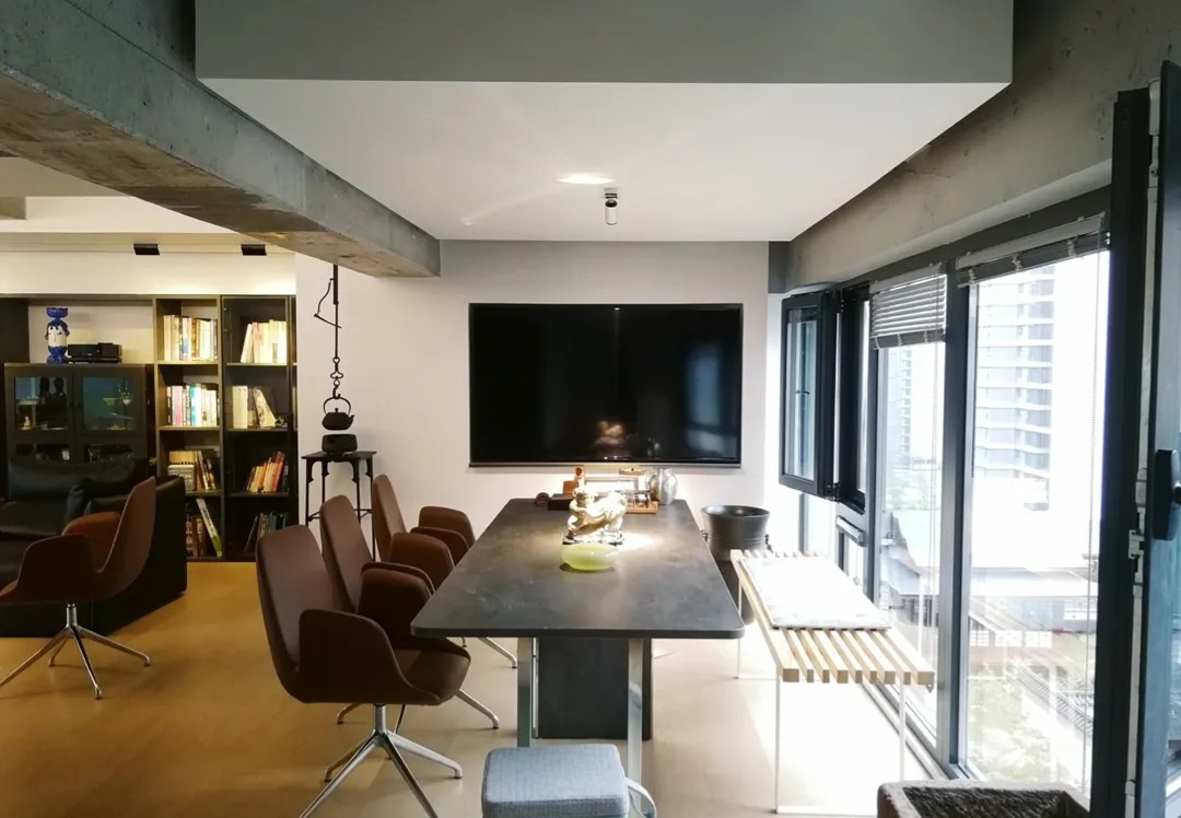 山有小口,仿佛若有光,编织吊灯的衬托,使墙面小口更加隐匿,不同角度的设计美感,细腻的现出本身容颜;考虑到二层原始空间结构,所以部分区域选择不吊顶,保留住梁最初的状态,将办公室现代工业风毫无遗漏的展现出来,但在设计中却摒弃了工业风常见偏冷的色彩方案,结合现代简约时尚潮流,相向取其精华,展现出清新⾃然、随意轻松的⼯作环境。