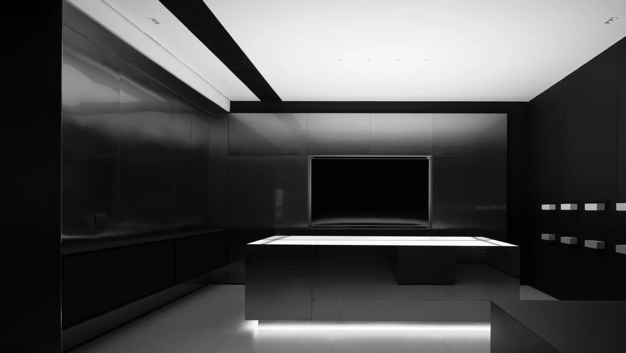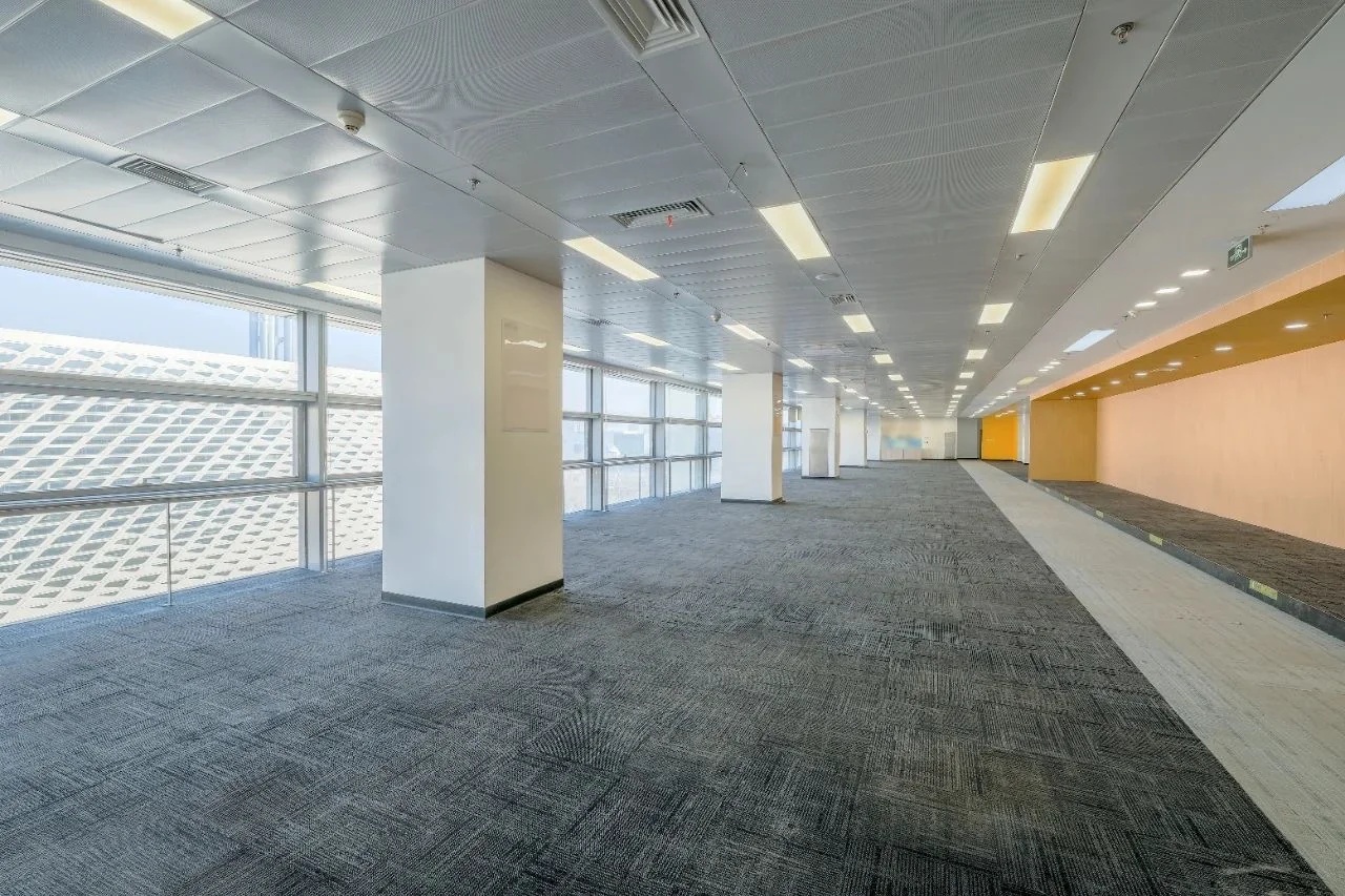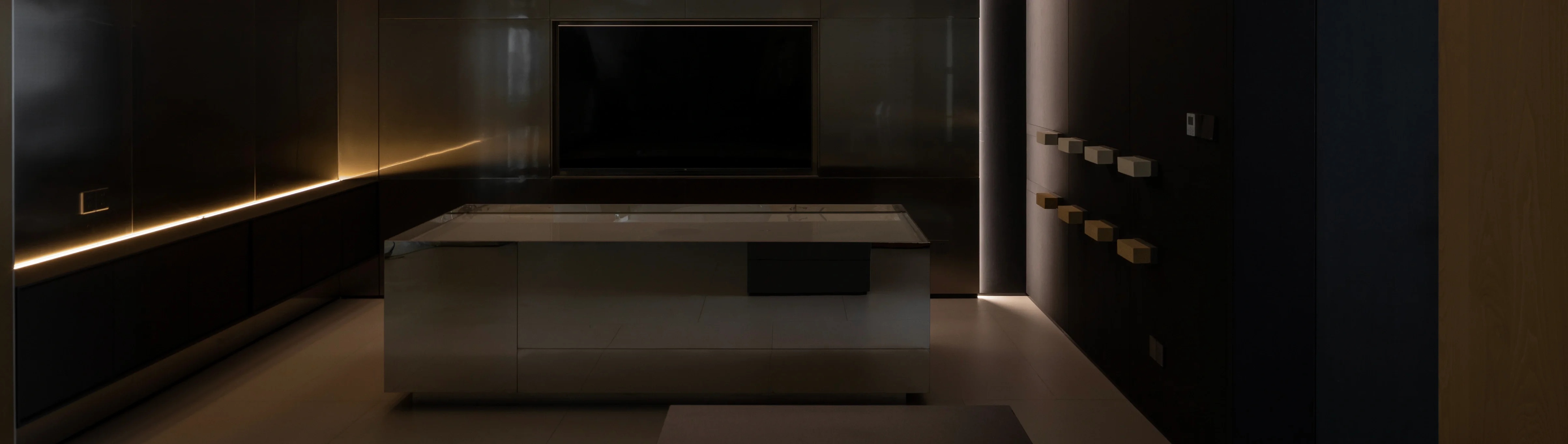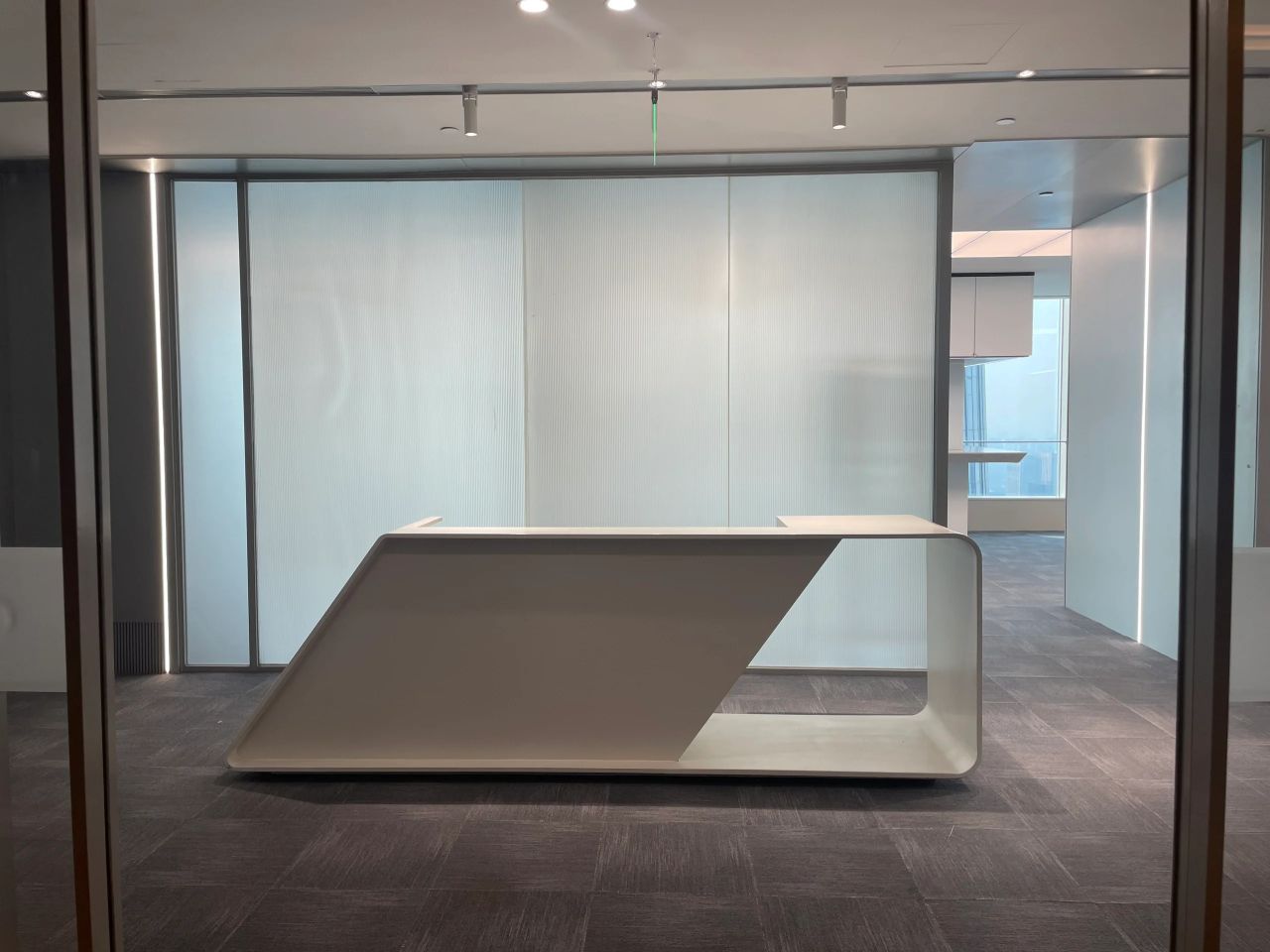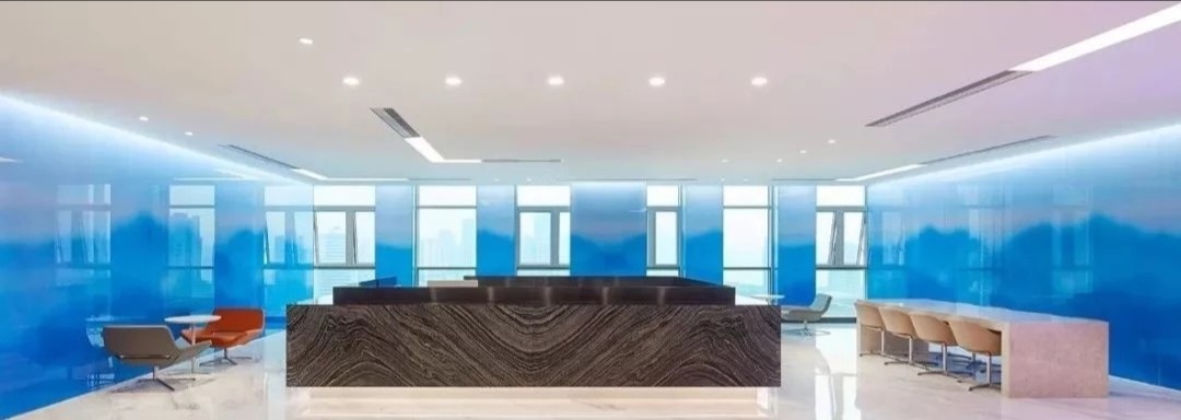 相对于陆地上其他物体,山与天空的距离是最接近的。我们想做到天山合一,用朦胧写意的手法将夹胶玻璃形成延绵不绝的山丘连接整个大堂背景墙面。