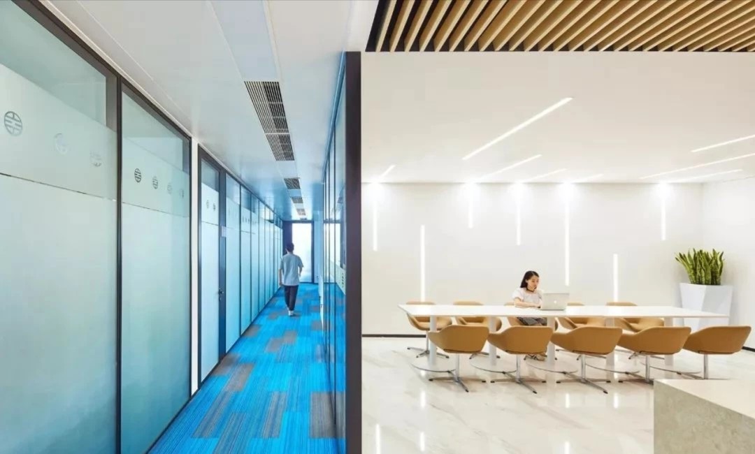 前区的功能除了企业形象展示更重要的还有会客、会议功能。所以在18楼前区我们主要设计了大、小会议室,多功能会议室、党员活动室、贵宾接待室和模拟法庭。