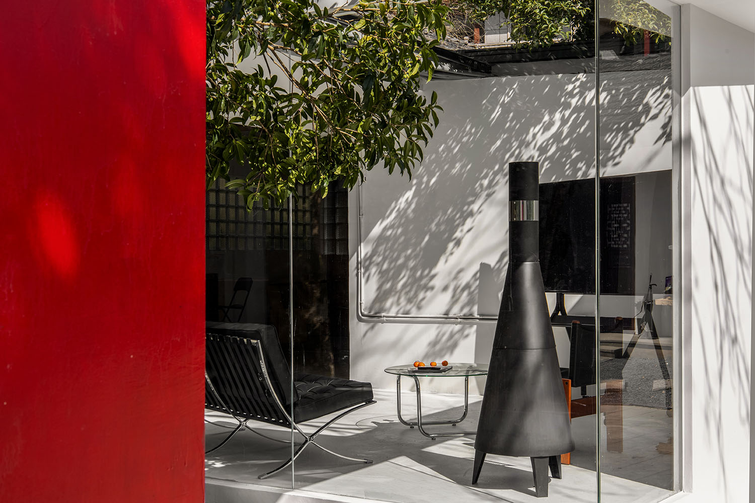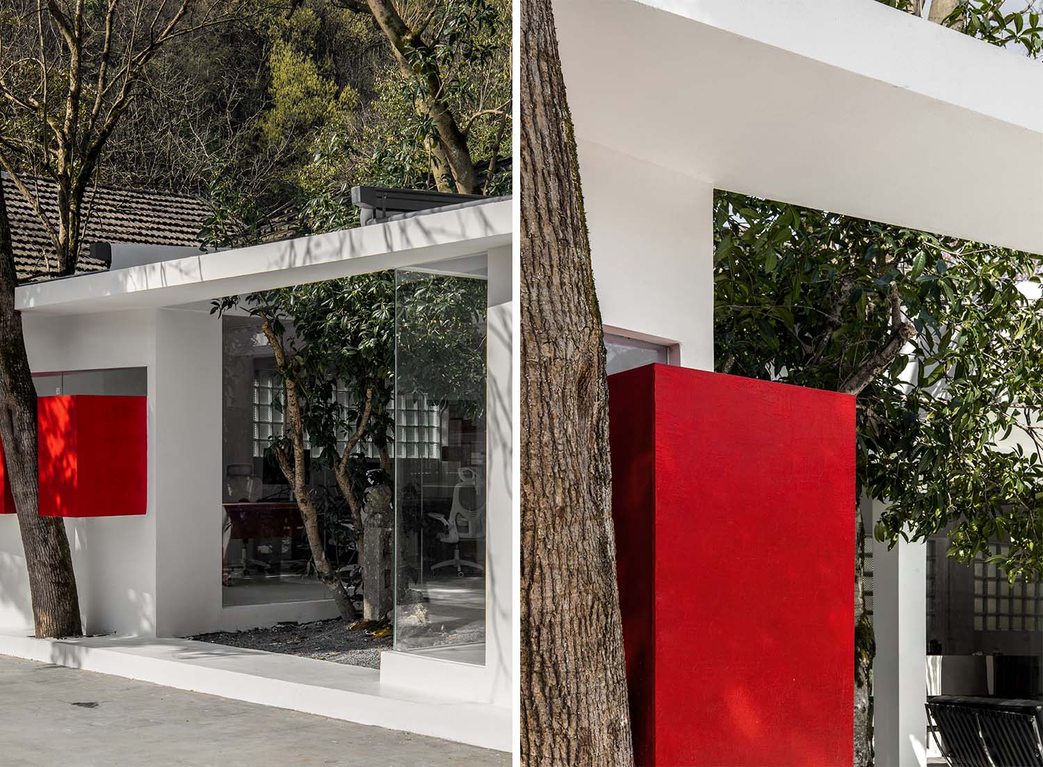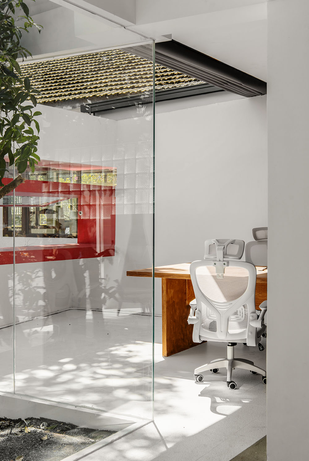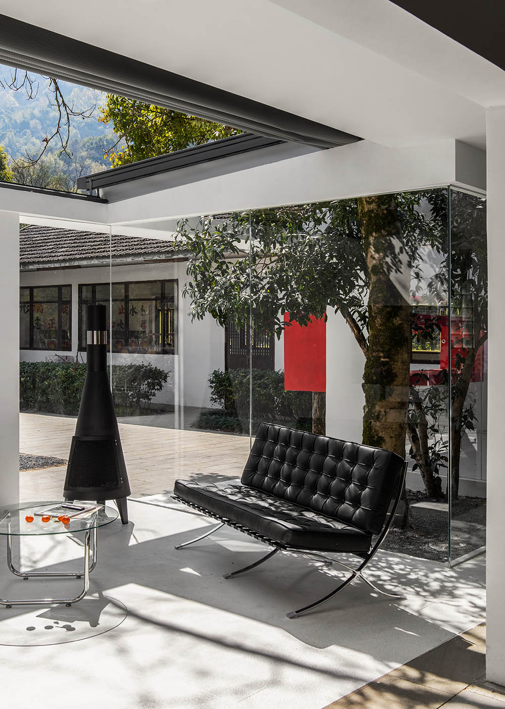 桂花树的枝条从顶面伸进会客区,而侧面又能看到中庭的景观,我们希望每位朋友坐在这样的环境中,都能够得到真正的放松。