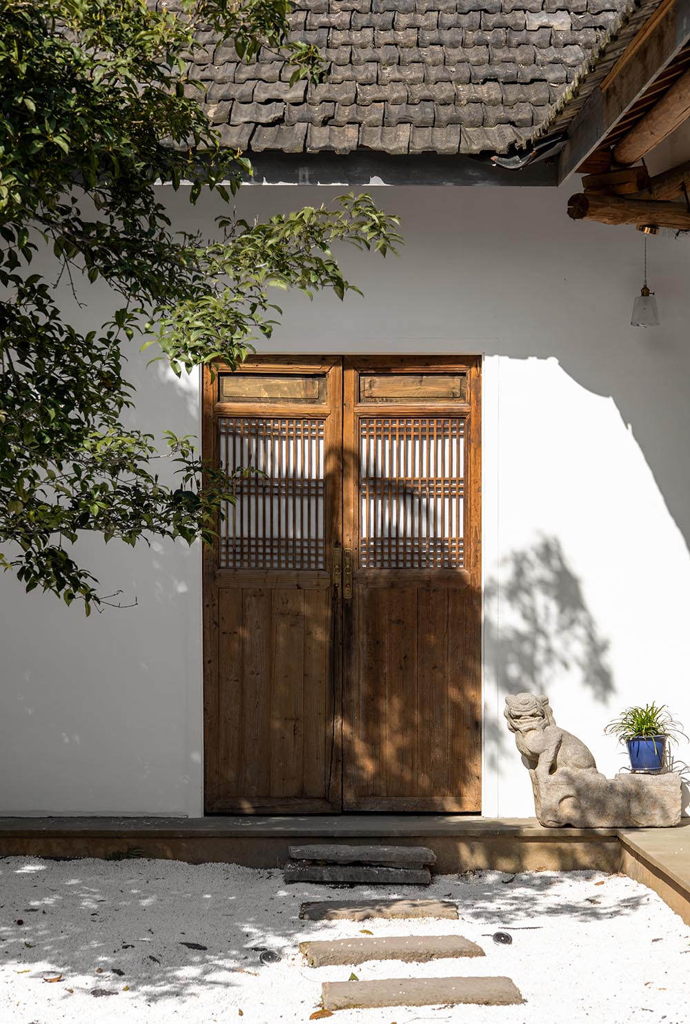 工作室的大门是特意从德清淘的清代老木门,选用障子纸作为门板密封材料,既保证了整体调性的统一,又做到了实用的功能。